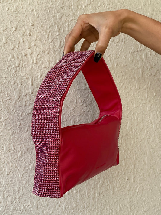 Tony Bianco Pink Rhinestone Mini Shoulder Bag Y2K Statement Evening Purse