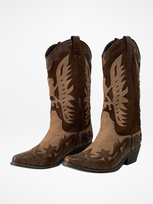 Corina Western Cowboy Boots Brown Croc Embossed & Suede Statement Festival Boots - EU 41
