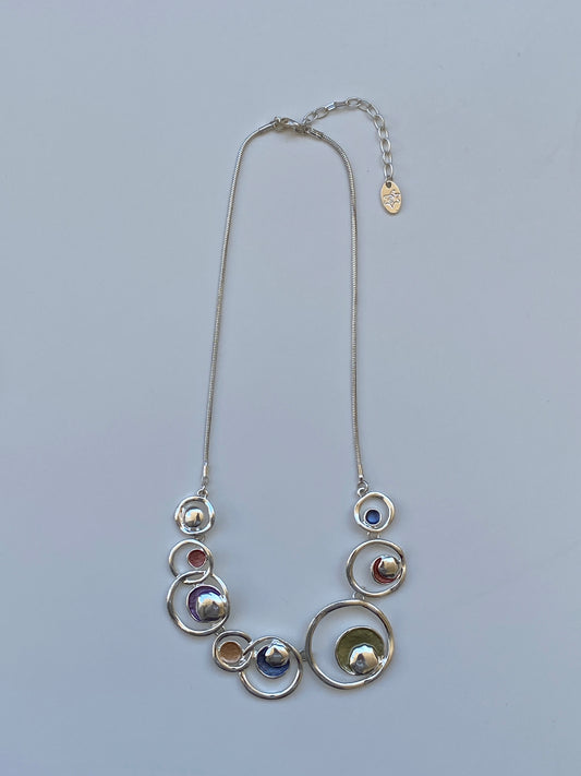 Vintage 2000s Silver Tone Abstract Circle Statement Multicolor Inlay Necklace