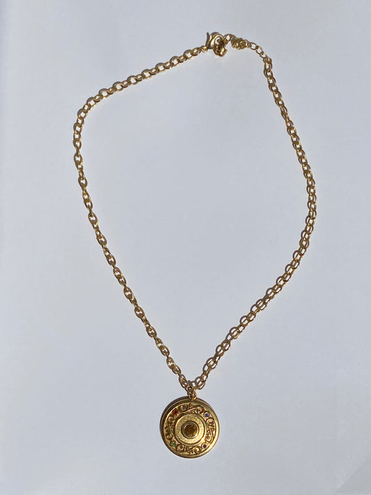 Vintage Gold Tone Rhinestone Medallion Pendant Necklace