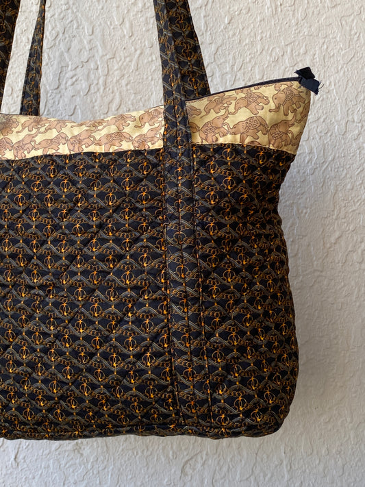 Vera Bradley Quilted Elephant Print Tote Bag Brown Shoulder Travel Bag