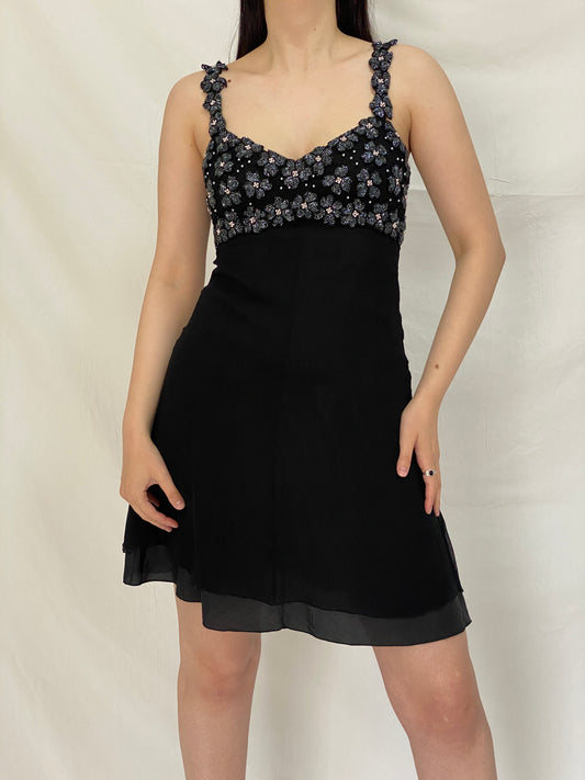 Vintage 1950s Black Micro Beaded Tapestry Floral Evening Bag – Gold Frame Mini Handbag