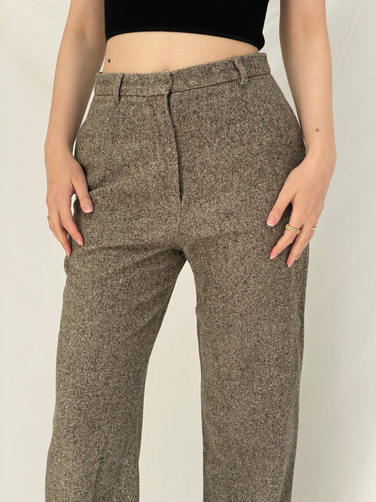 Vintage Max Mara Brown Wool Silk Tailored Trousers High Waist Winter Office Pants - M