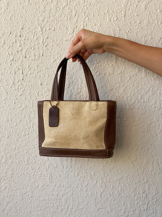 Rare Vintage Coach B9C-6120 Tan Canvas & Brown Leather Small Tote Handbag 90s Mini Satchel Purse