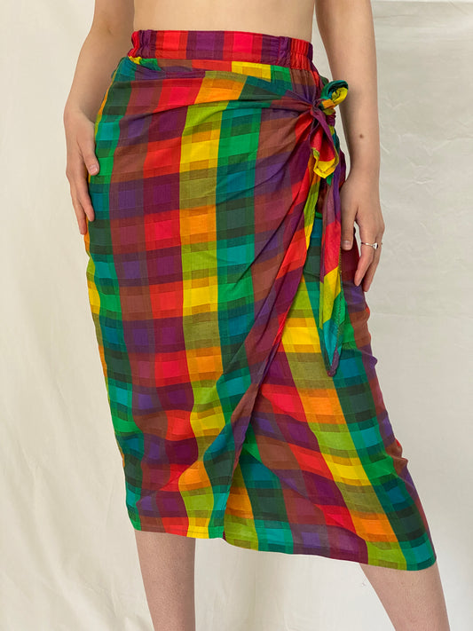 00s AMICI Woman Pink Plaid Midi Wool Skirt - L