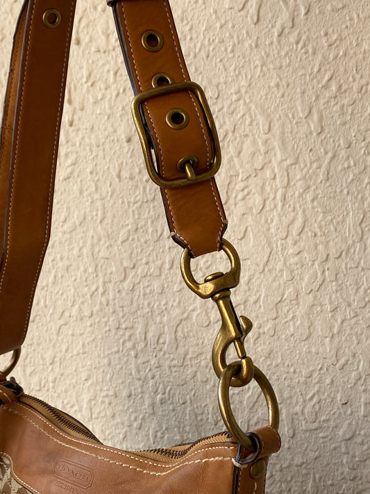 Vintage 2000s Coach Signature Monogram Canvas Shoulder Bag Brown & Tan Leather Trim