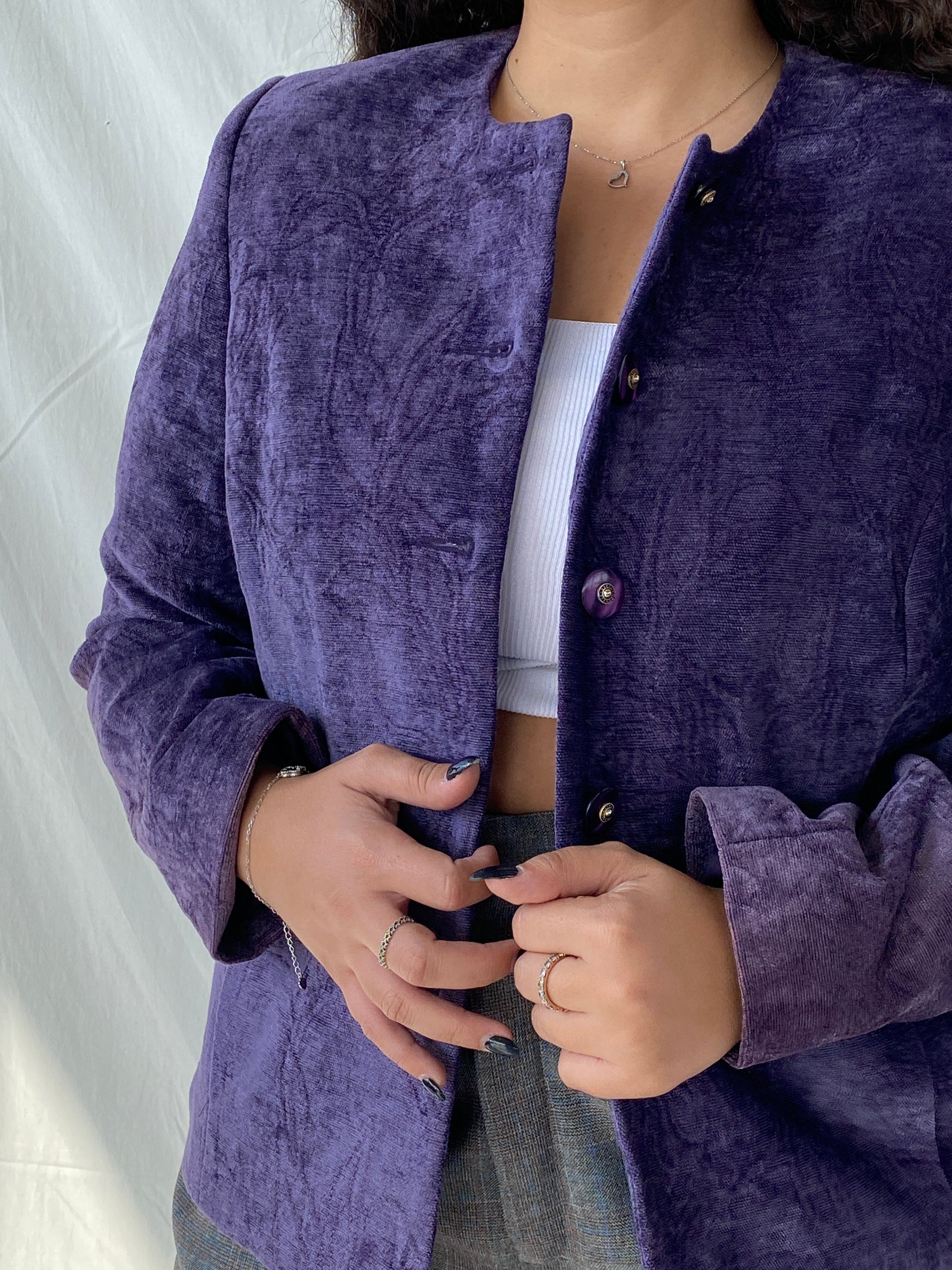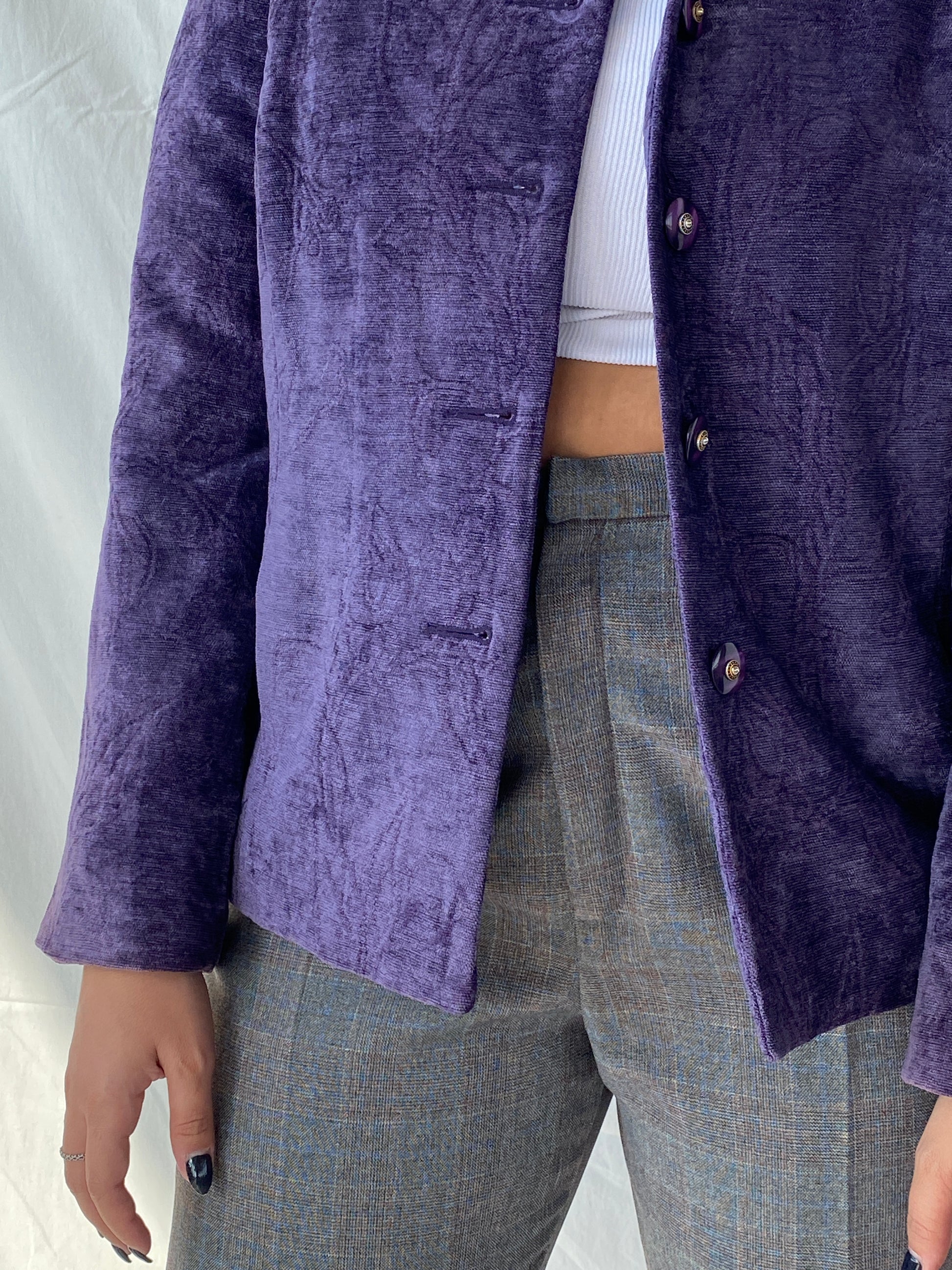سترة بليزر نسائية ثقيلة من المخمل بأزرار أرجوانية من KORET 00s - مقاس كبير