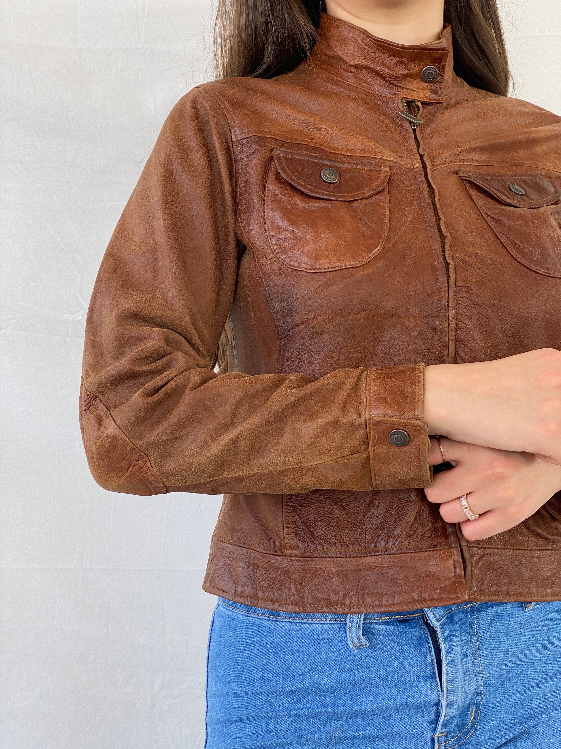 جاكيت بني من الجلد الطبيعي من 00s Next - مقاس صغير