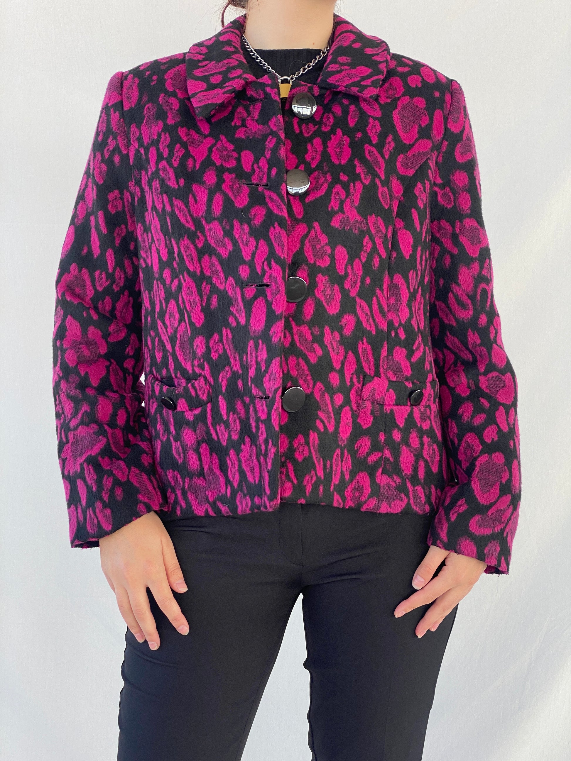 جاكيت نسائي بطبعة جلد الفهد باللونين الأسود والوردي من العقد الأول من القرن الحادي والعشرين - مقاس كبير