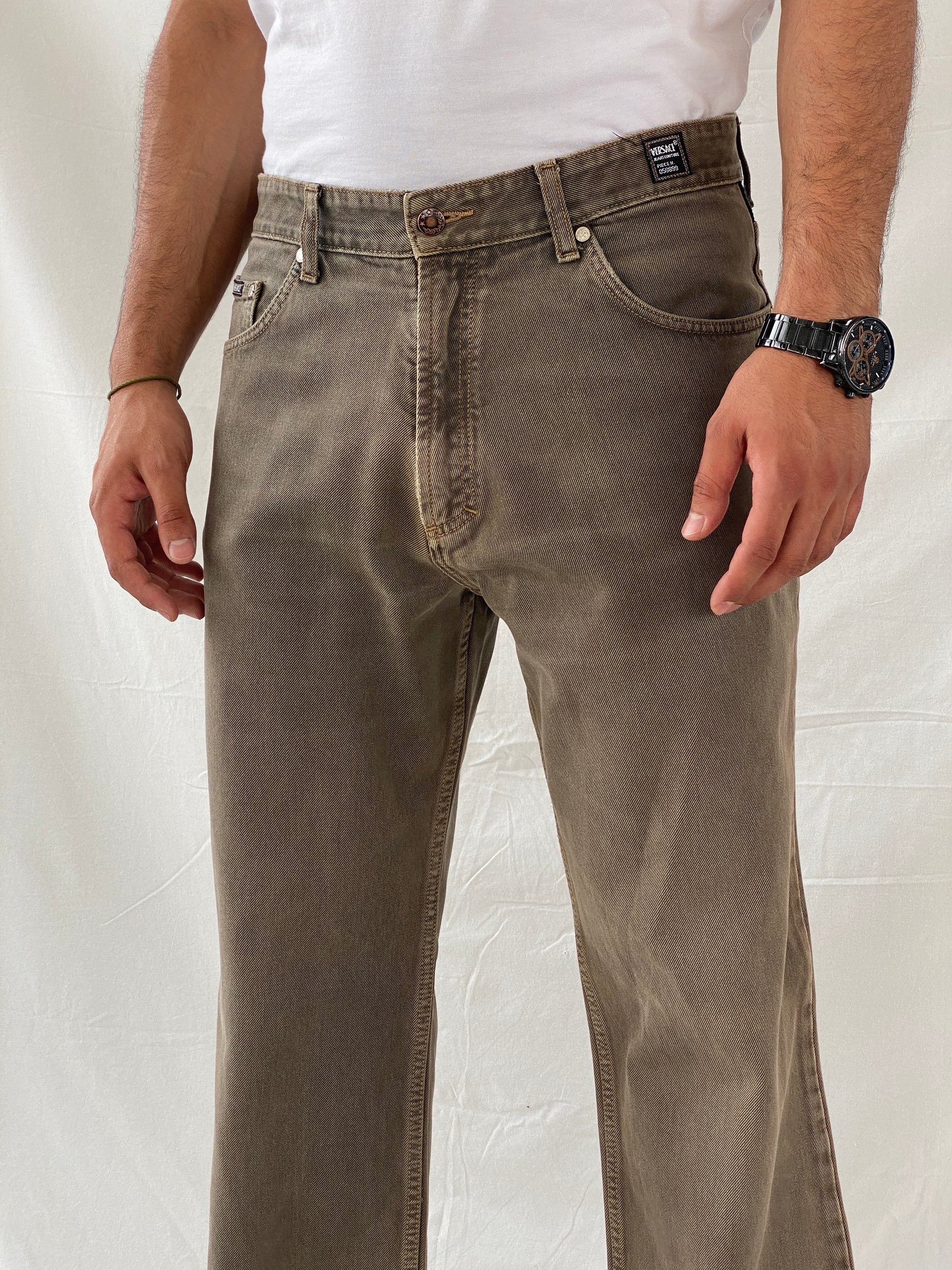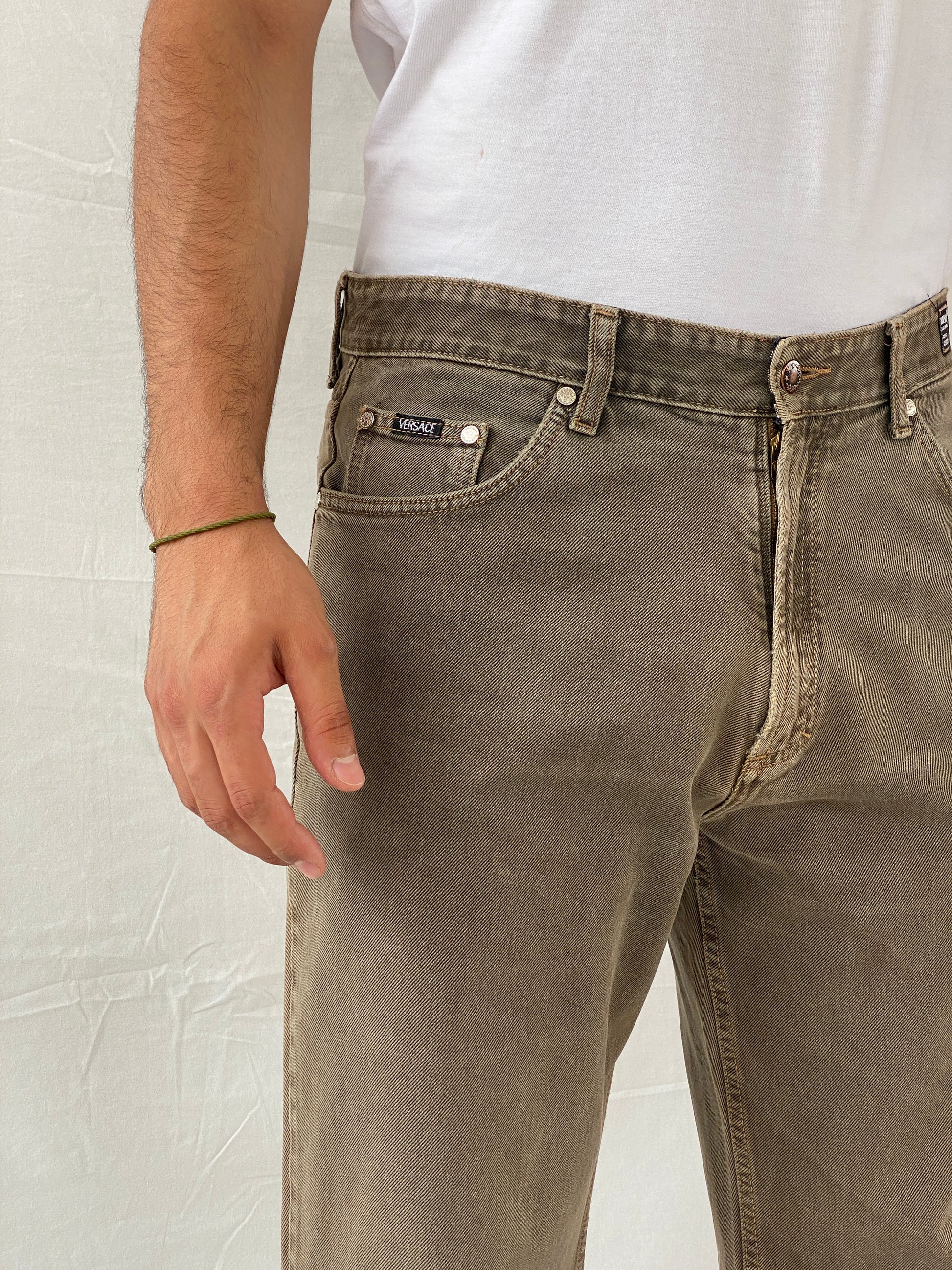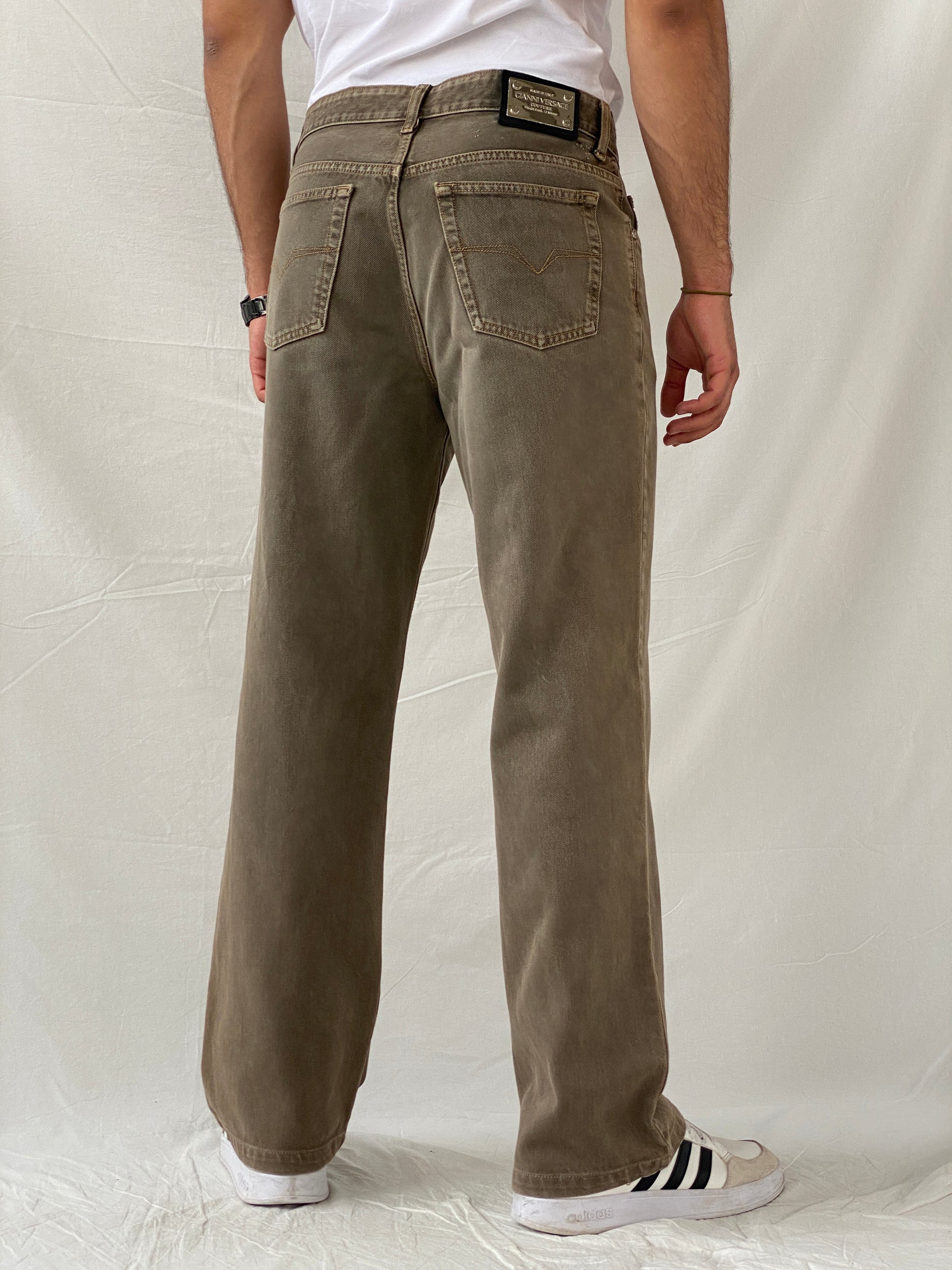 بنطال جينز رجالي بني بقصّة مستقيمة من فيرساتشي جينز كوتور 2012، الإضافة المثالية لخزانة ملابسك العصرية. مصنوع من خامات عالية الجودة، يوفر هذا الجينز قصة مريحة وأنيقة. أكمل إطلالتك بتنسيقه مع تيشيرت أبيض، وقميص بيج، وحقيبة كروس. تألق بإطلالة عصرية مثالية مع هذا الجينز متعدد الاستخدامات.
