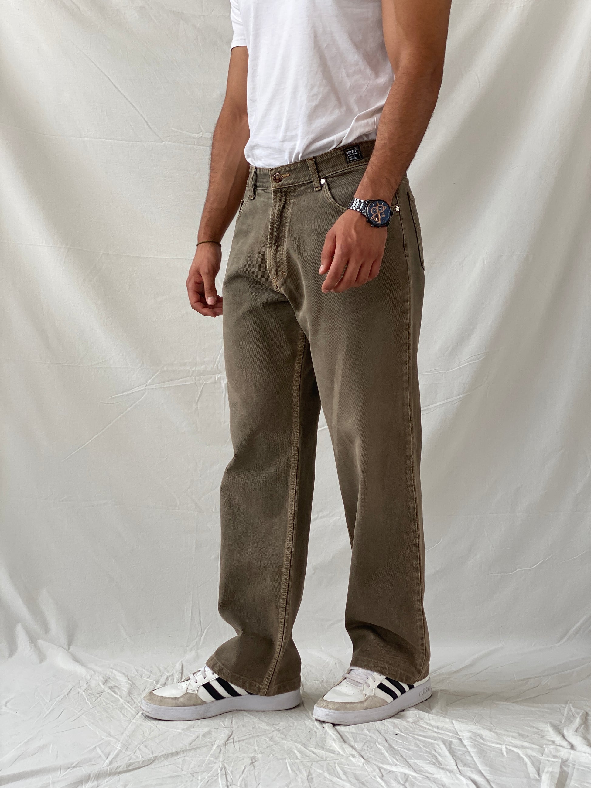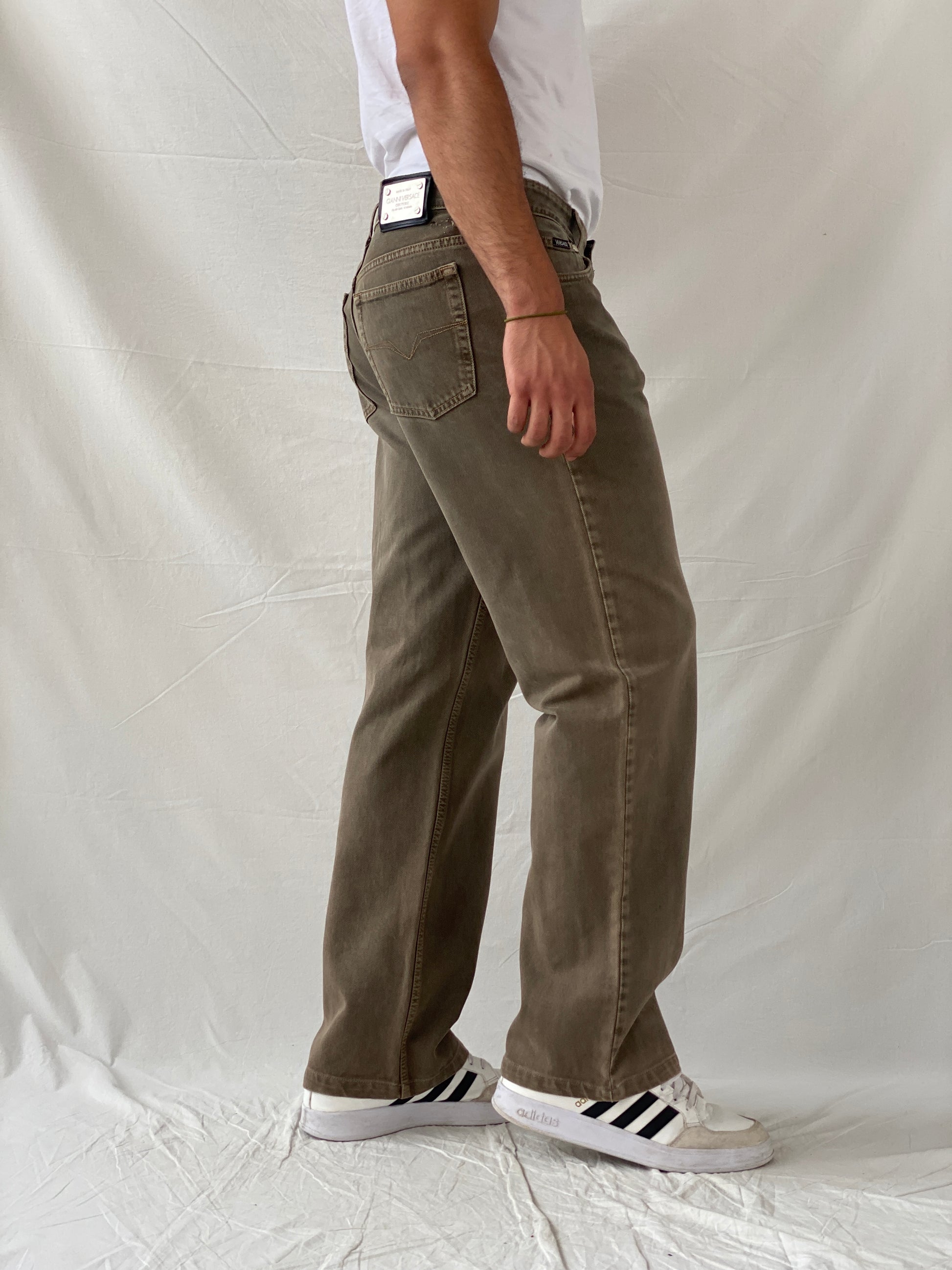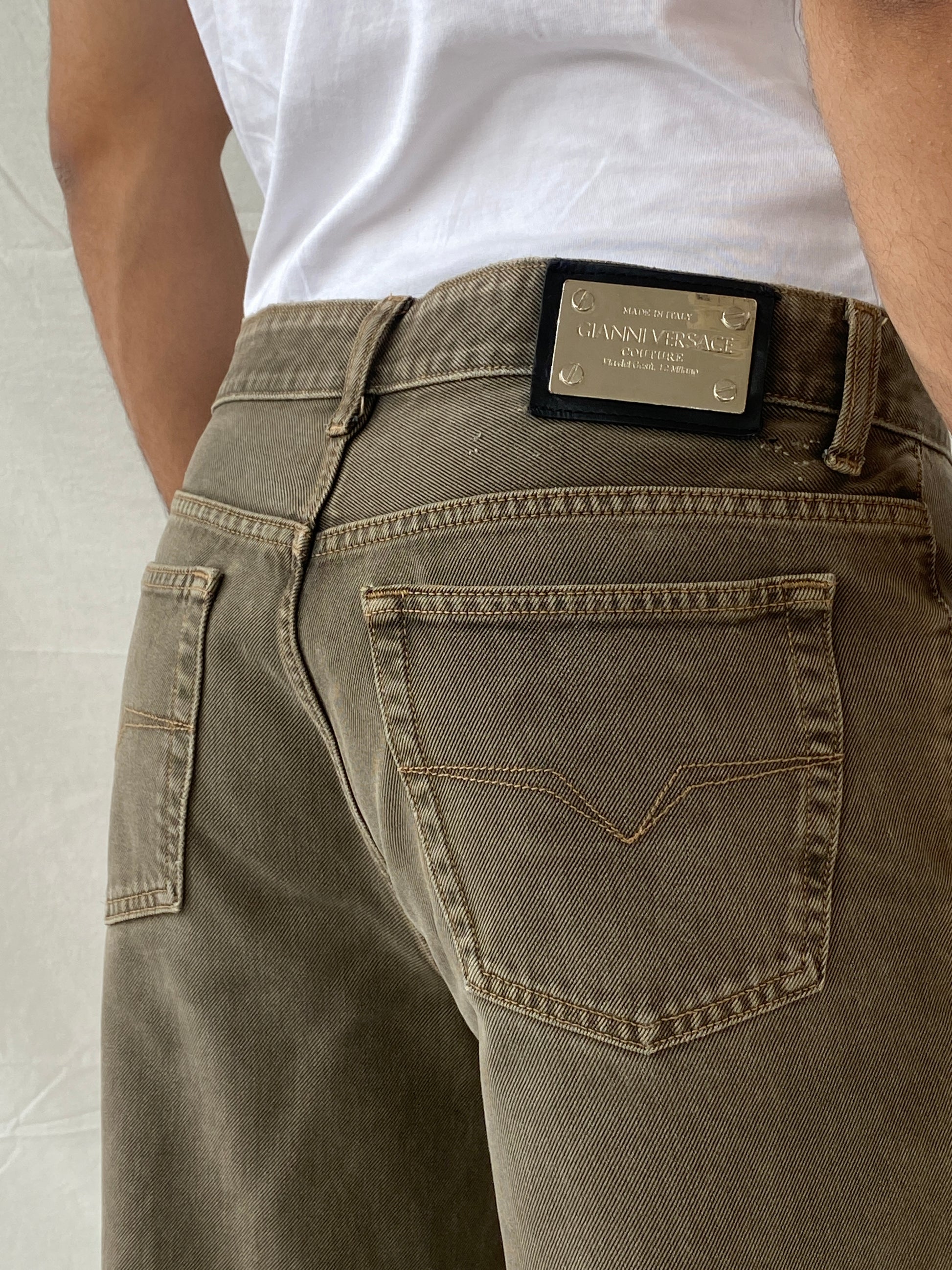 بنطال جينز رجالي بني بقصّة مستقيمة من فيرساتشي جينز كوتور 2012، الإضافة المثالية لخزانة ملابسك العصرية. مصنوع من خامات عالية الجودة، يوفر هذا الجينز قصة مريحة وأنيقة. أكمل إطلالتك بتنسيقه مع تيشيرت أبيض، وقميص بيج، وحقيبة كروس. تألق بإطلالة عصرية مثالية مع هذا الجينز متعدد الاستخدامات.