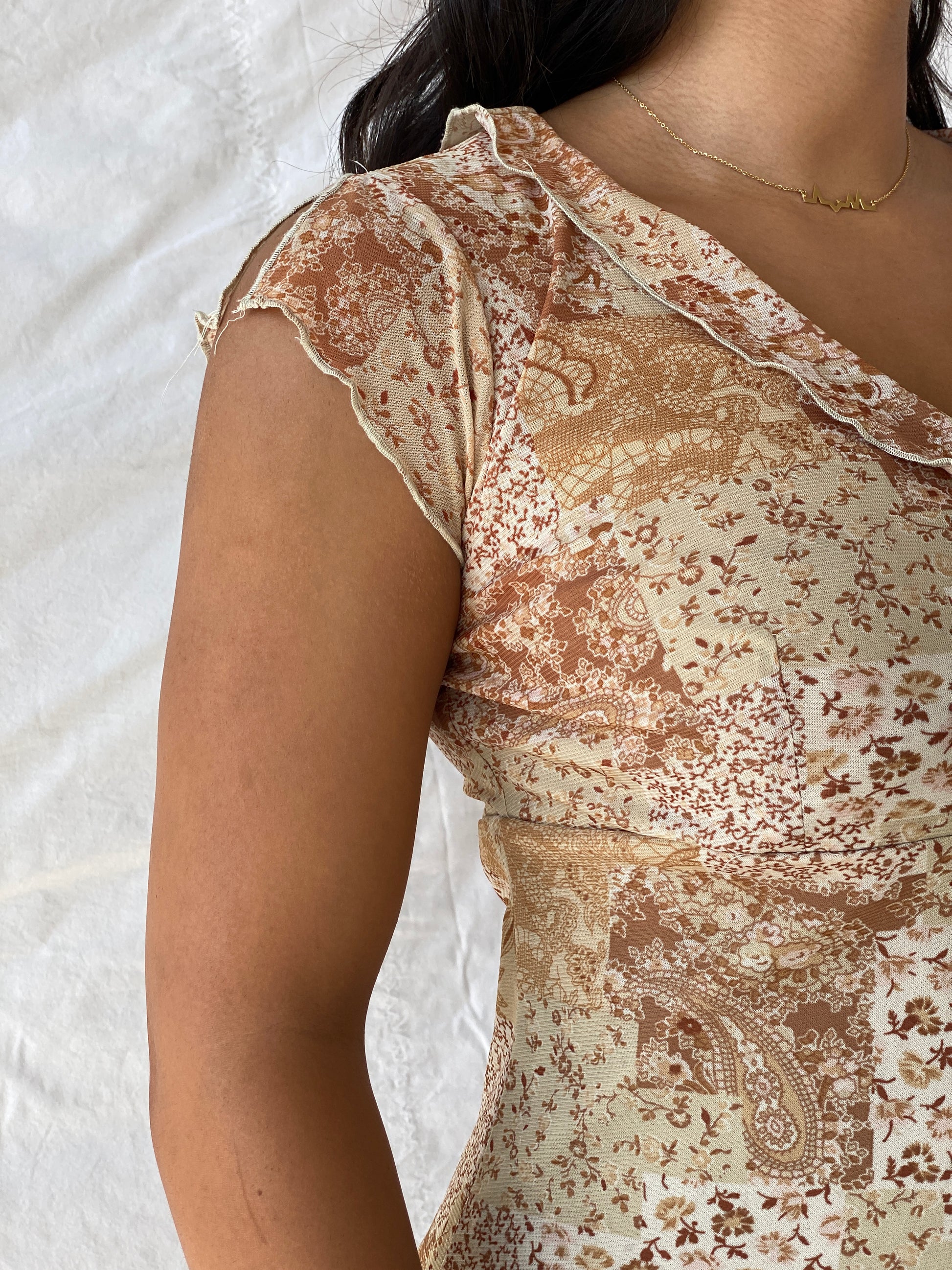 فستان شبكي باهت من التسعينيات/الألفينيات مع ياقة مكشكشة - مقاس صغير