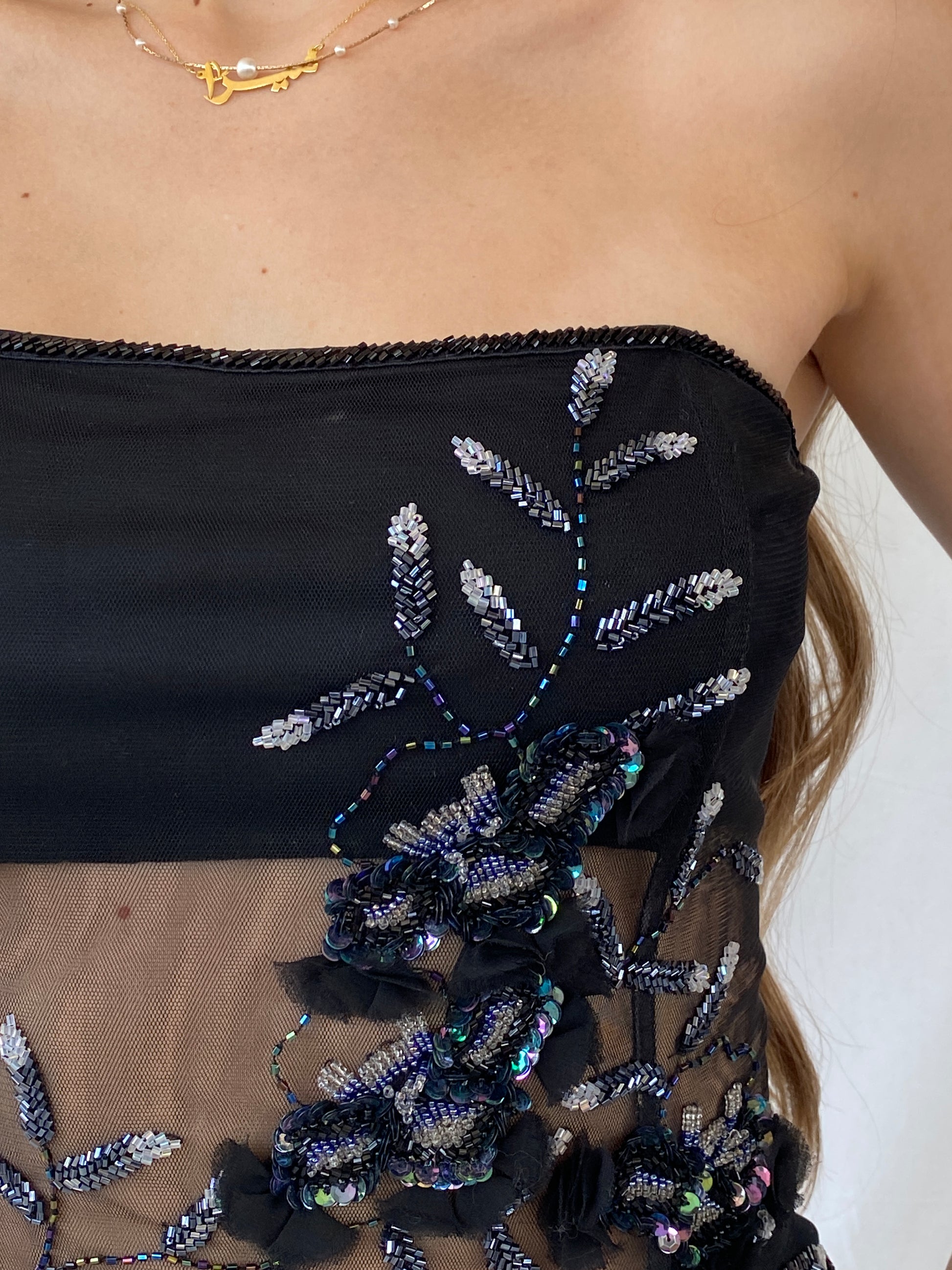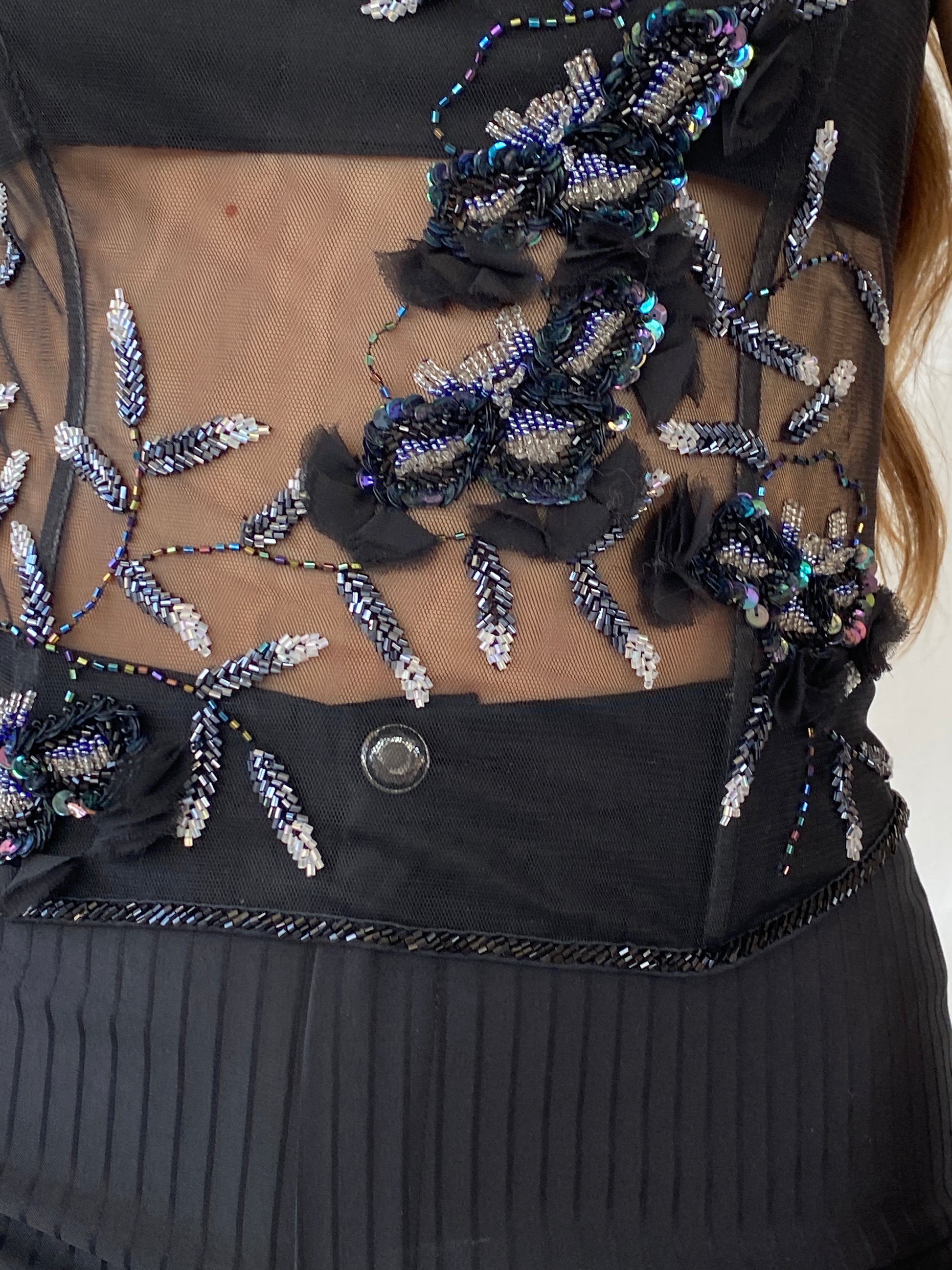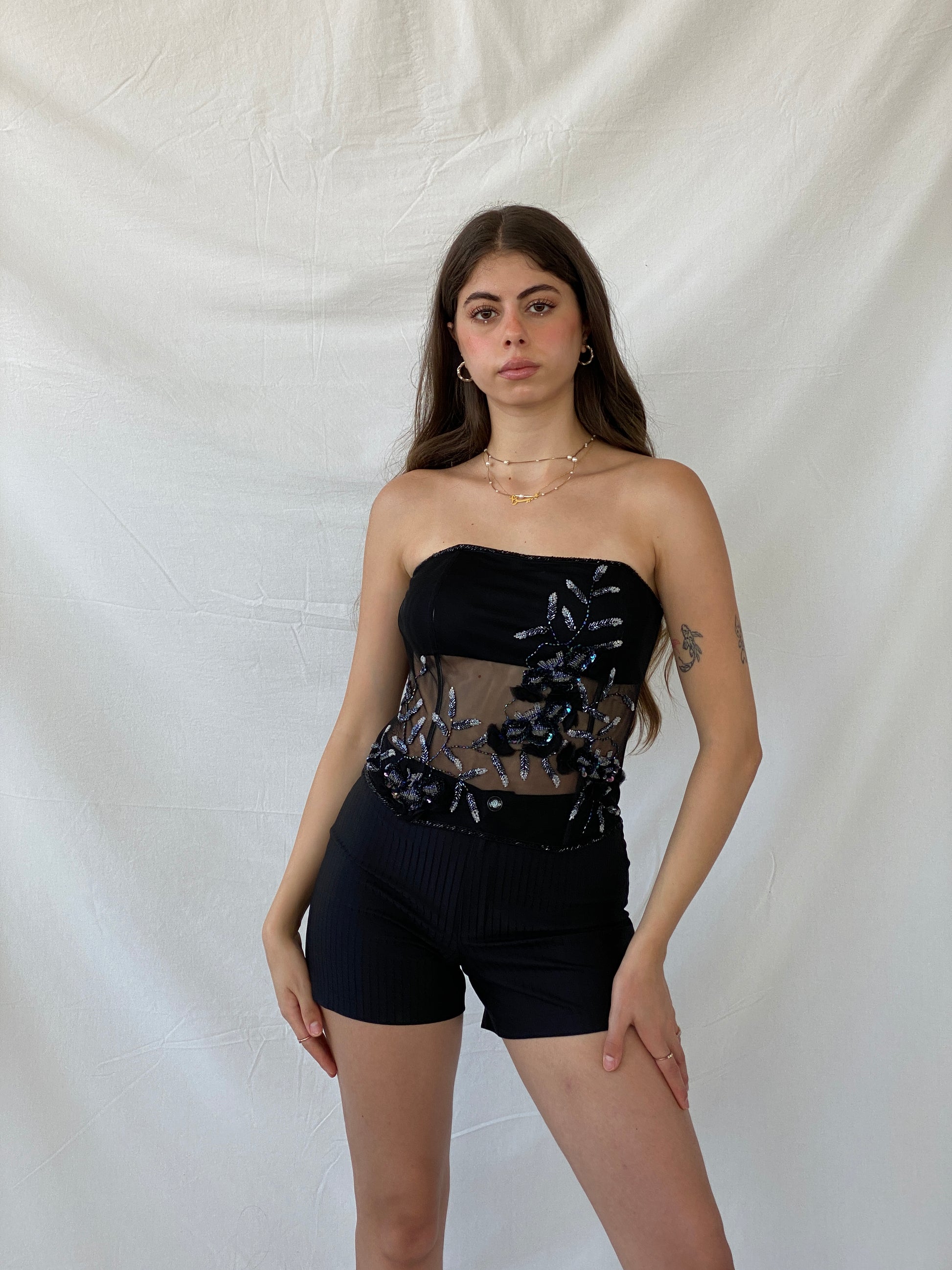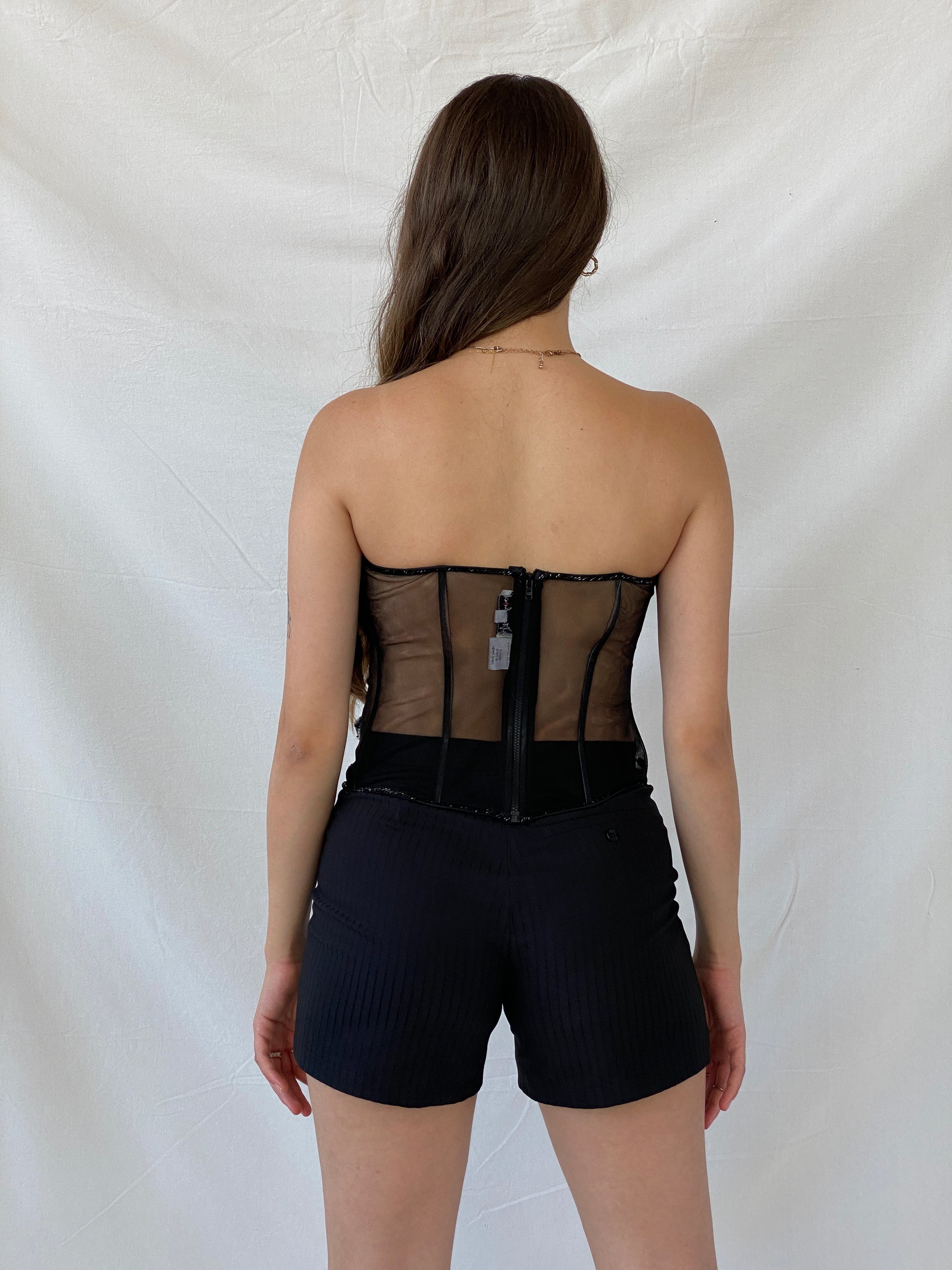 كورسيه أسود شفاف شبه مزين بالخرز من التسعينيات - مقاس صغير