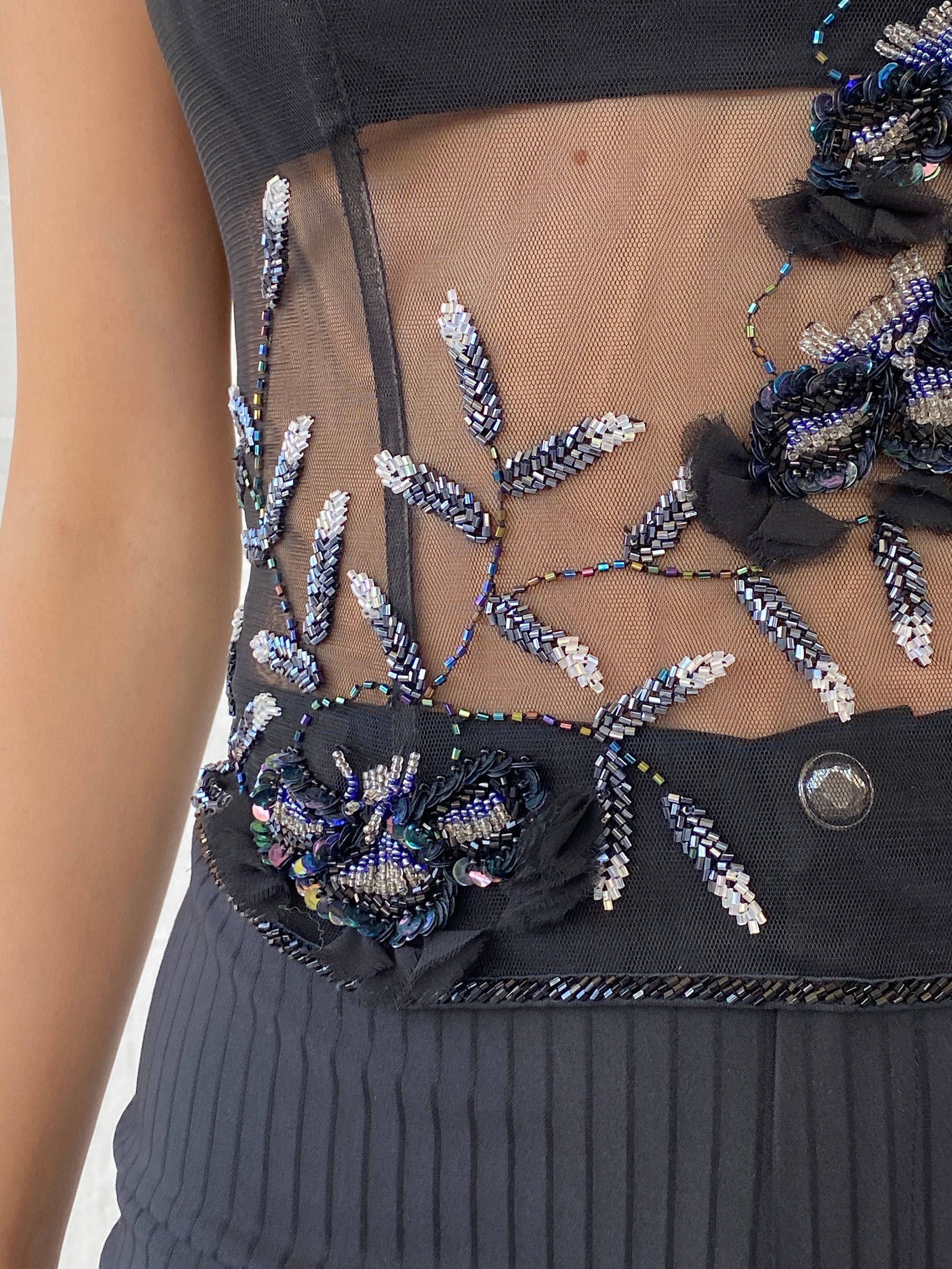 كورسيه أسود شفاف شبه شفاف مزين بالخرز من التسعينيات - مقاس صغير