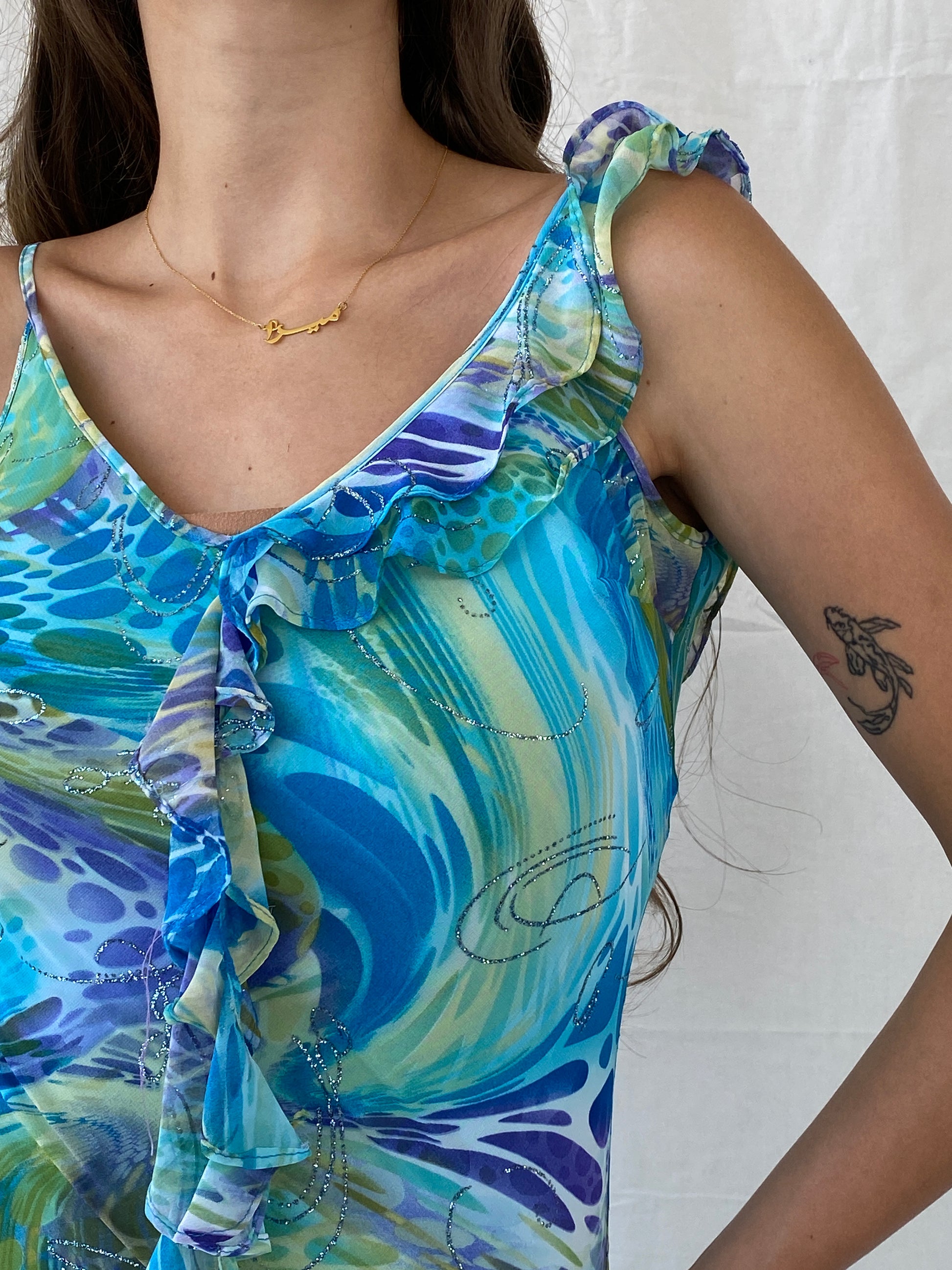 فستان حورية البحر متوسط الطول ذو الحافة غير المتماثلة من مجموعة غاردو الحالمة من التسعينيات باللونين الأزرق والأرجواني - مقاس صغير