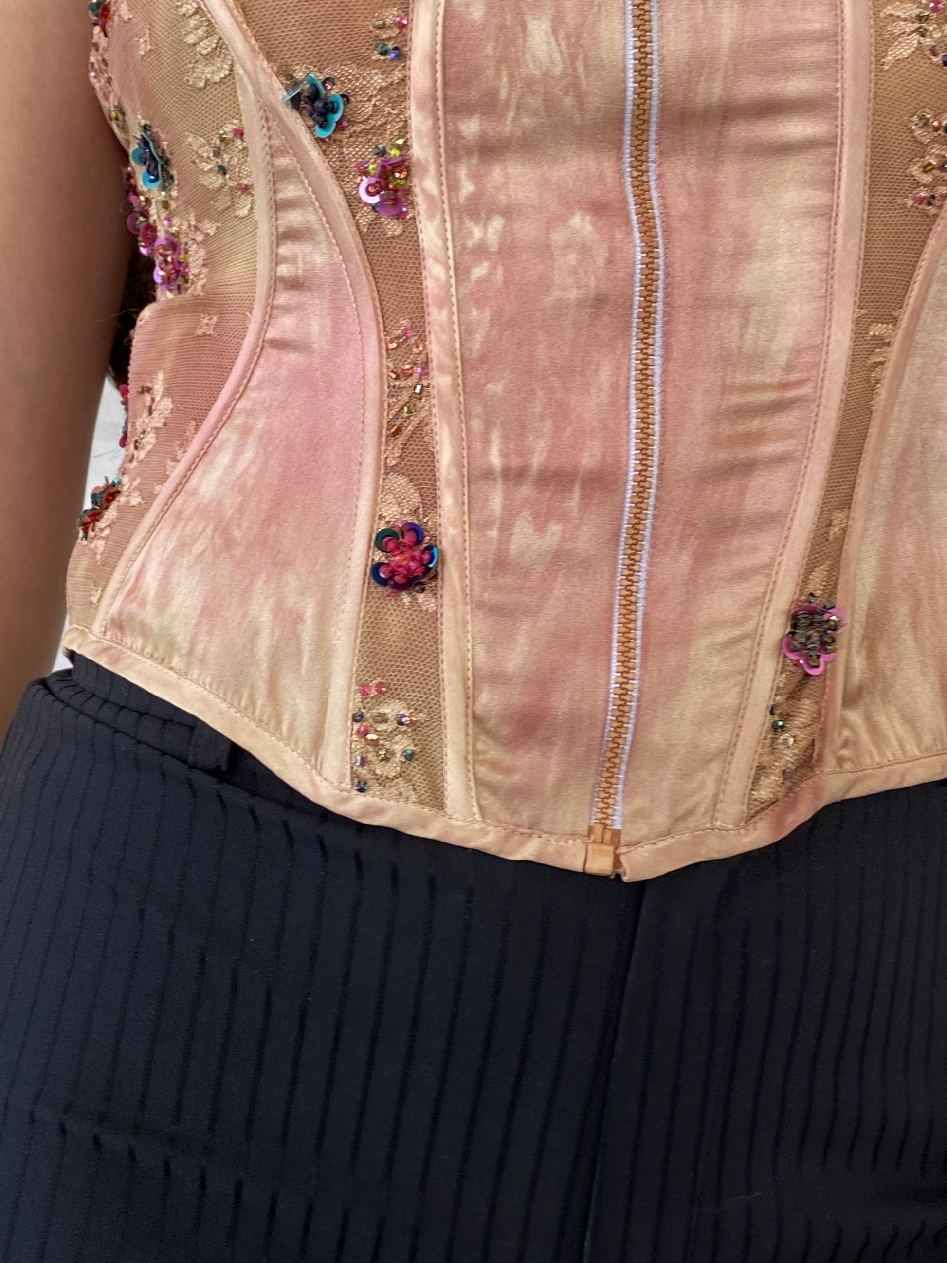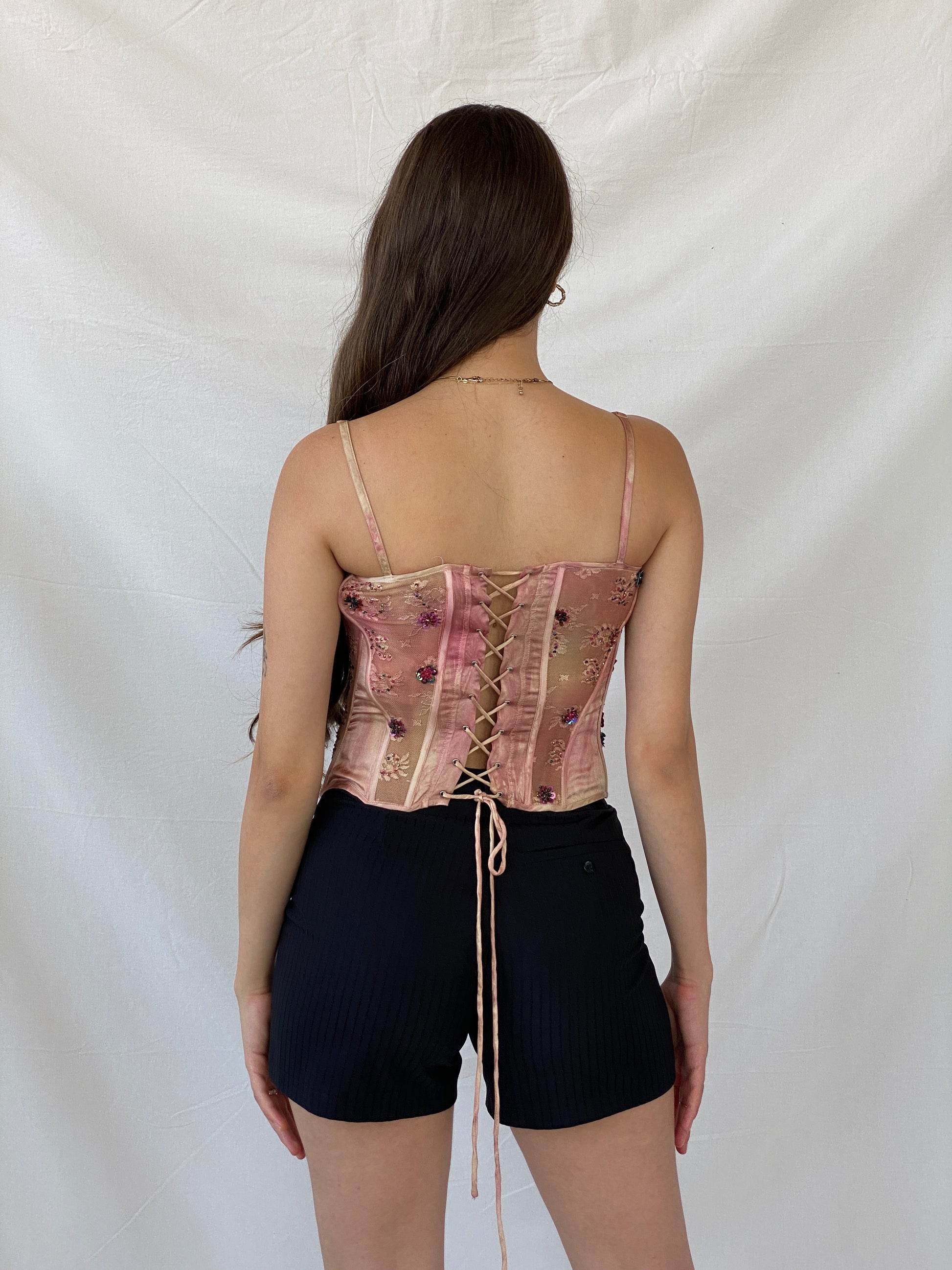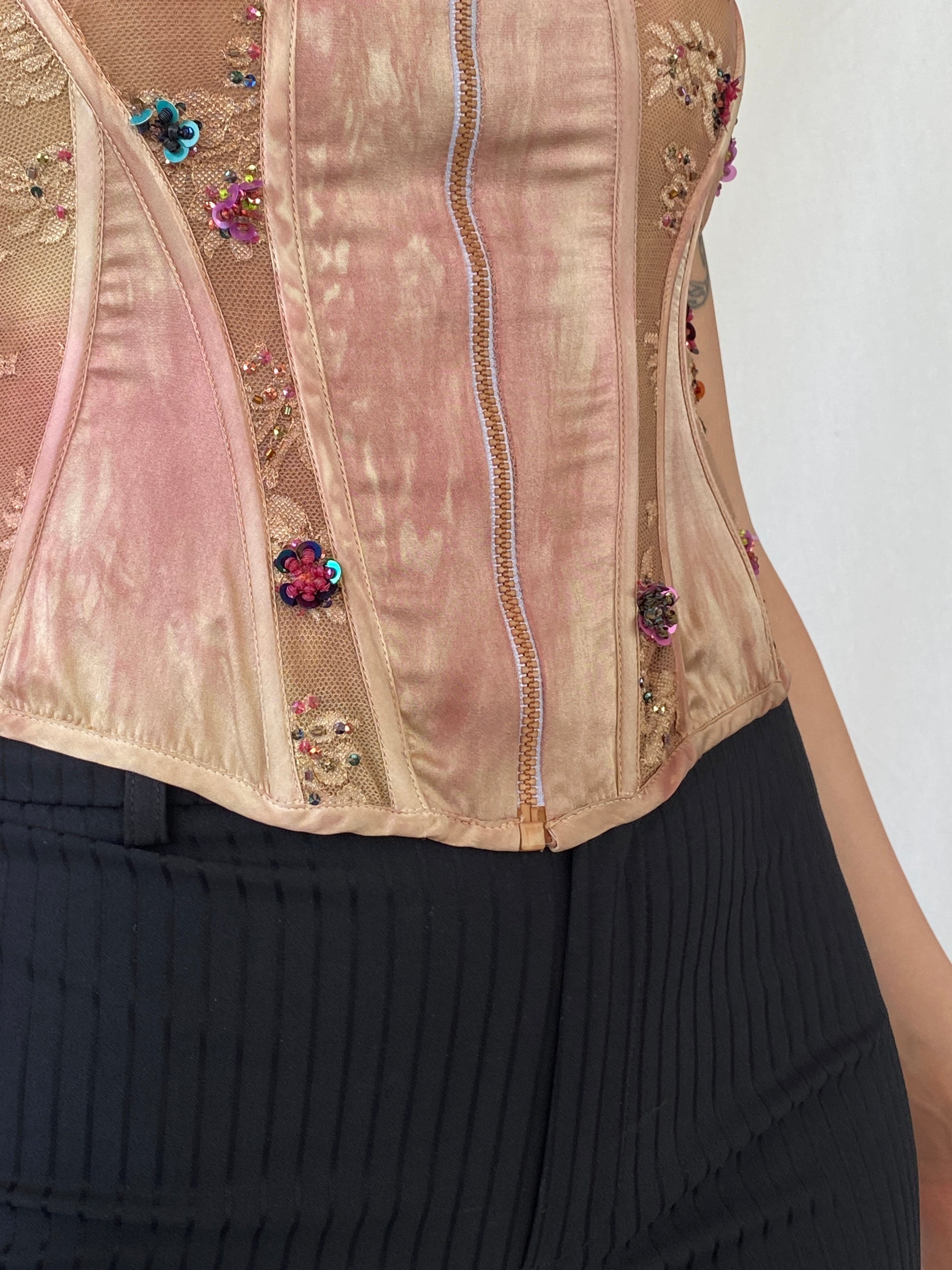 كورسيه جوراندو الوردي المزين بالخرز من التسعينيات بسحاب أمامي - مقاس صغير