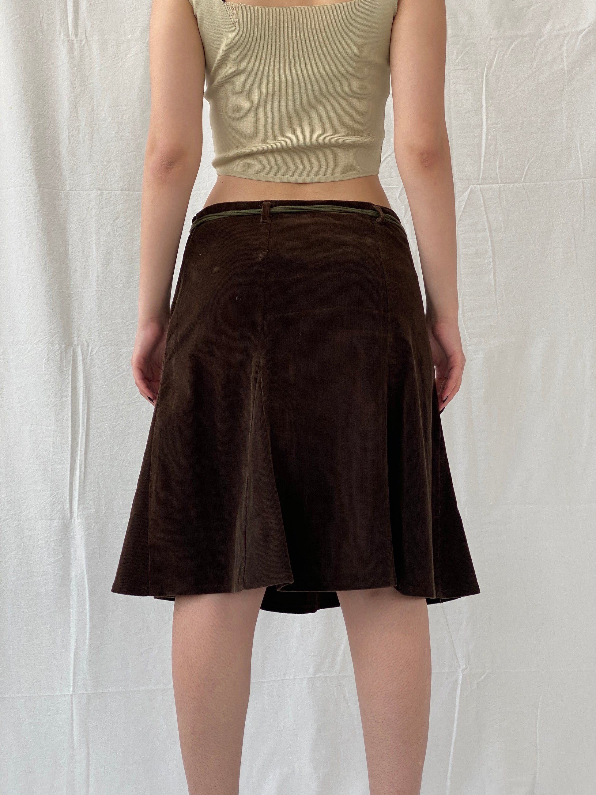 تنورة متوسطة الطول من قماش مخملي بني من طراز بيسكارا التسعينيات مع حزام ربطة عنق من الحبل - مقاس متوسط