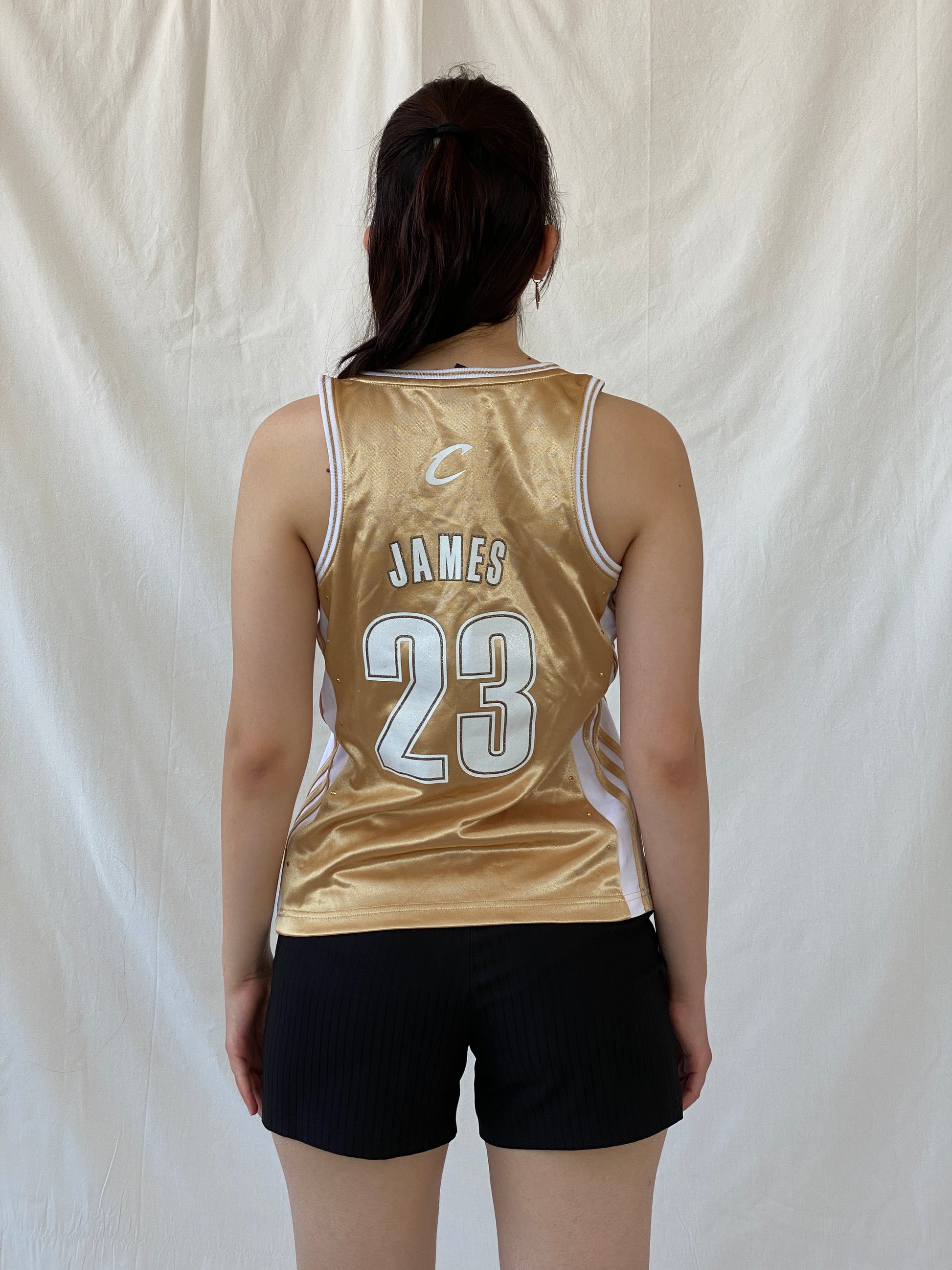 قميص كرة السلة الرياضي النادر من Adidas NBA LeBron James رقم 23 Gold من Cleveland Cavaliers لعام 2000 - مقاس صغير
