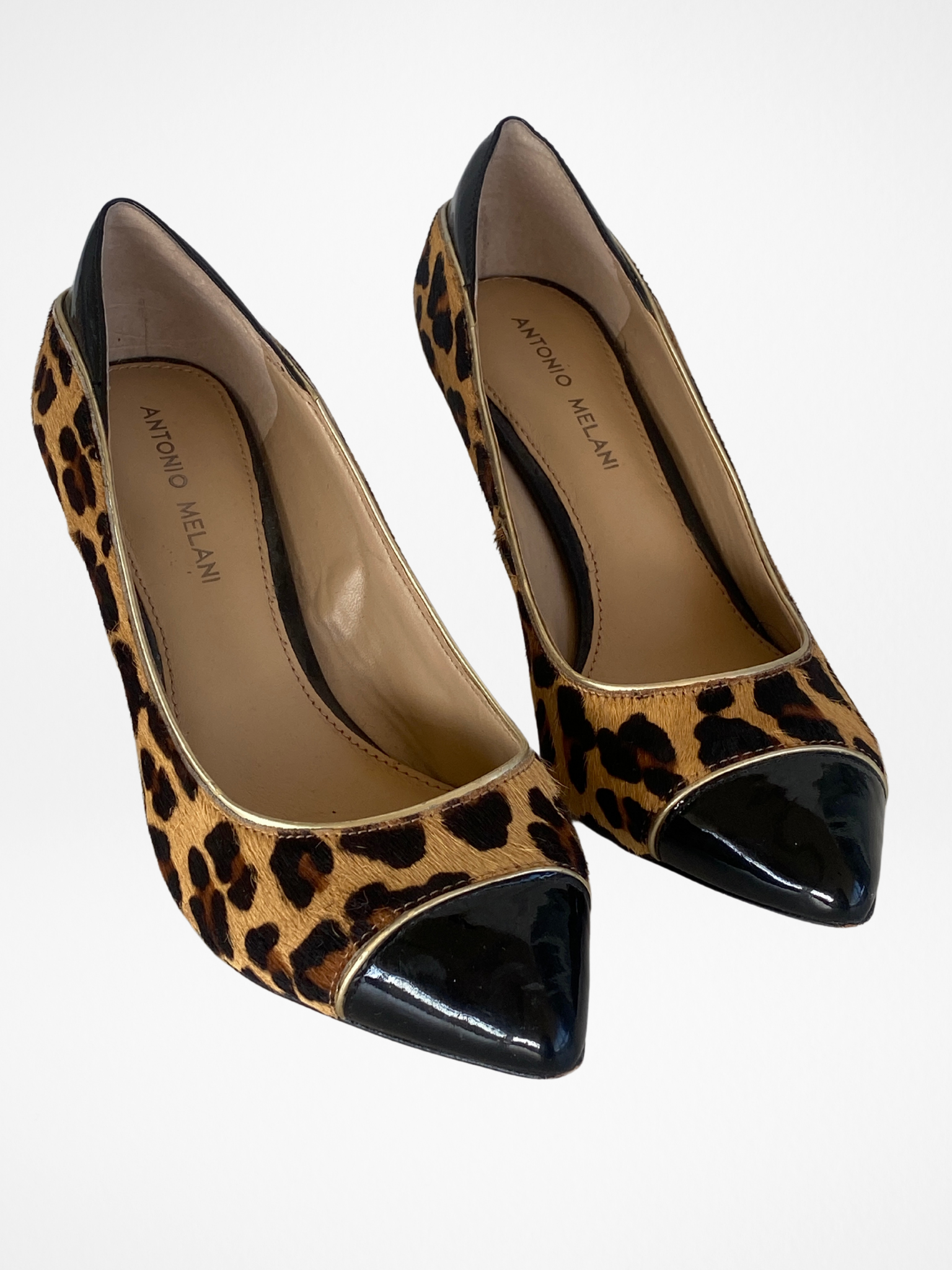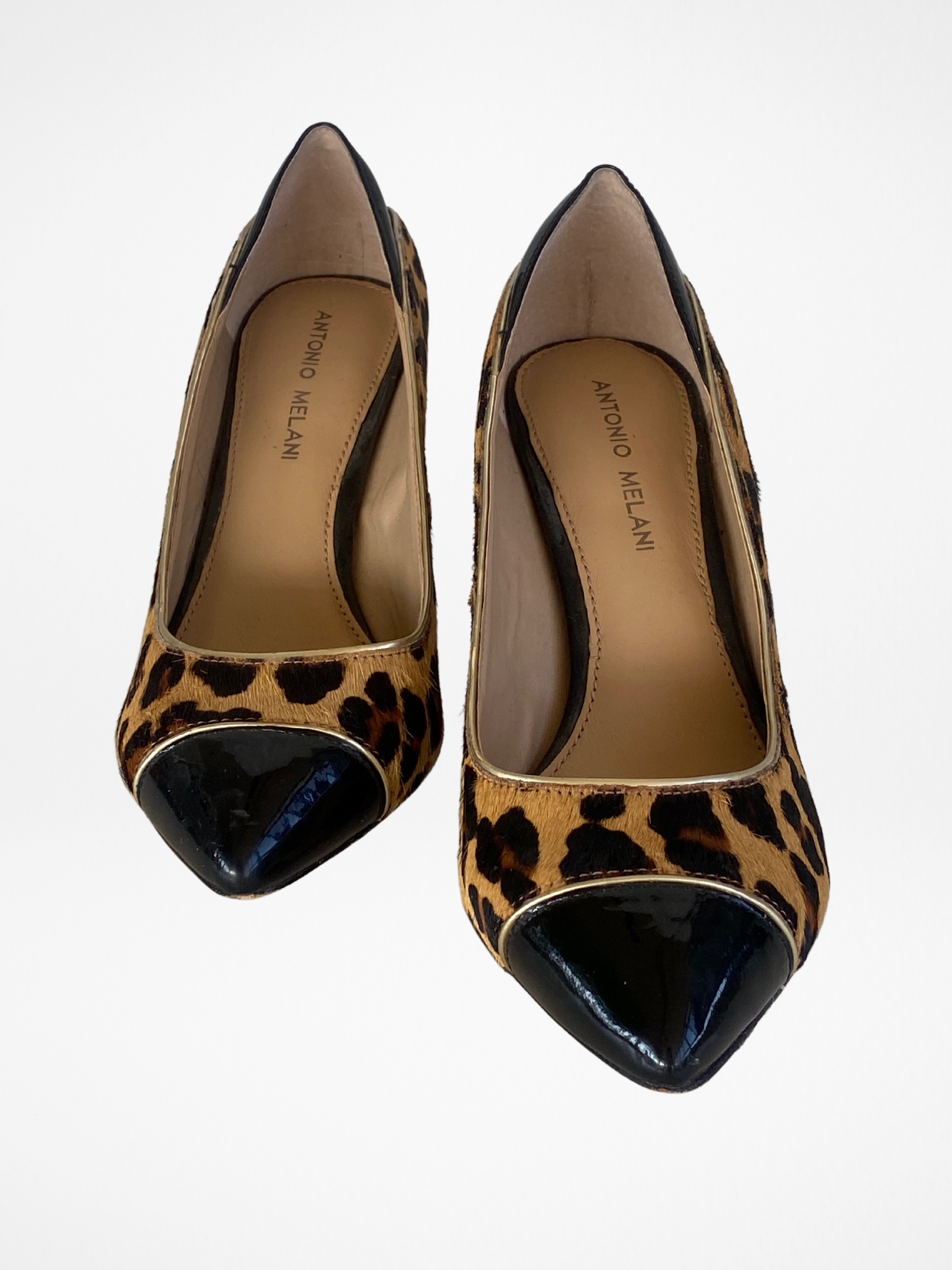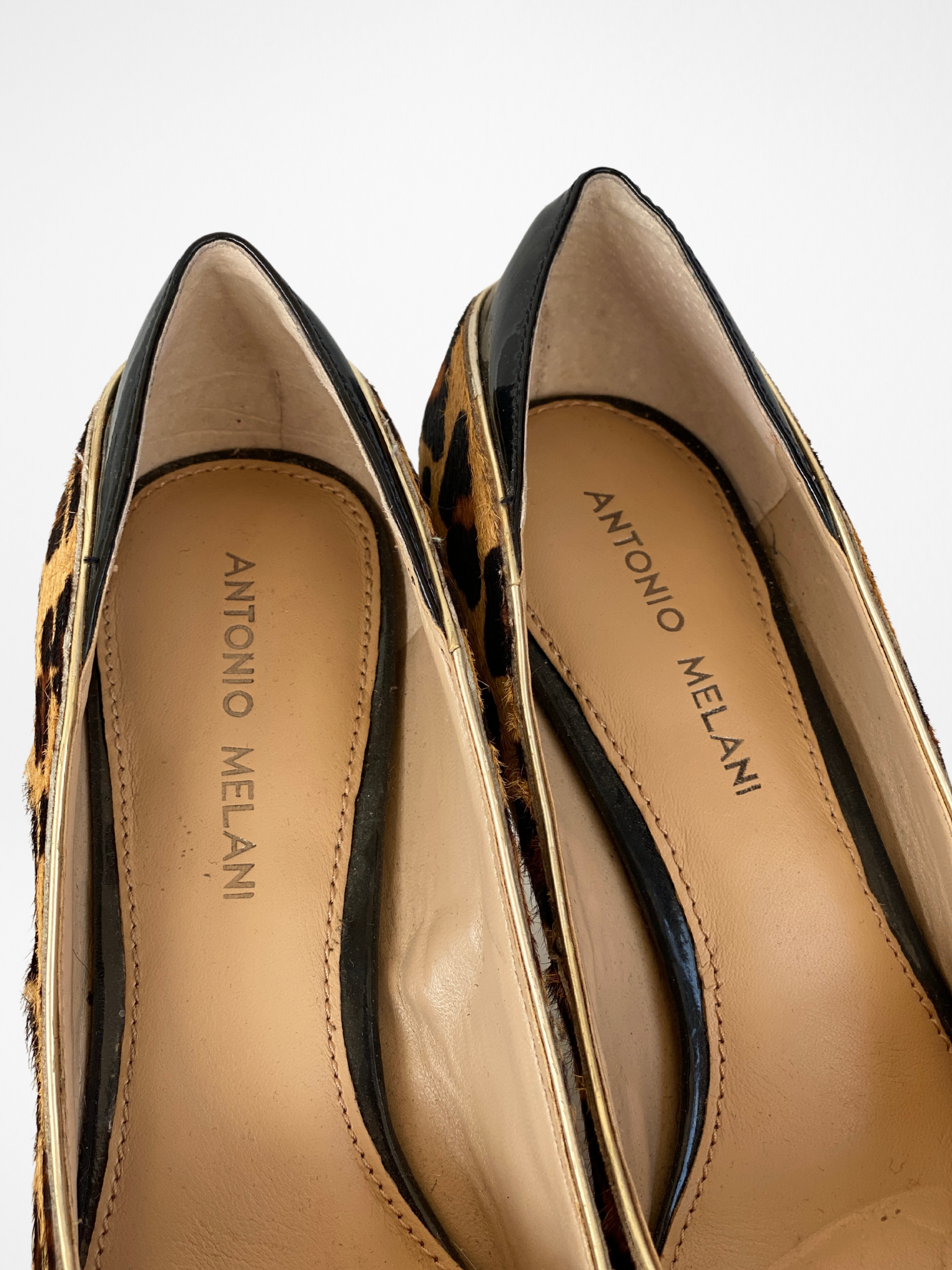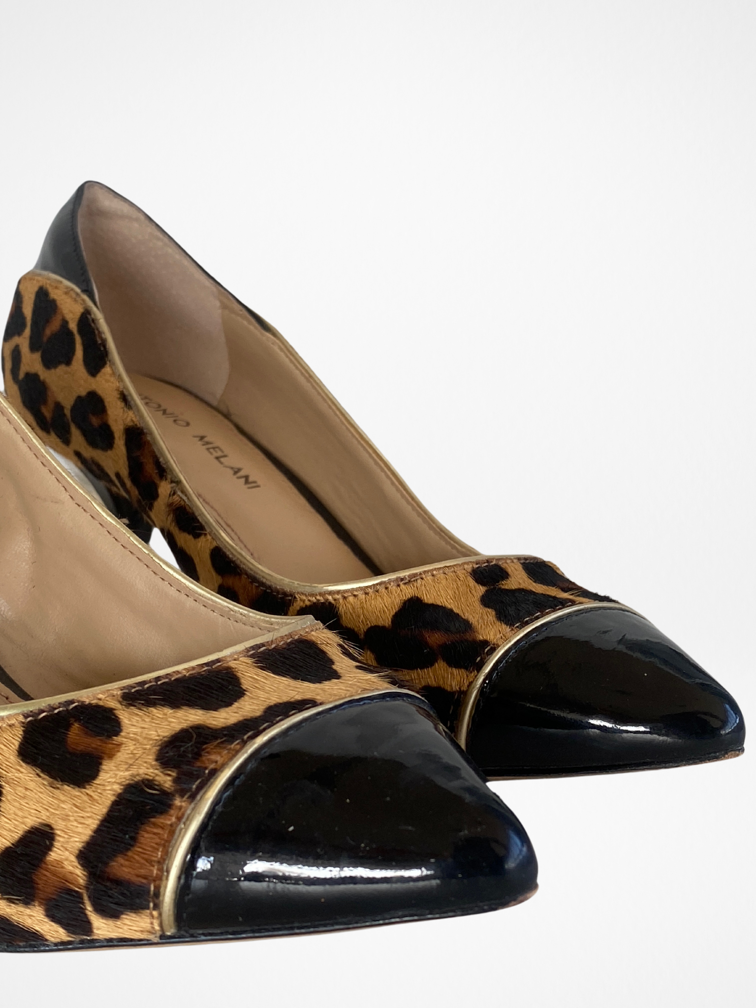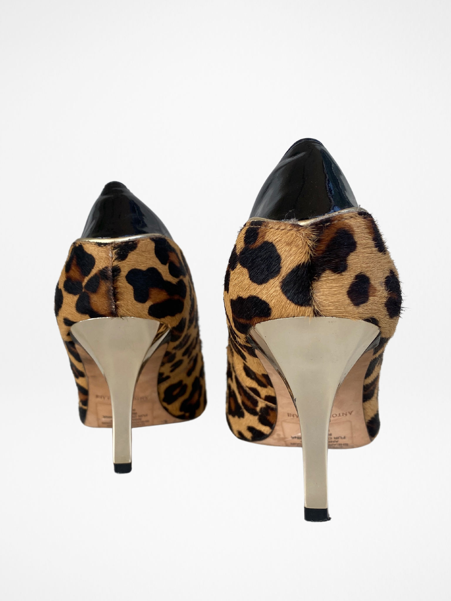 حذاء أنطونيو ميلاني بكعب عالٍ من جلد العجل المقصوص بطبعة الفهد - 38.5 يورو
