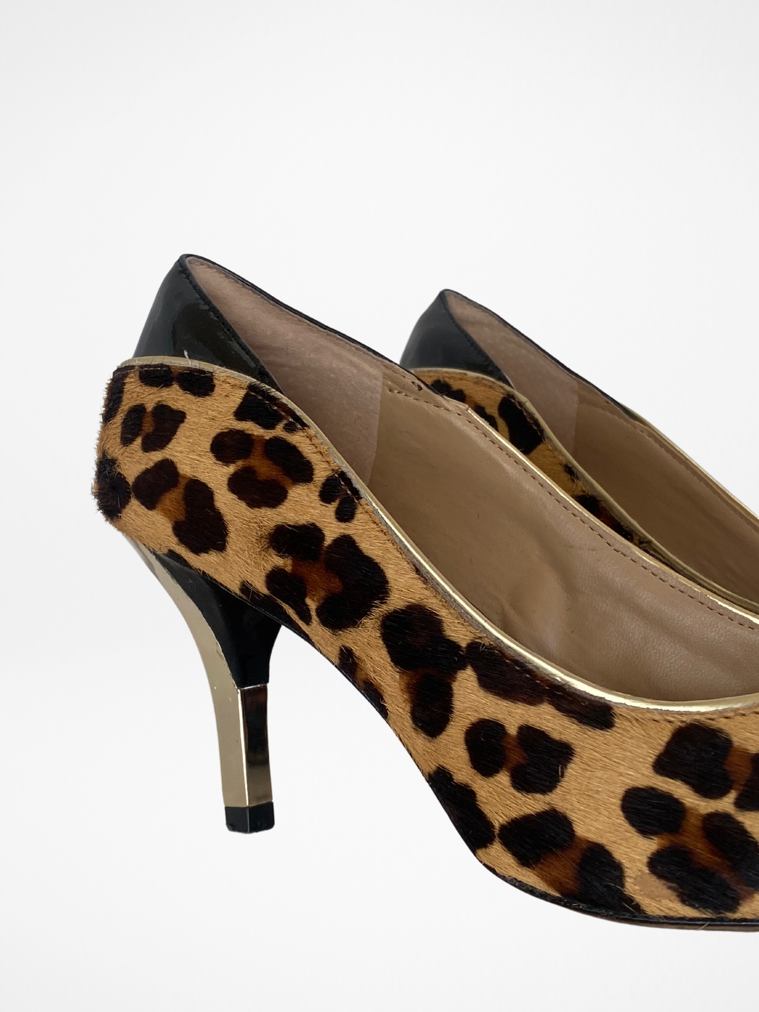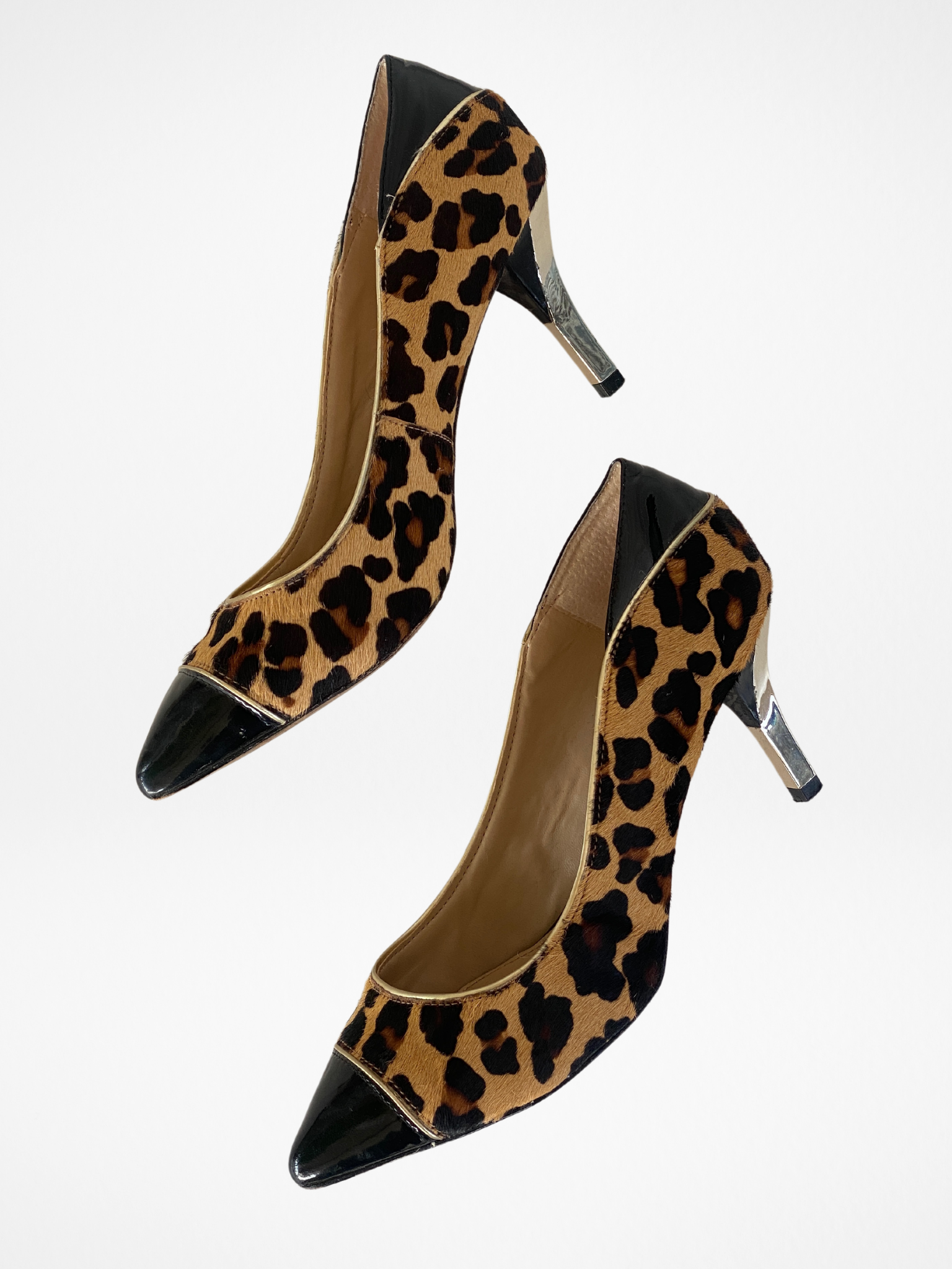 حذاء أنطونيو ميلاني بكعب عالٍ من الجلد بطبعة الفهد من فرو العجل الحقيقي المقصوص - 39 يورو