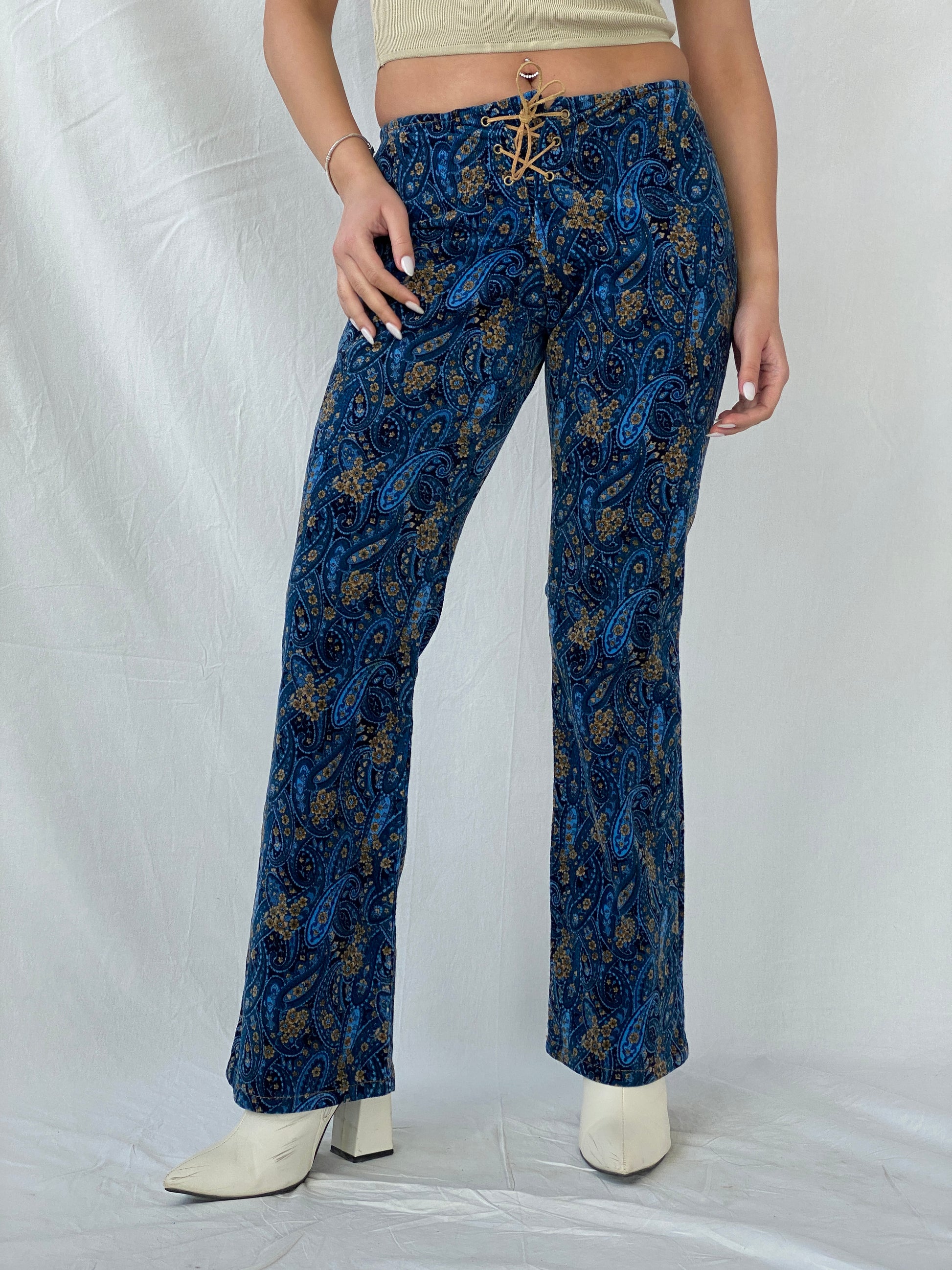 بنطلون Vintage AR Ace Ross Studios من قماش مخملي متوسط الارتفاع بطبعة بيزلي - 36 يورو