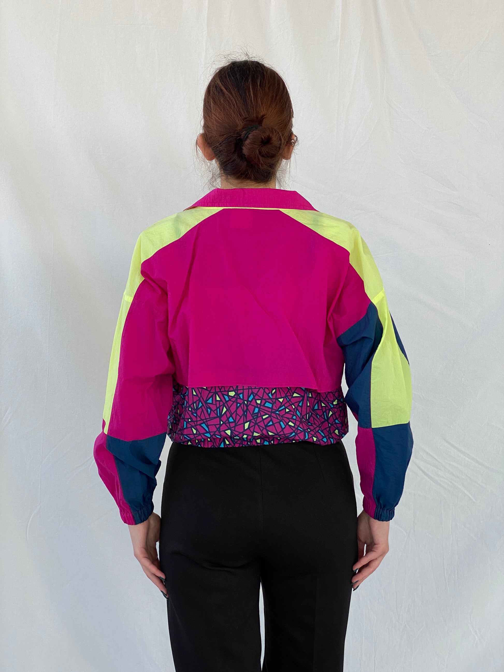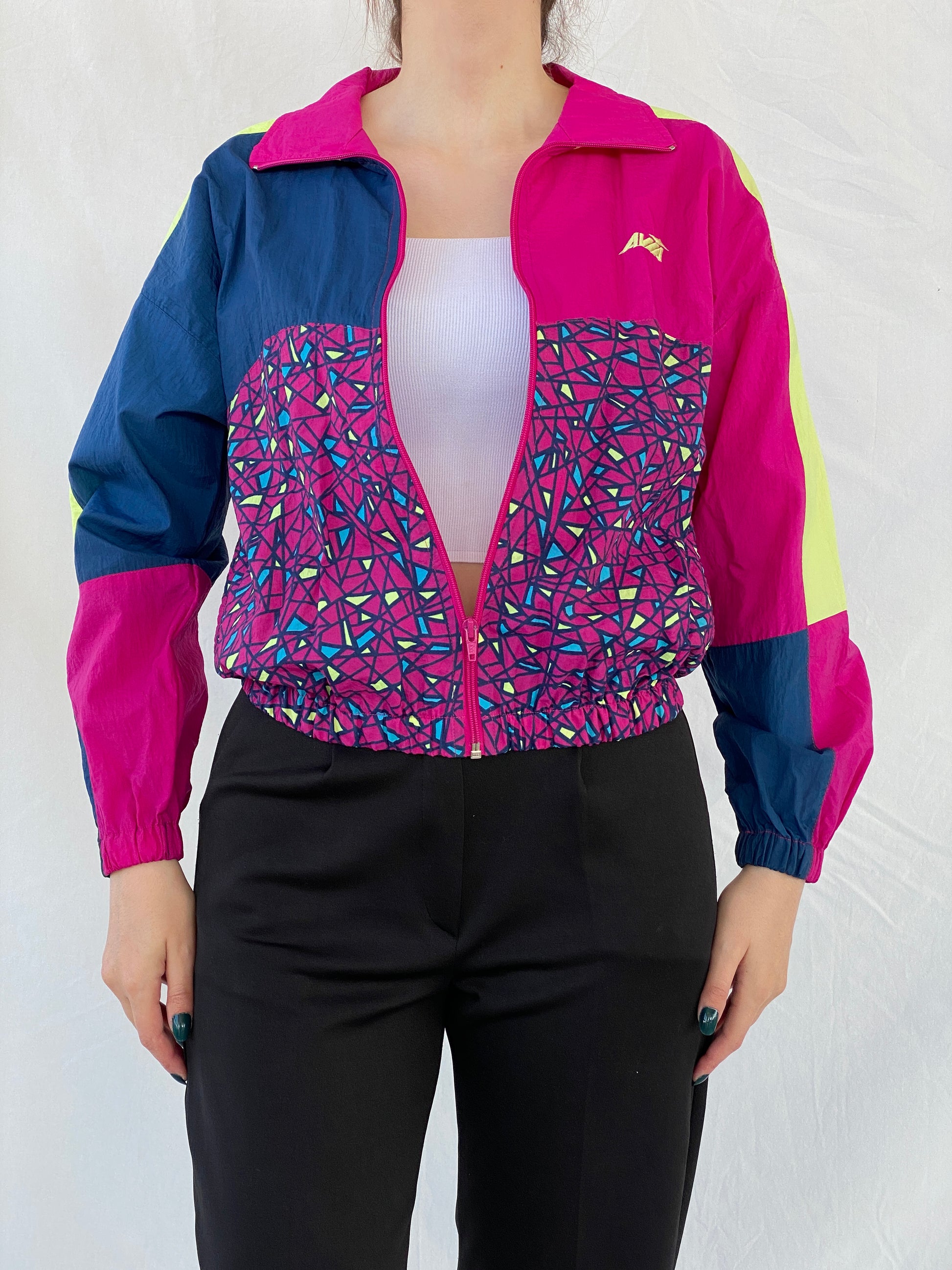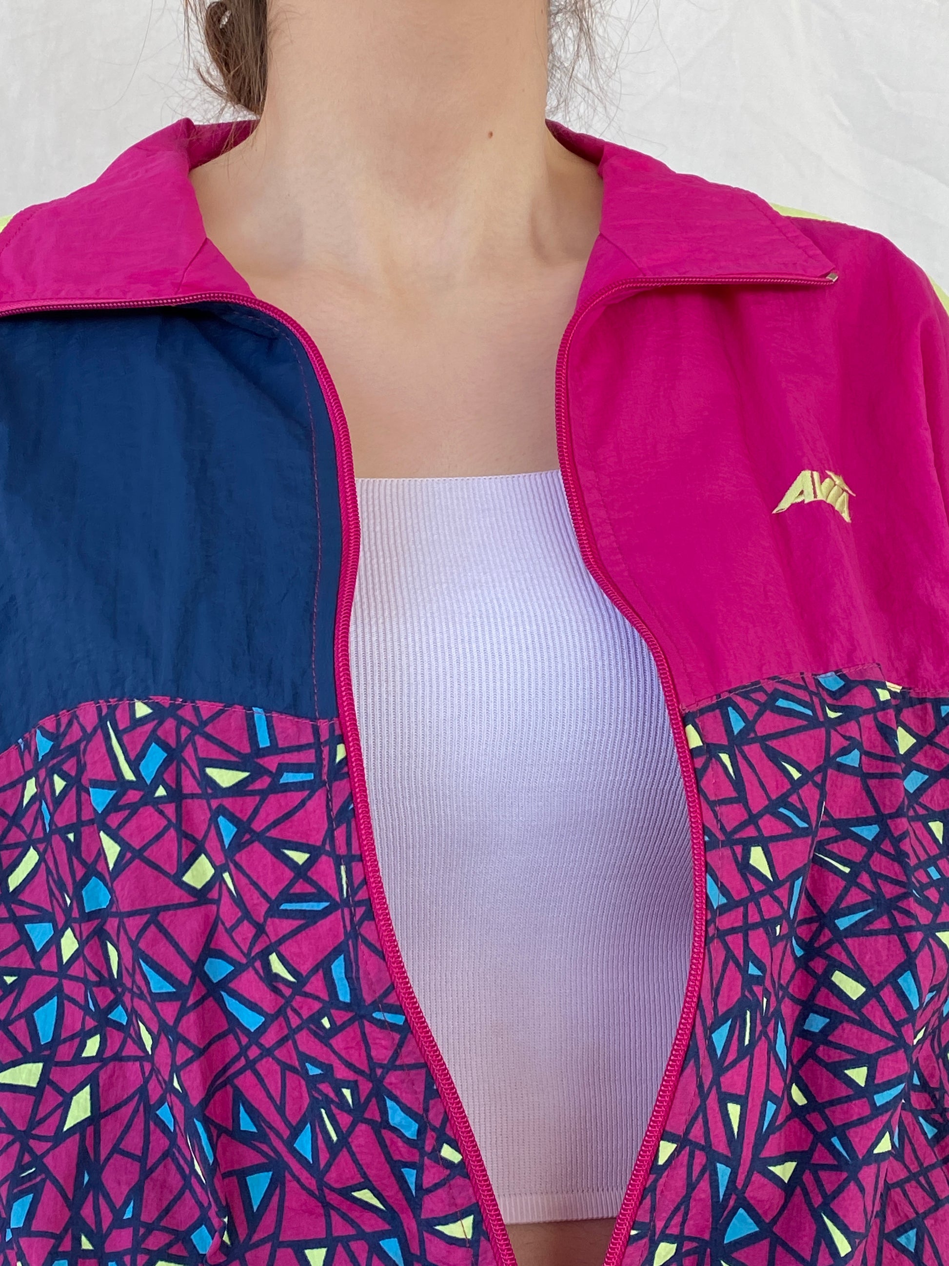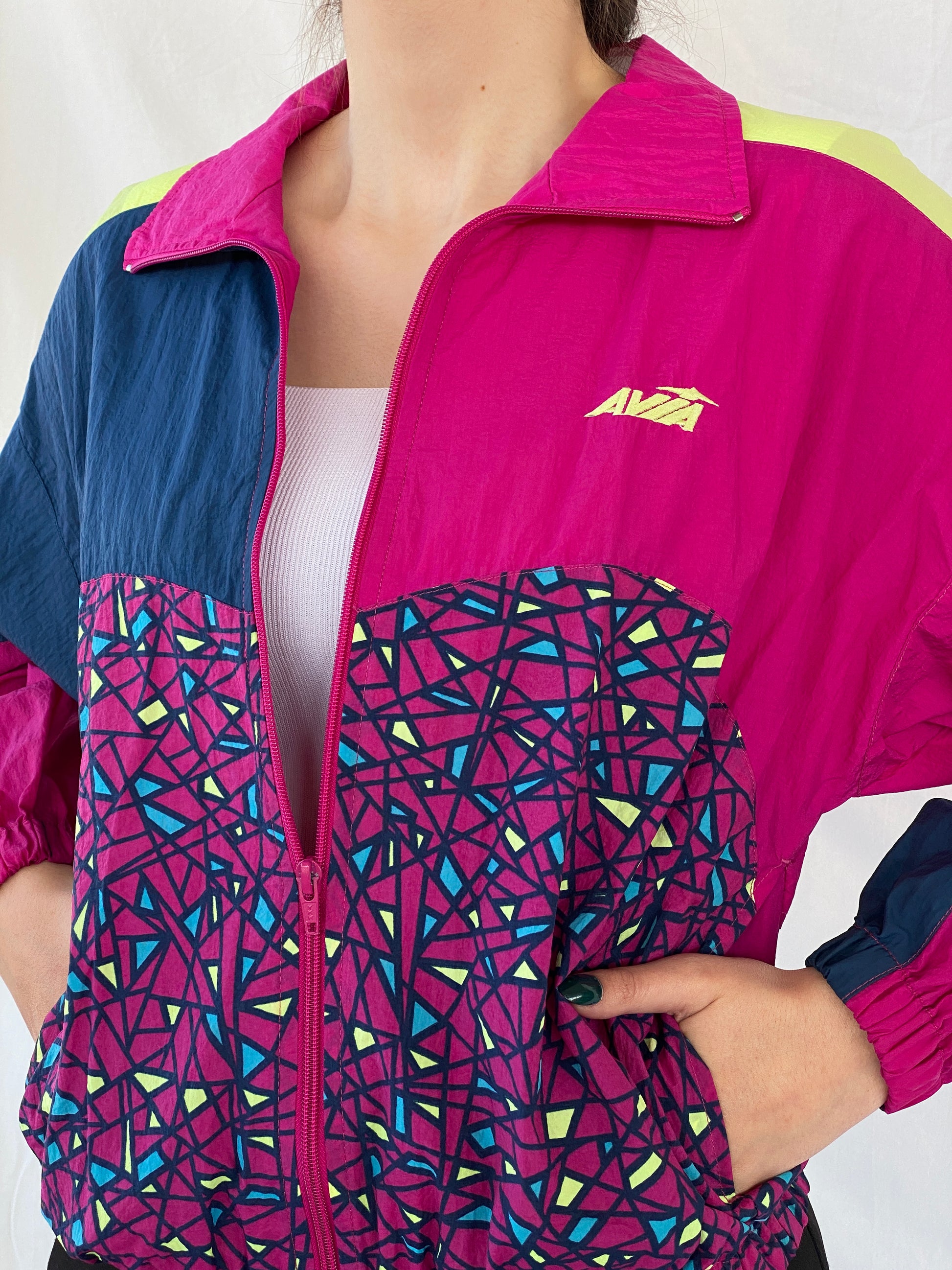 جاكيت رياضي نسائي من Avia بتصميم هندسي باللون الوردي والأصفر - مقاس صغير