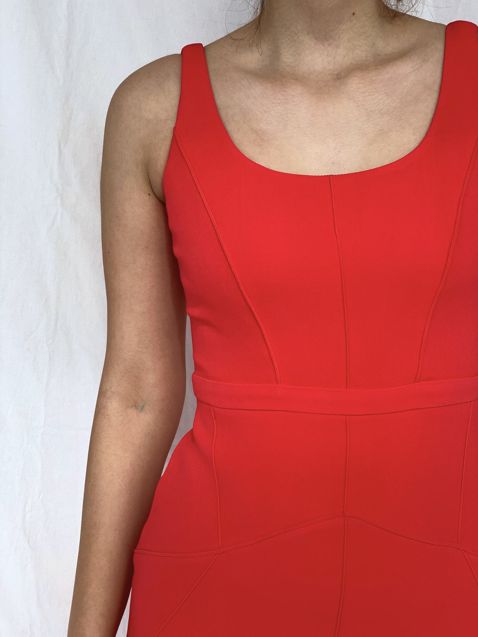 فستان إليزابيتا فرانكي الأحمر الجميل متوسط الطول بدون أكمام - مقاس M
