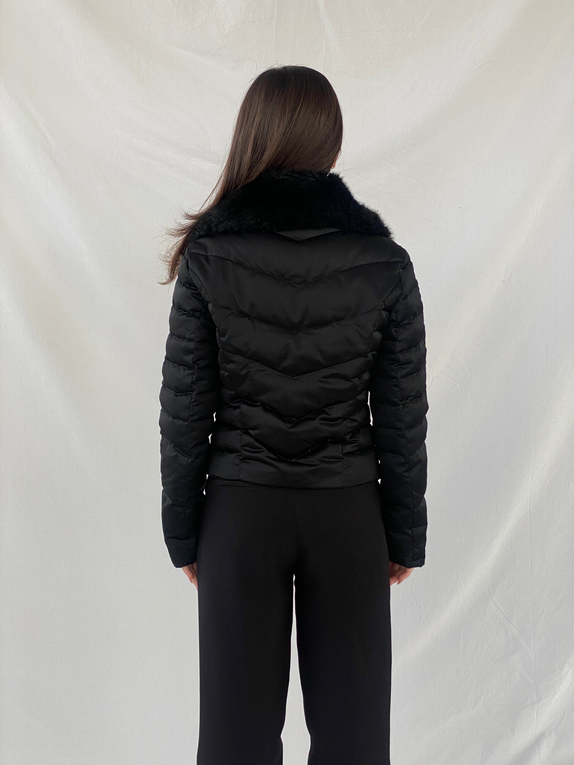 جاكيت منفوخ من بيبي باللون الأسود بياقة من الفرو الصناعي - مقاس متوسط