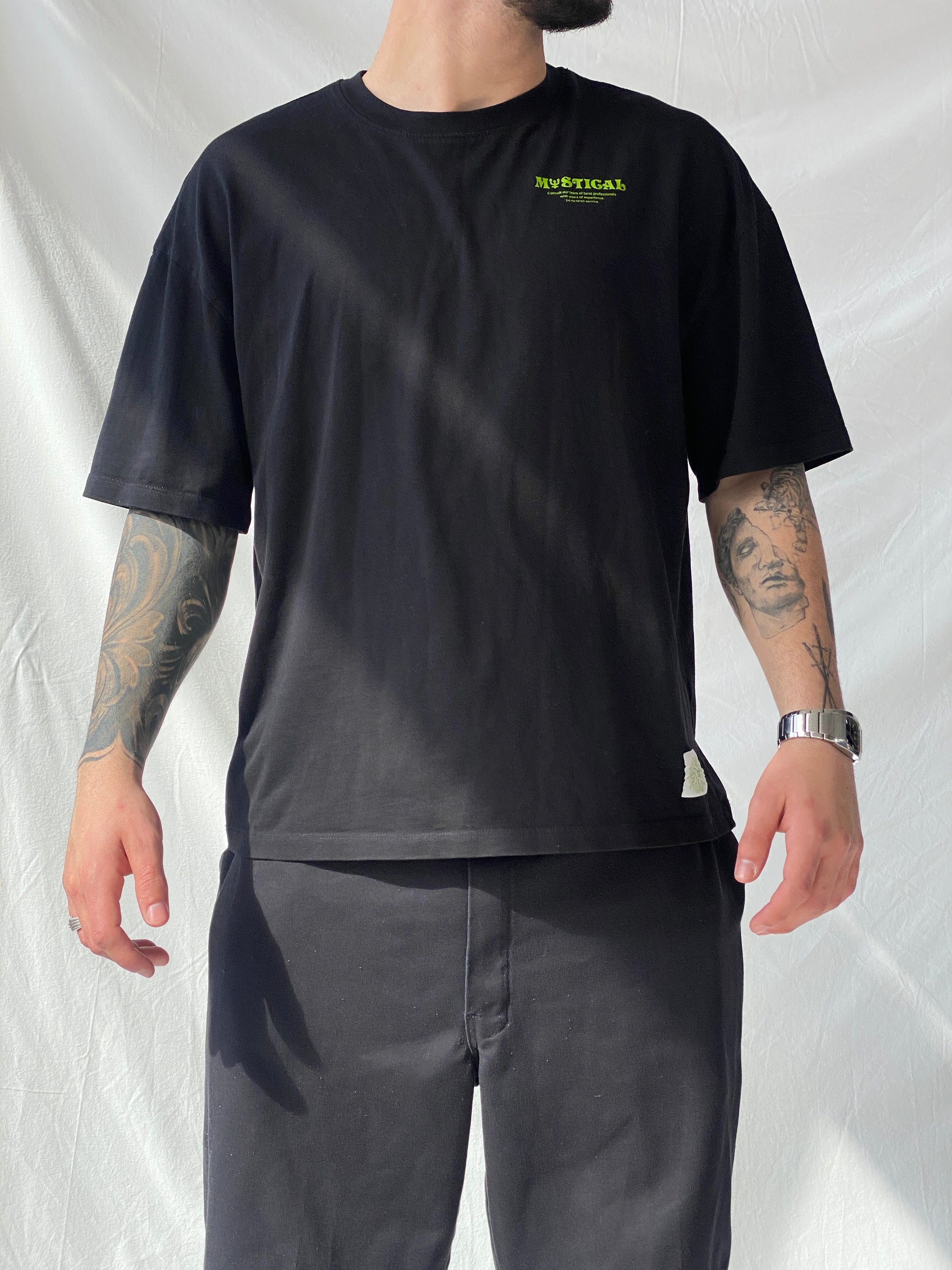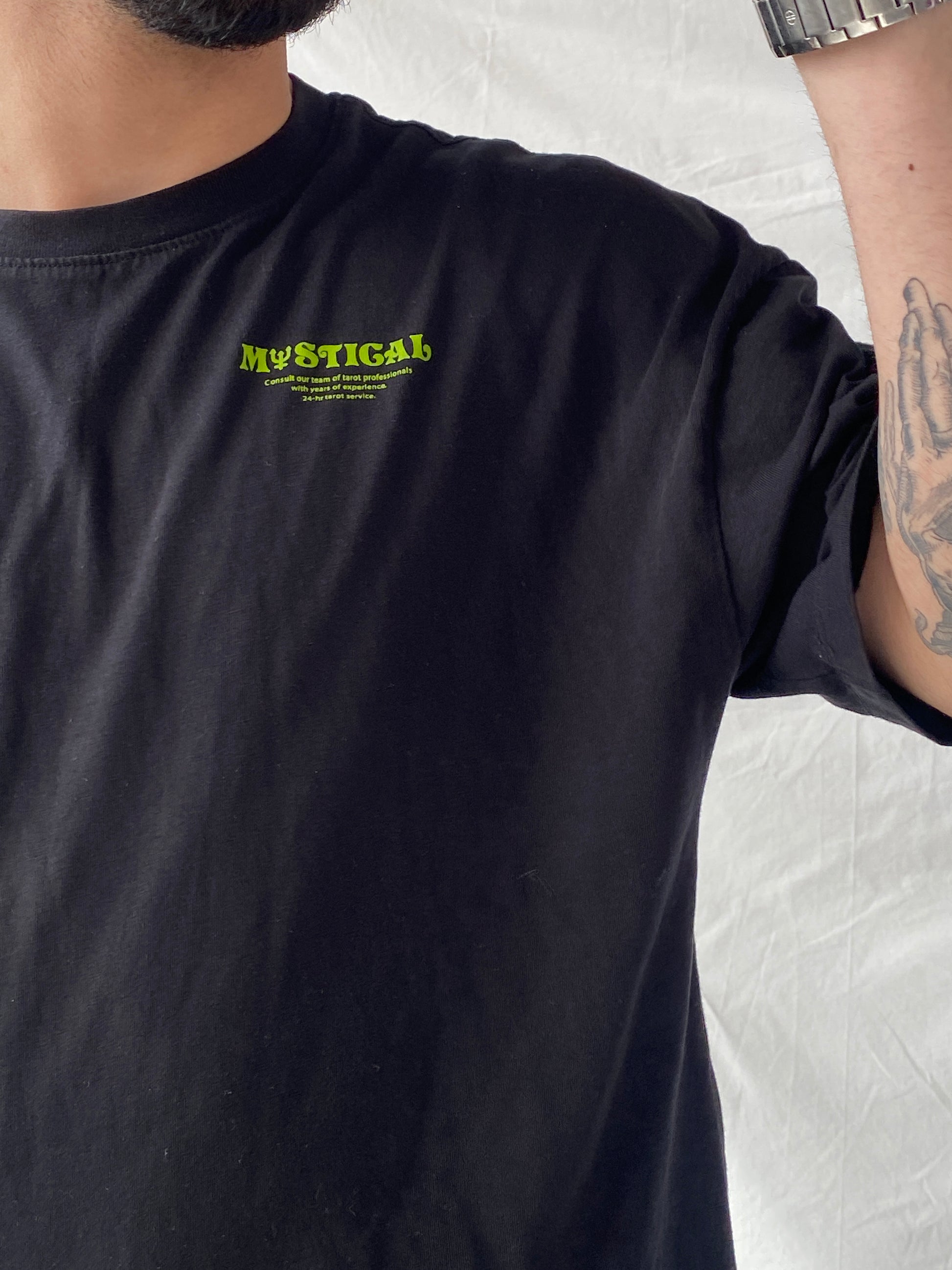تي شيرت رجالي أسود مطبوع عليه رسومات غامضة من بيرشكا - مقاس متوسط
