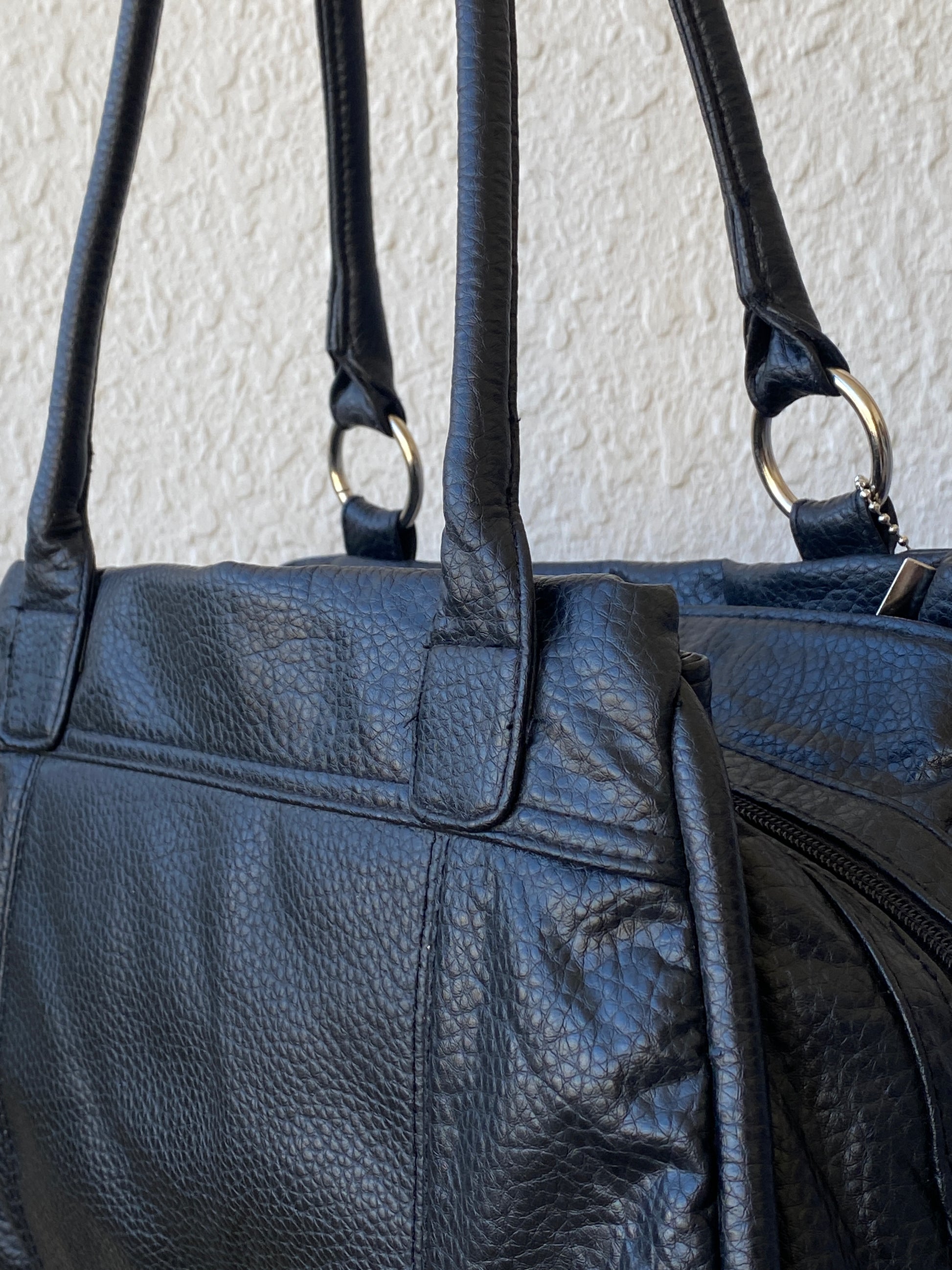 حقيبة كتف من الجلد الطبيعي باللون الأسود - حقيبة واسعة للاستخدام اليومي مع جيوب متعددة