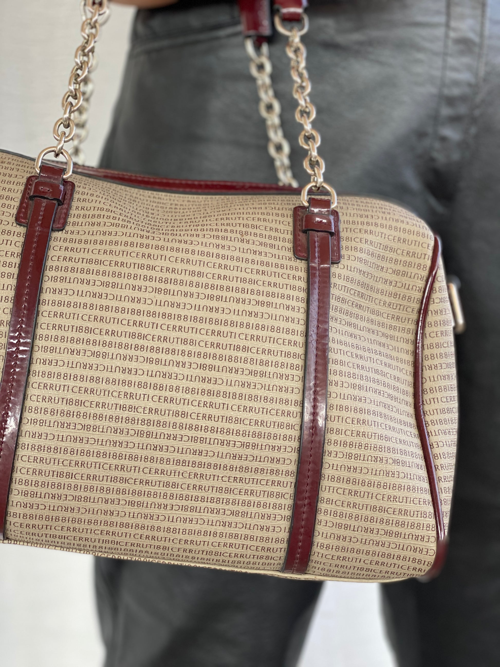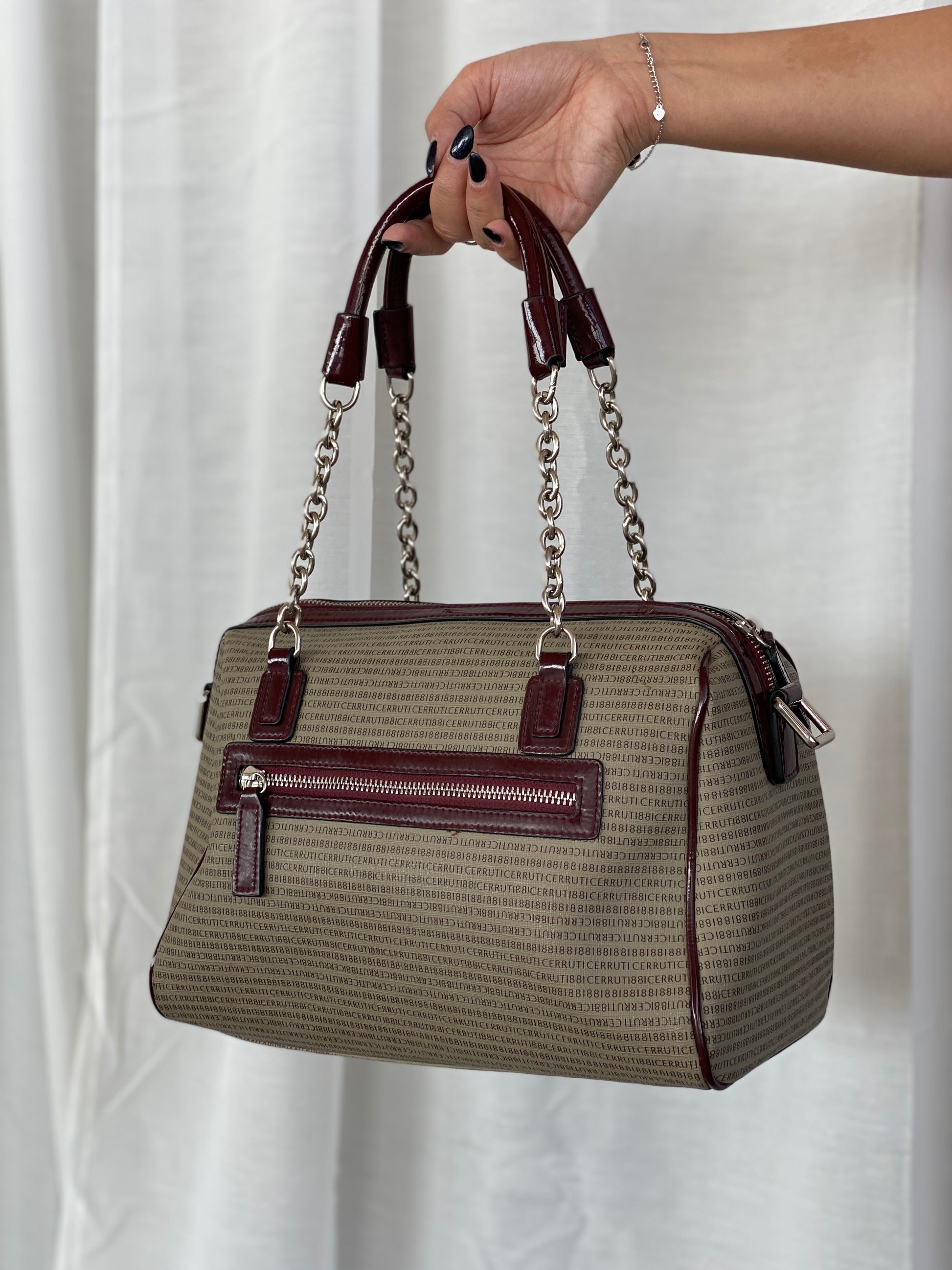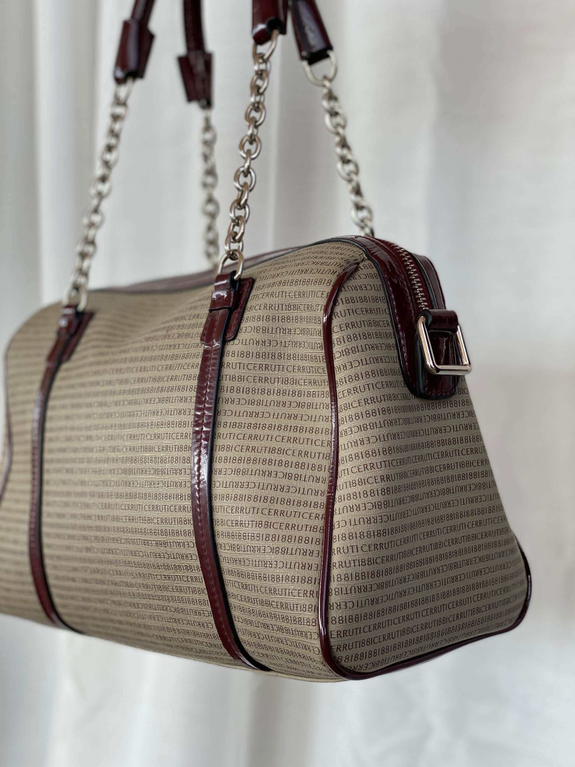 حقيبة بوسطن من قماش شيروتي 1881 سيجنتشر، مصنوعة من قماش مطلي وجلد بورجوندي لامع