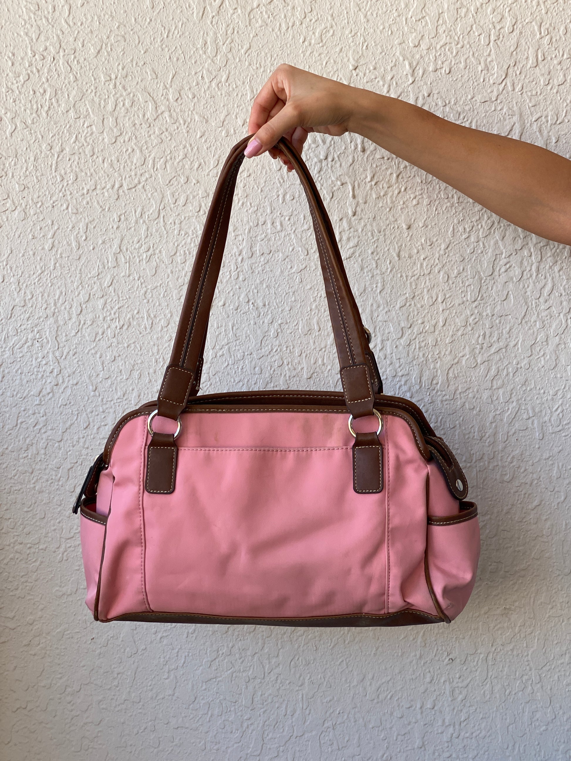 استمتعي بالأناقة والعملية مع حقيبة الكتف الجلدية الجميلة "تشابس" الوردية المصنوعة من النايلون والبني. مصنوعة من مواد عالية الجودة، تتميز هذه الحقيبة بجمالها ومتانتها. تألقي بألوانها الزاهية وتصميمها العملي.