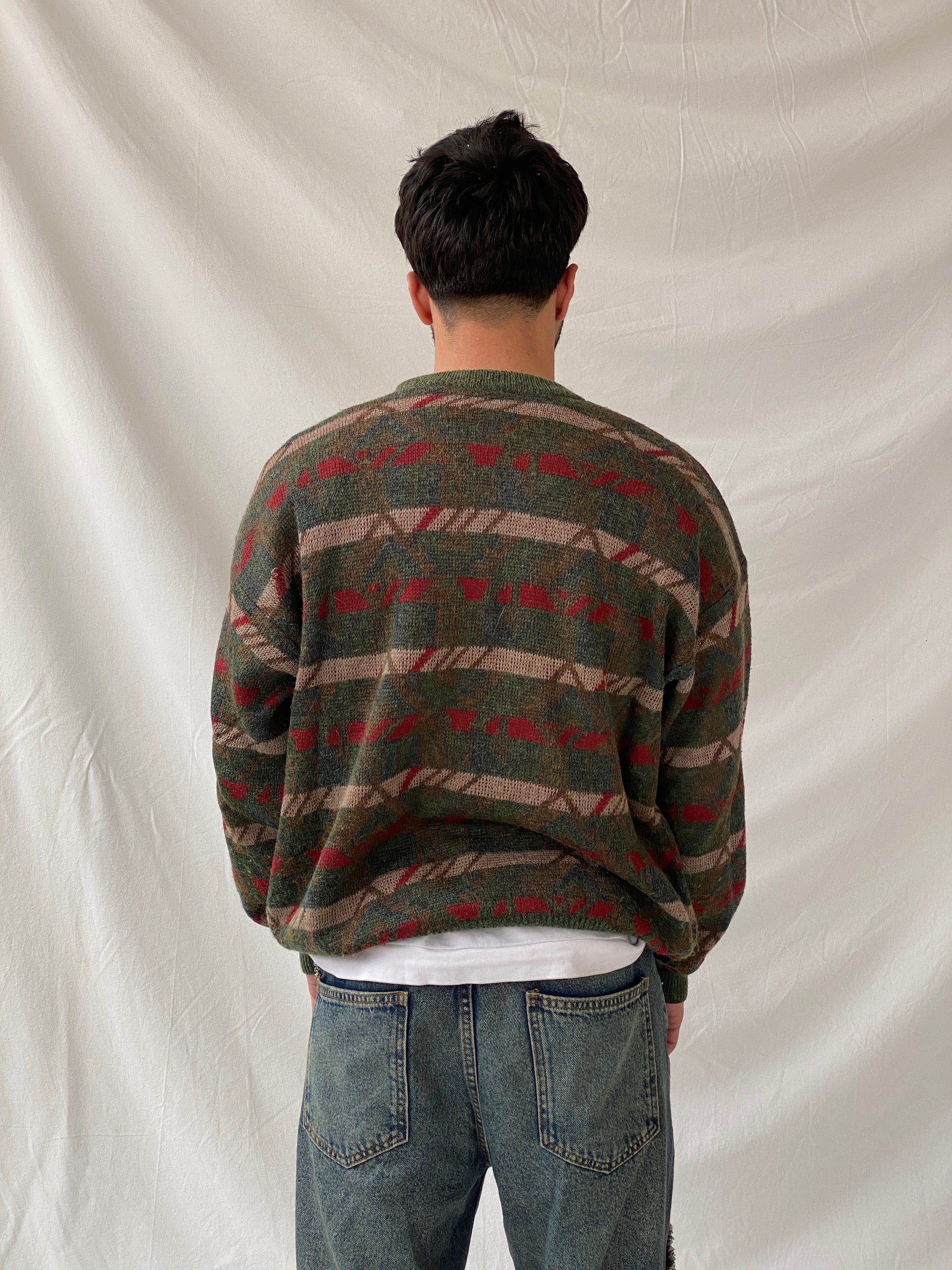 سترة رجالية مخططة باللون الأخضر من تصميم فينتاج تشارلي ماش، محبوكة، برقبة دائرية - مقاس كبير