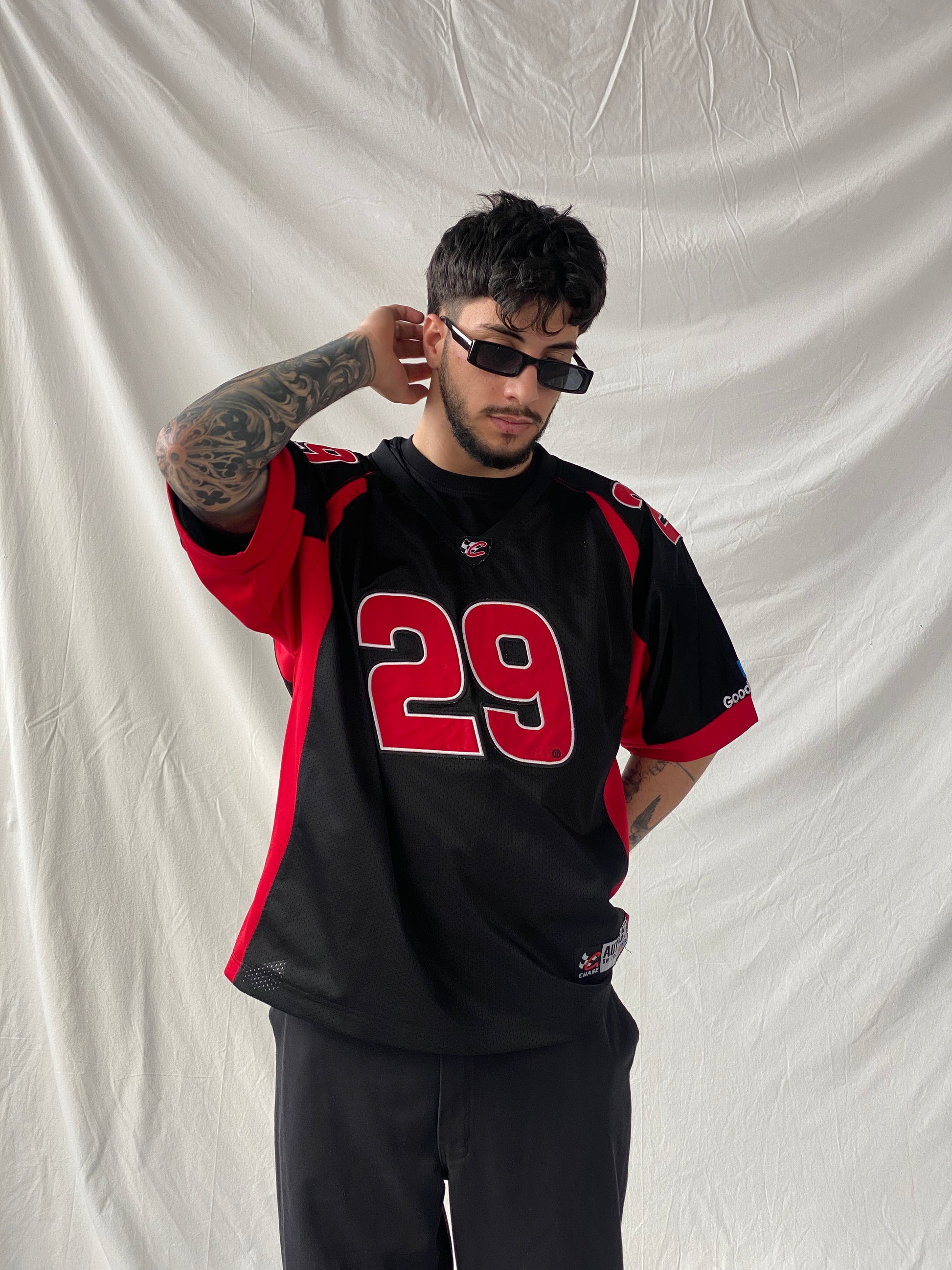 ارتقِ بأسلوبك في الشارع مع قميص سباق كيفن هارفيك ناسكار #29 الأسود بأكمام قصيرة من فينتيج تشيس أوثينتكس. مصنوع من قماش شبكي، ويتناسب تمامًا مع شورت فضفاض وحذاء رياضي. أظهر شغفك بالسباقات مع هذا التصميم الكلاسيكي.