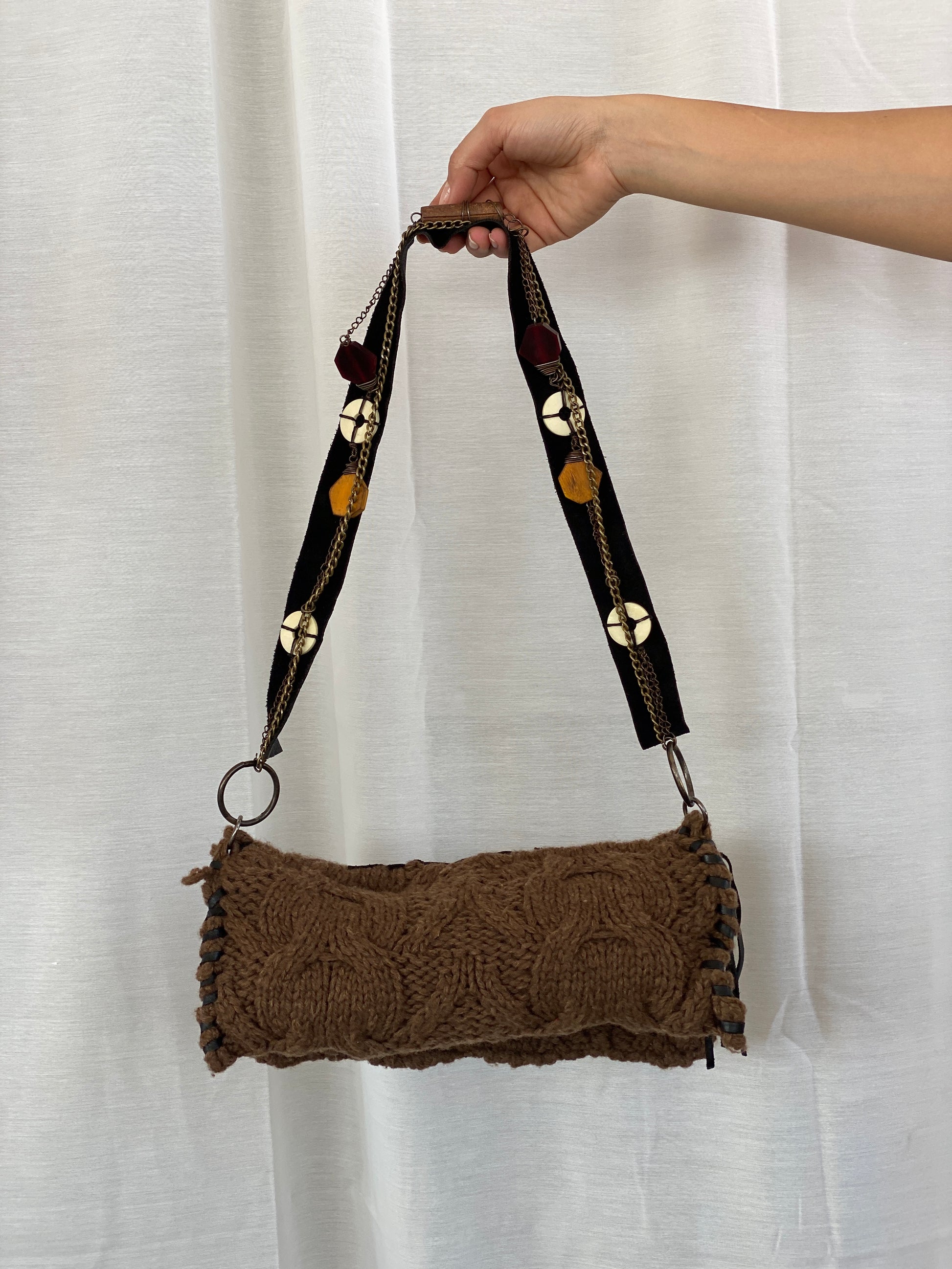 حقيبة كتف جلدية وكروشيه بنية اللون بتصميم بلجيكي من إنتاج شركة Y2K