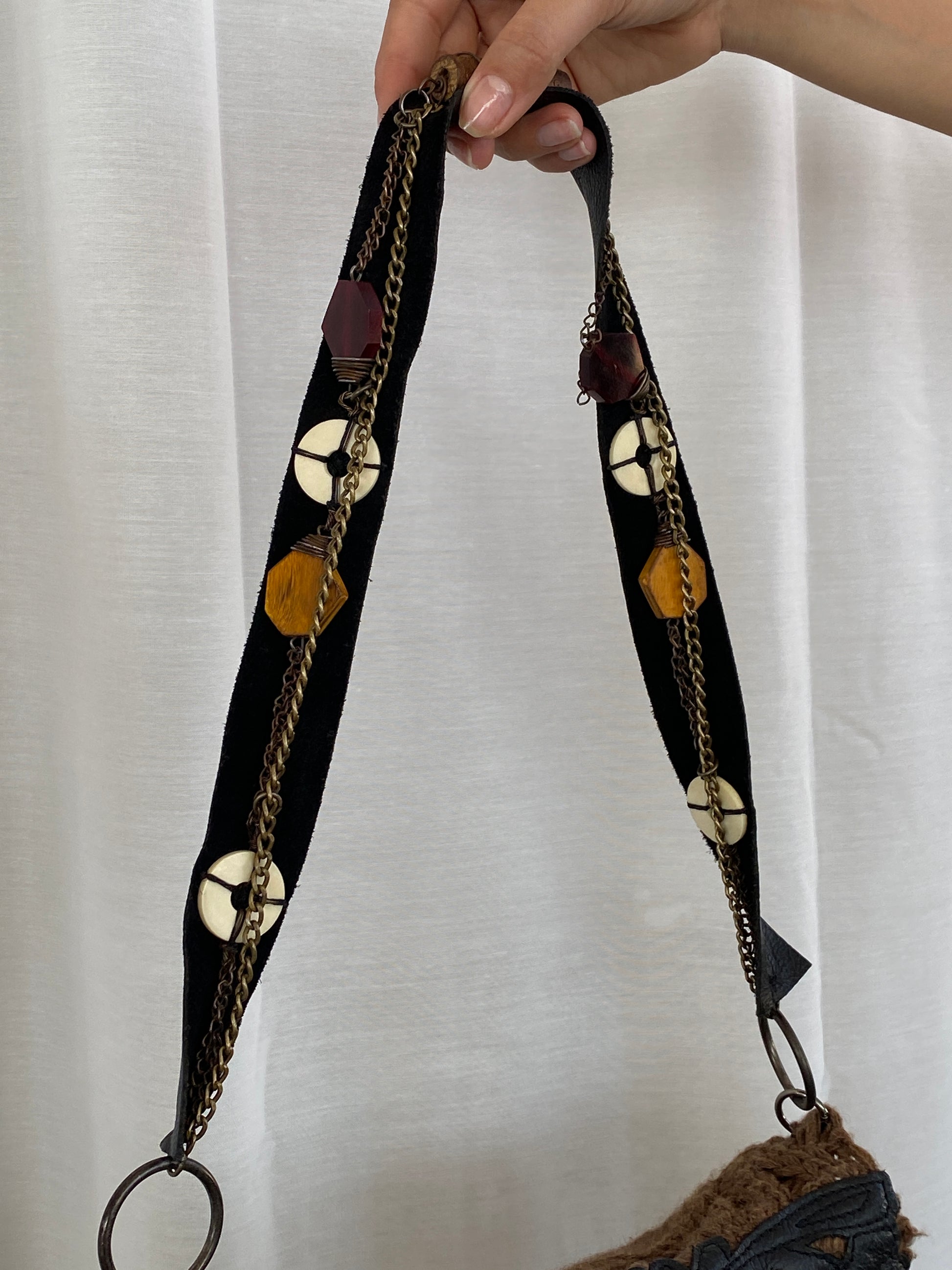 حقيبة كتف Y2K الصينية البنية البلجيكية المصنوعة من الكروشيه والجلد، تُضفي لمسةً من الأناقة على أي إطلالة. أحزمة الجلد، المزينة بتفاصيل خرزية وسلاسل دقيقة، تُضفي لمسةً مميزةً على هذه الحقيبة.