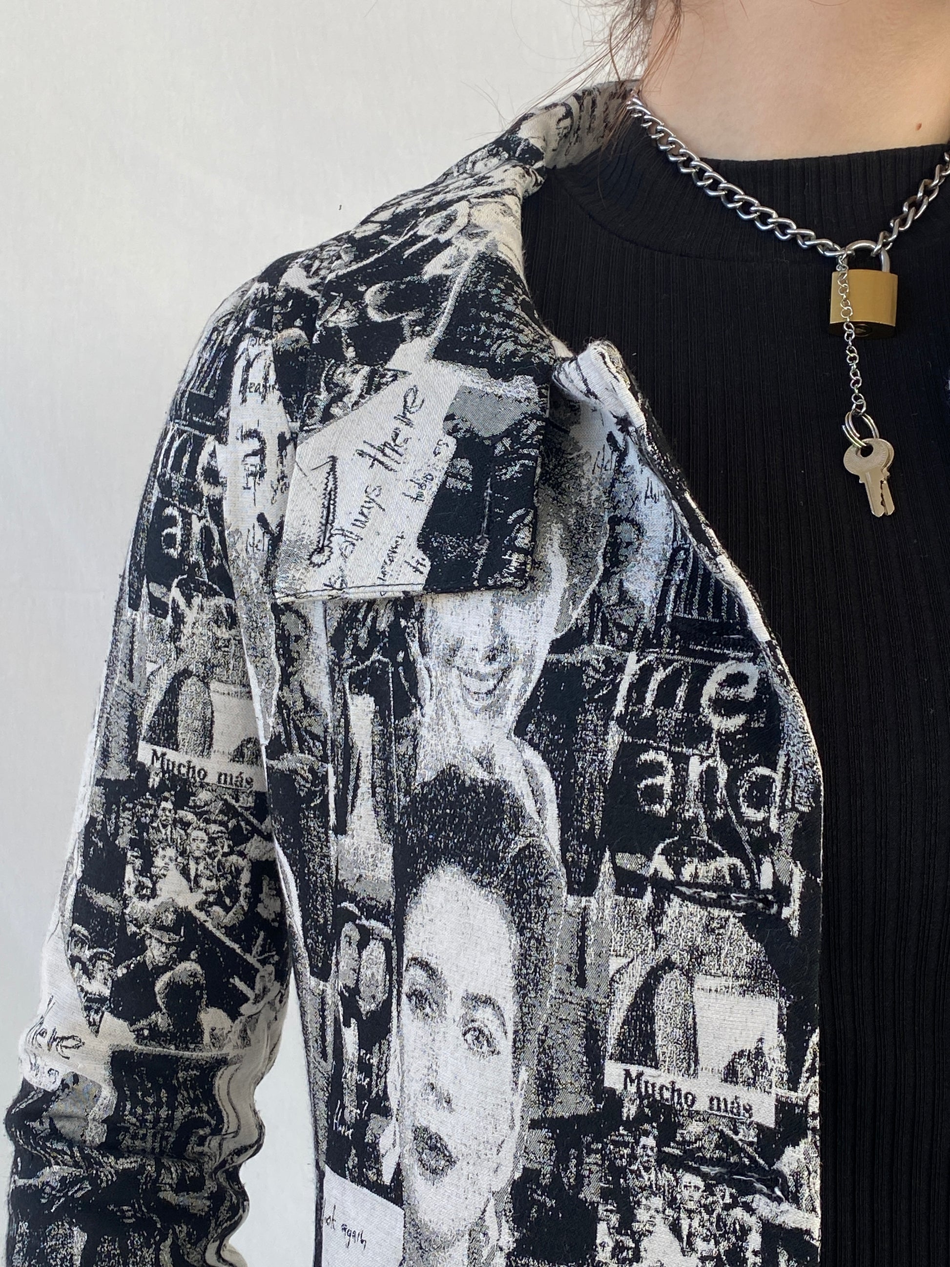 معطف ترنش نسائي أسود وأبيض من Desigual Graphic - مقاس M