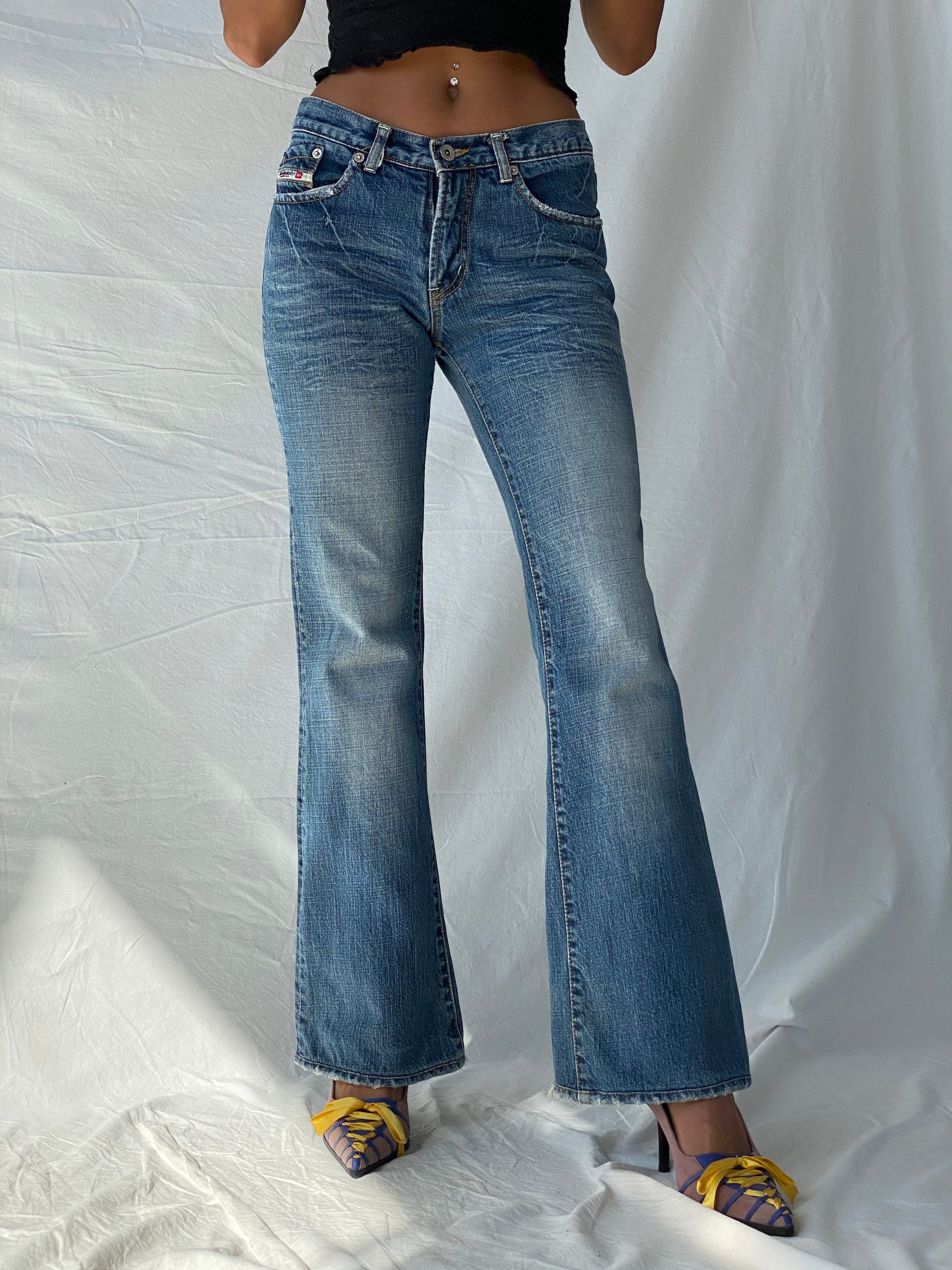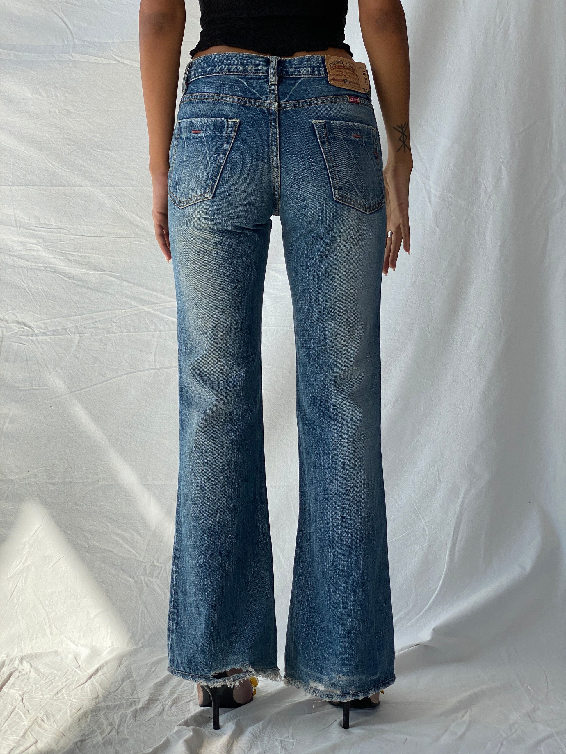 بنطلون جينز نسائي واسع من Diesel Industry Denim Division متوسط الارتفاع ومغسول - 34 يورو