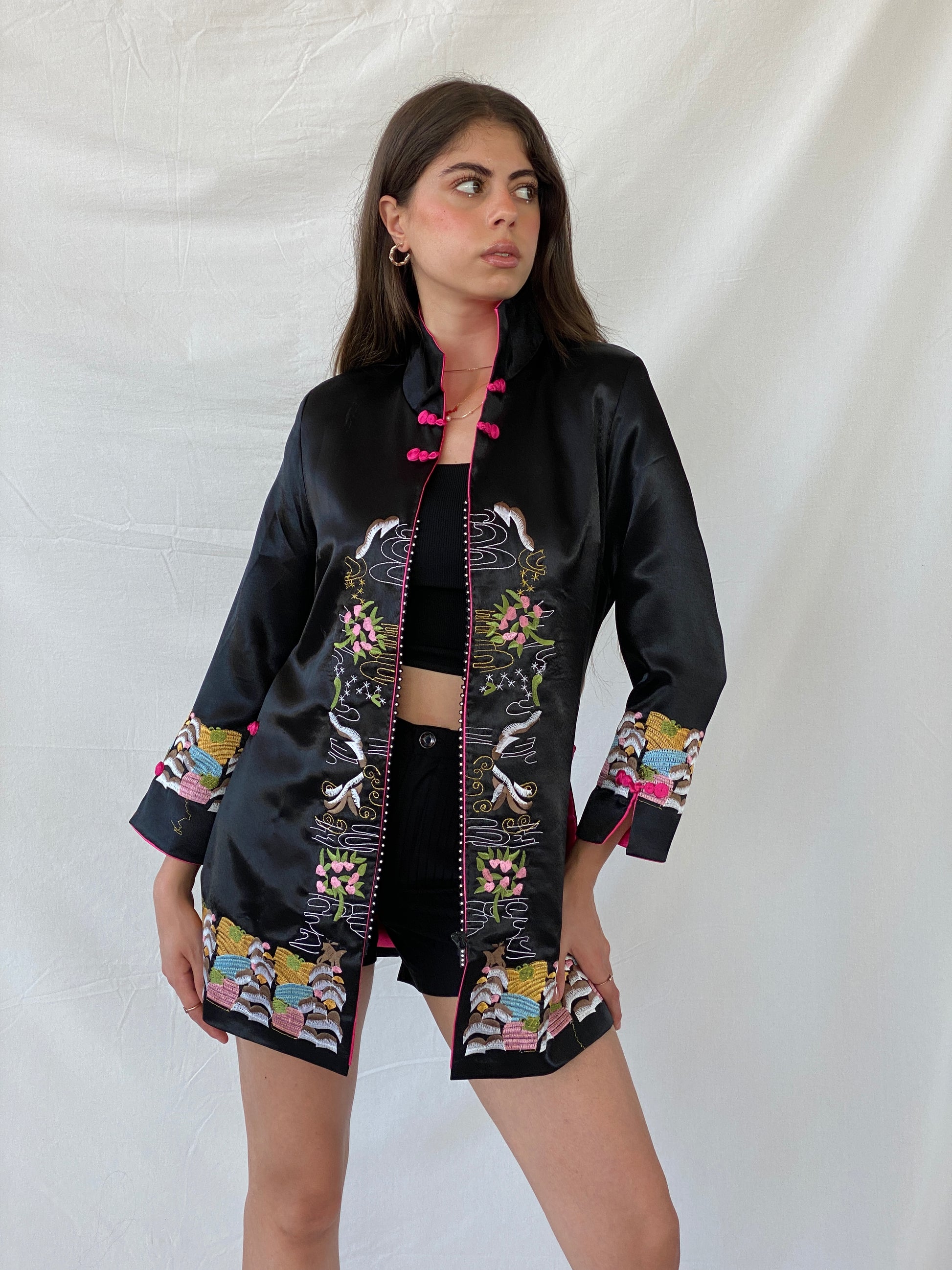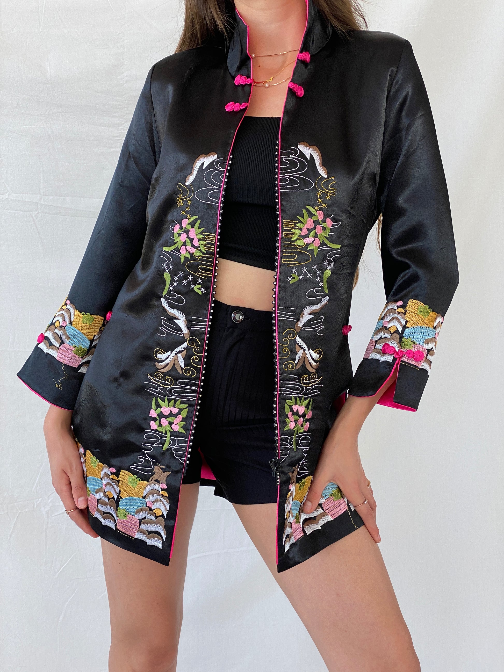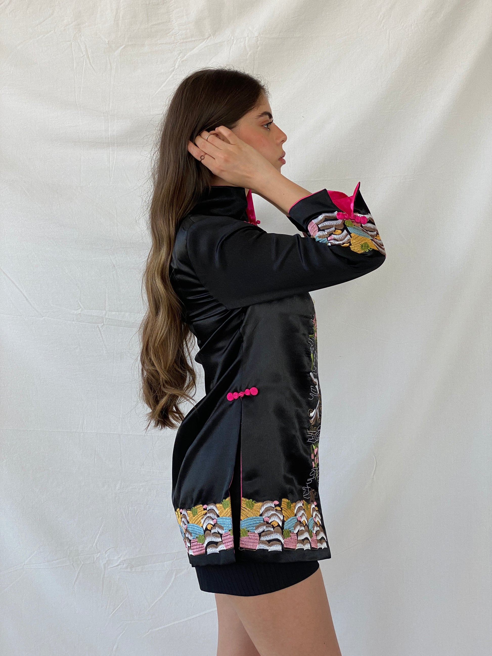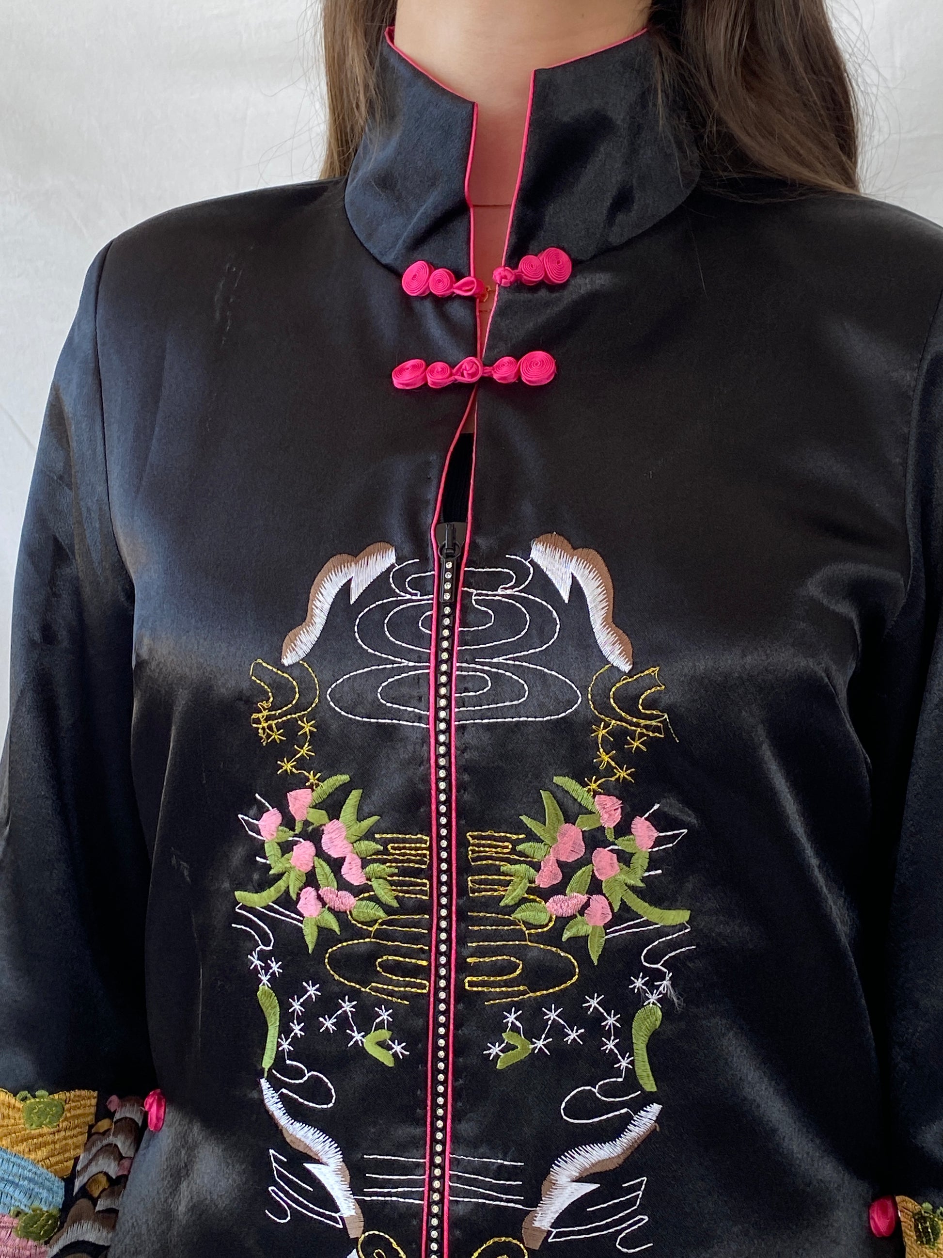 جاكيت معطف مطرز فني آسيوي من حرير التنين، هانغتشو، الصين - مقاس كبير