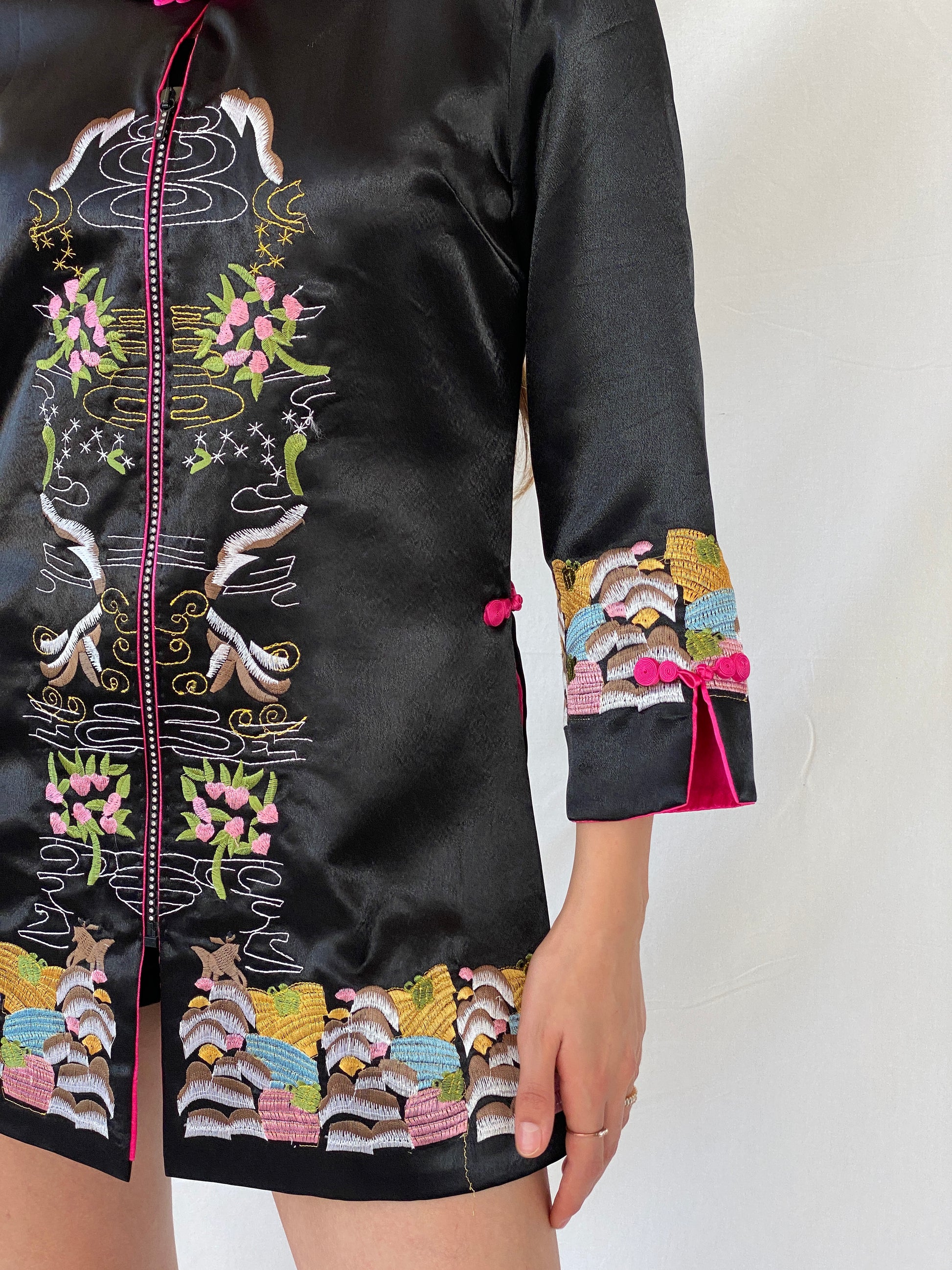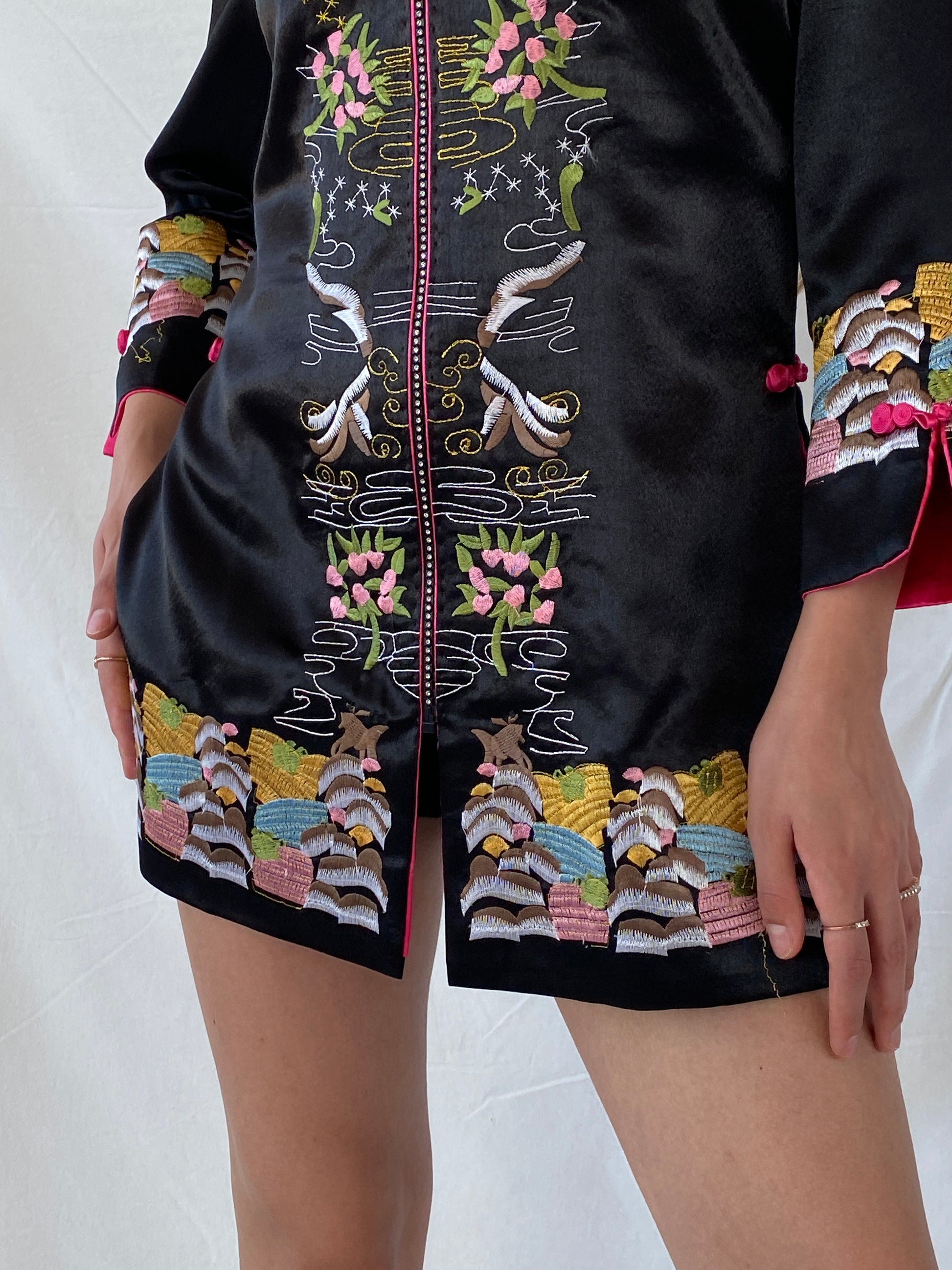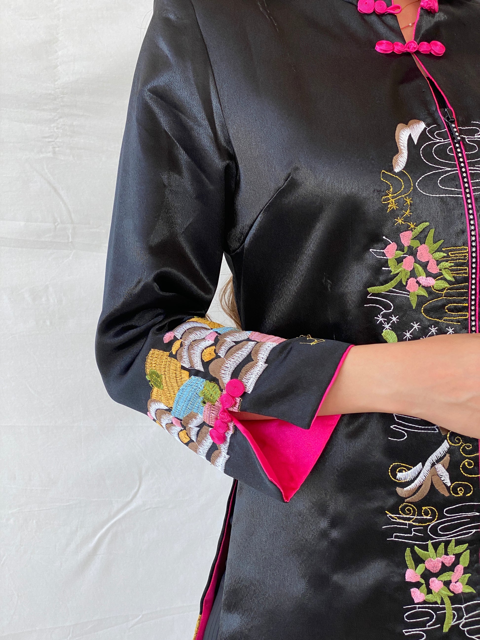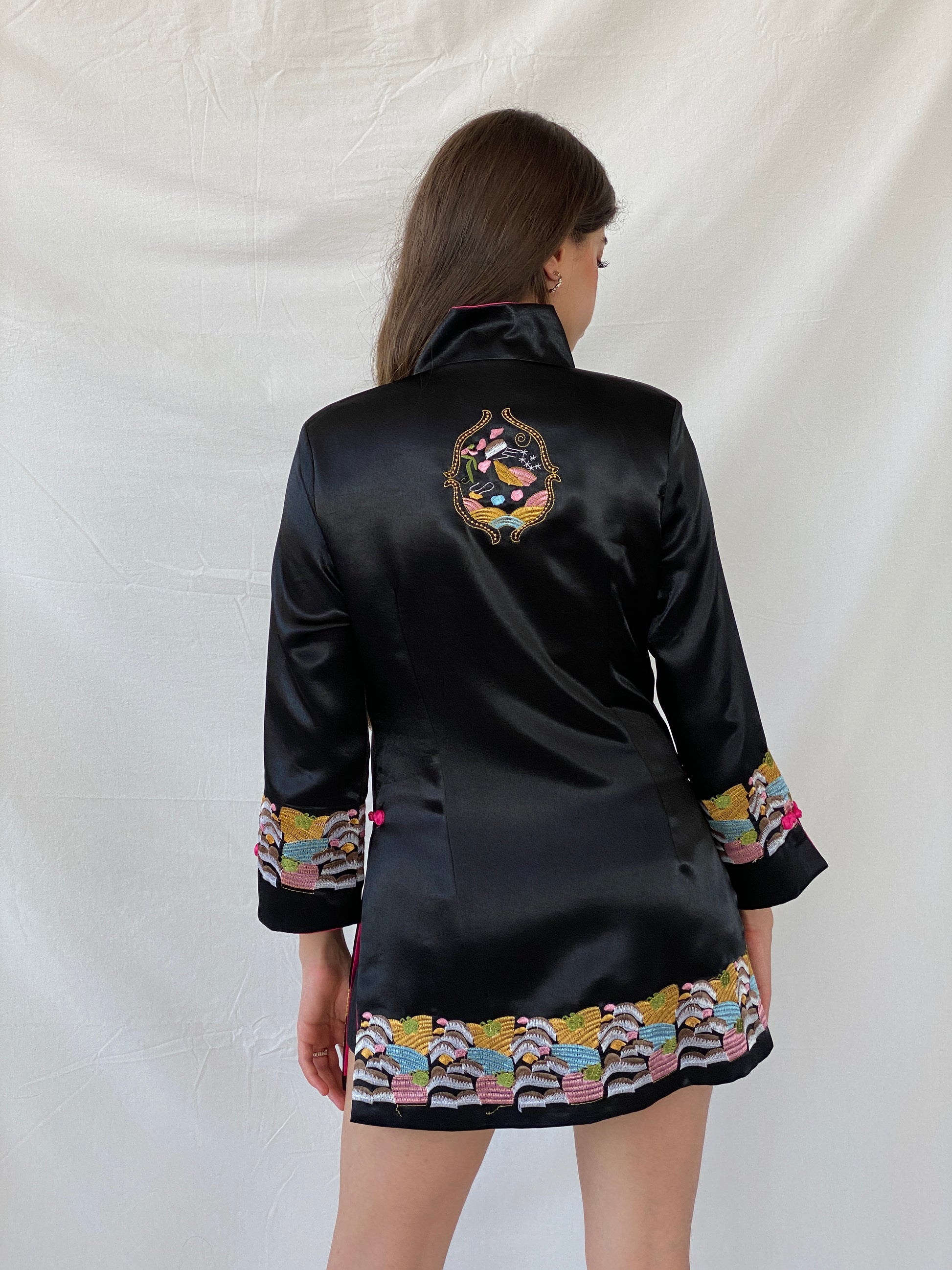 جاكيت معطف مطرز فني آسيوي من حرير التنين، هانغتشو، الصين - مقاس كبير