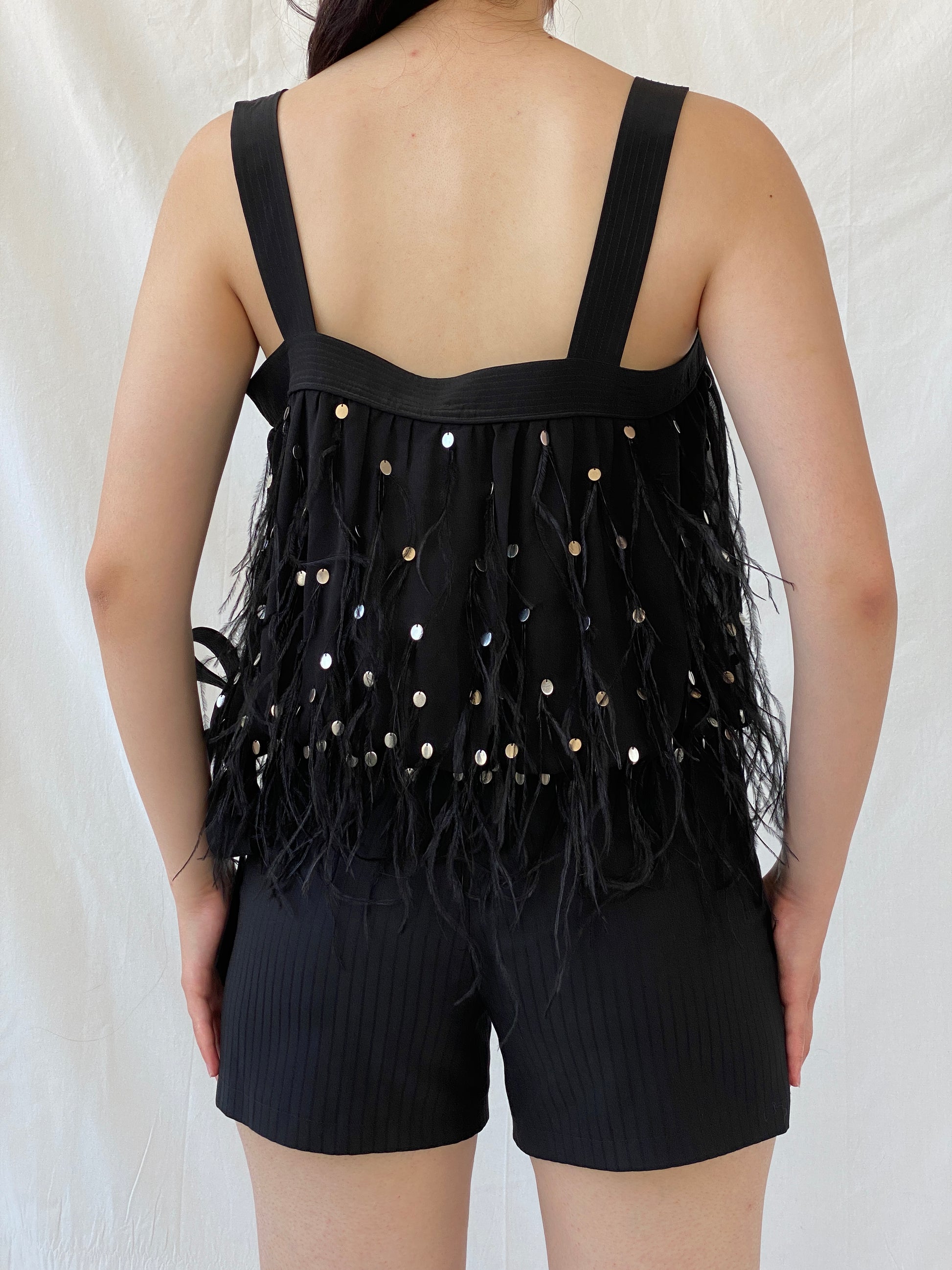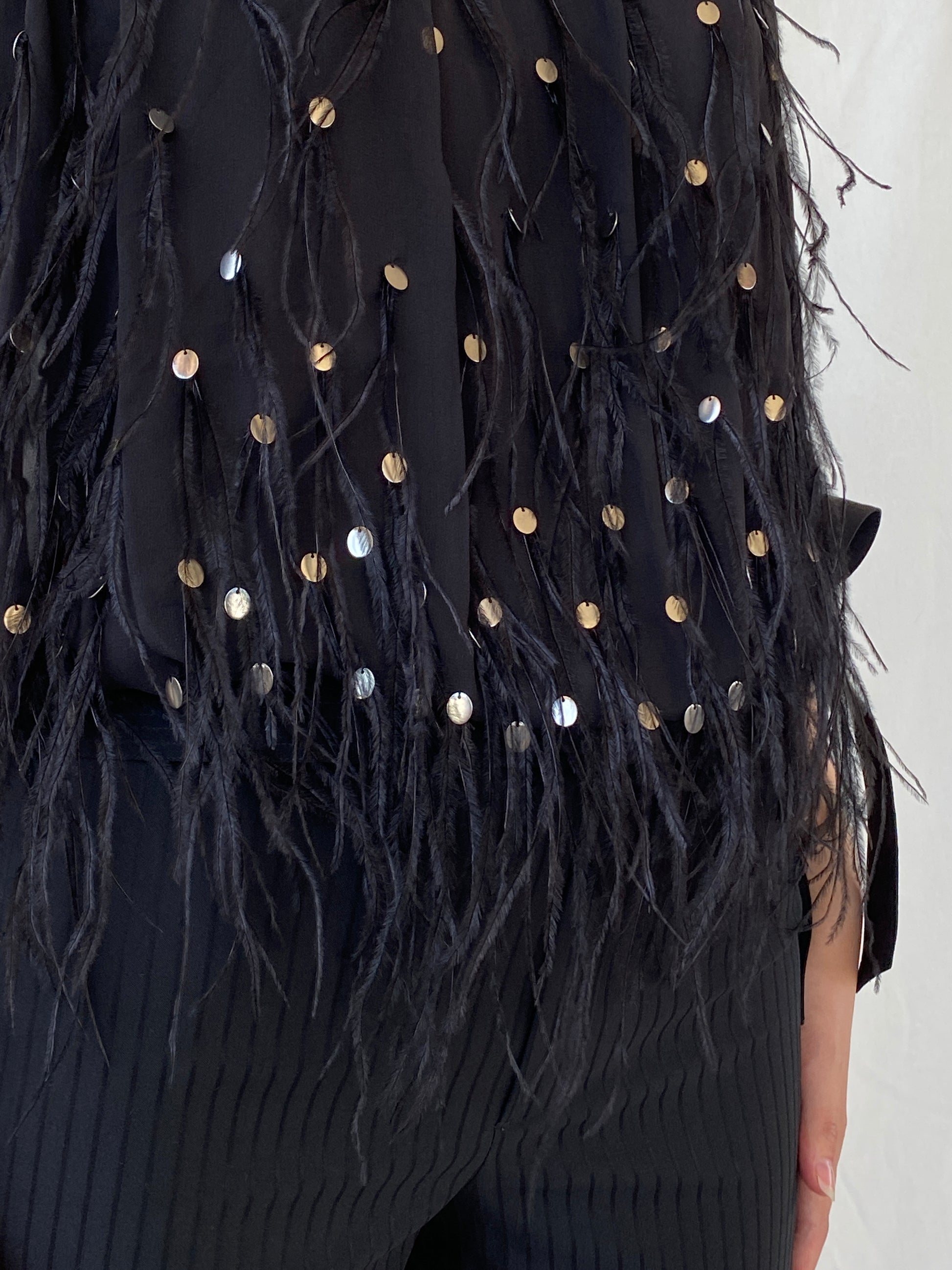 NWT Vintage FÉRAUD Paris Black Silk Feather Sequin Top - M