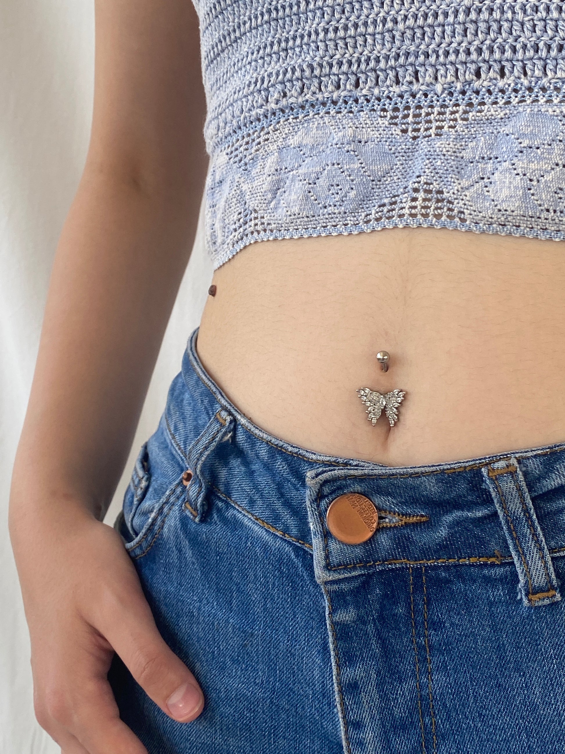نقدم لكم بلوزة Y2K Forever 21 القصيرة المحبوكة والمطرزة باللون الأزرق، بتصميم هالتر، من الكروشيه - الخيار الأمثل لنزهاتكم الصيفية اليومية. تصميمها المحبوك وتصميمها المريح يمنحكم مظهرًا أنيقًا ومريحًا.