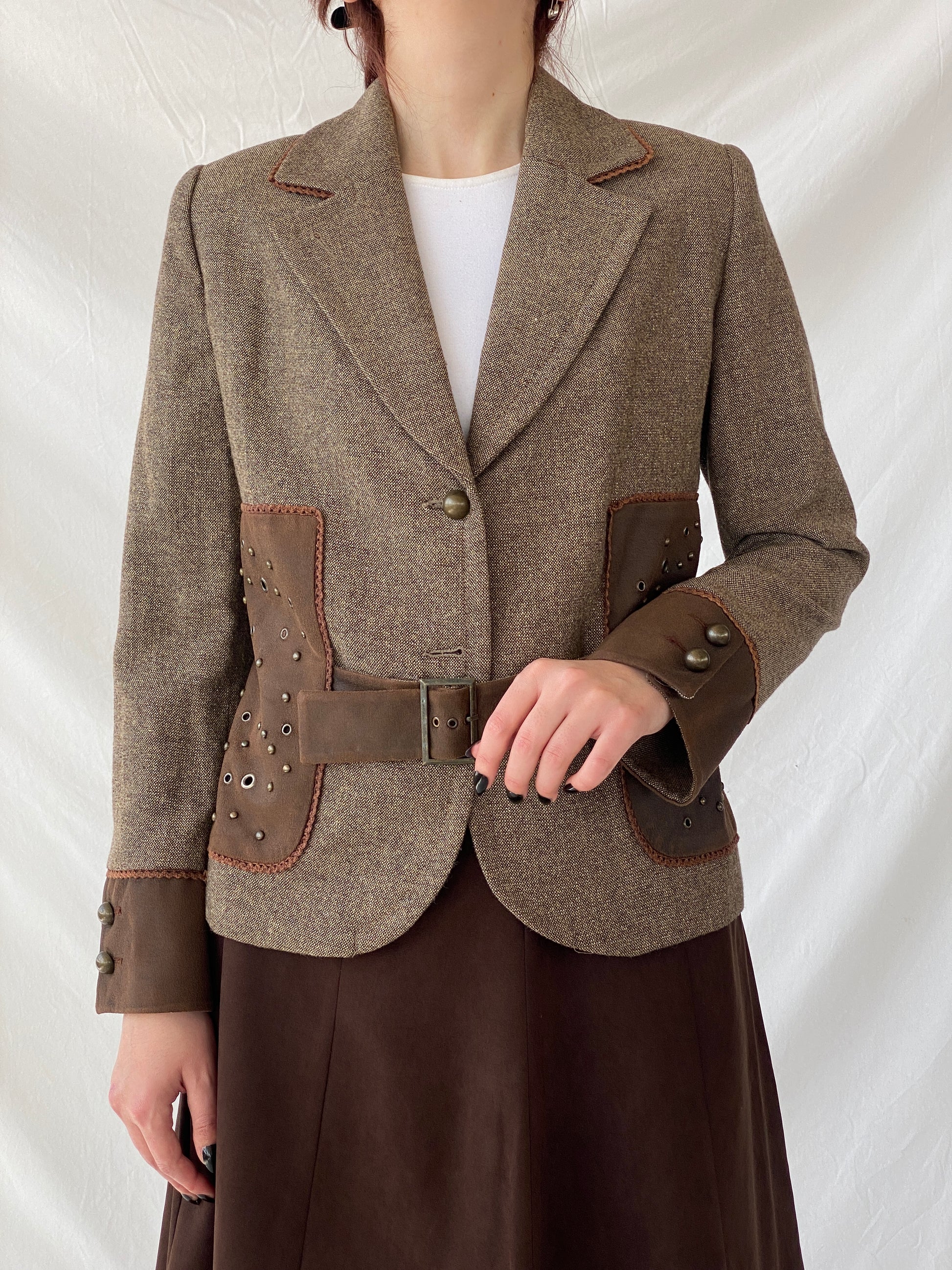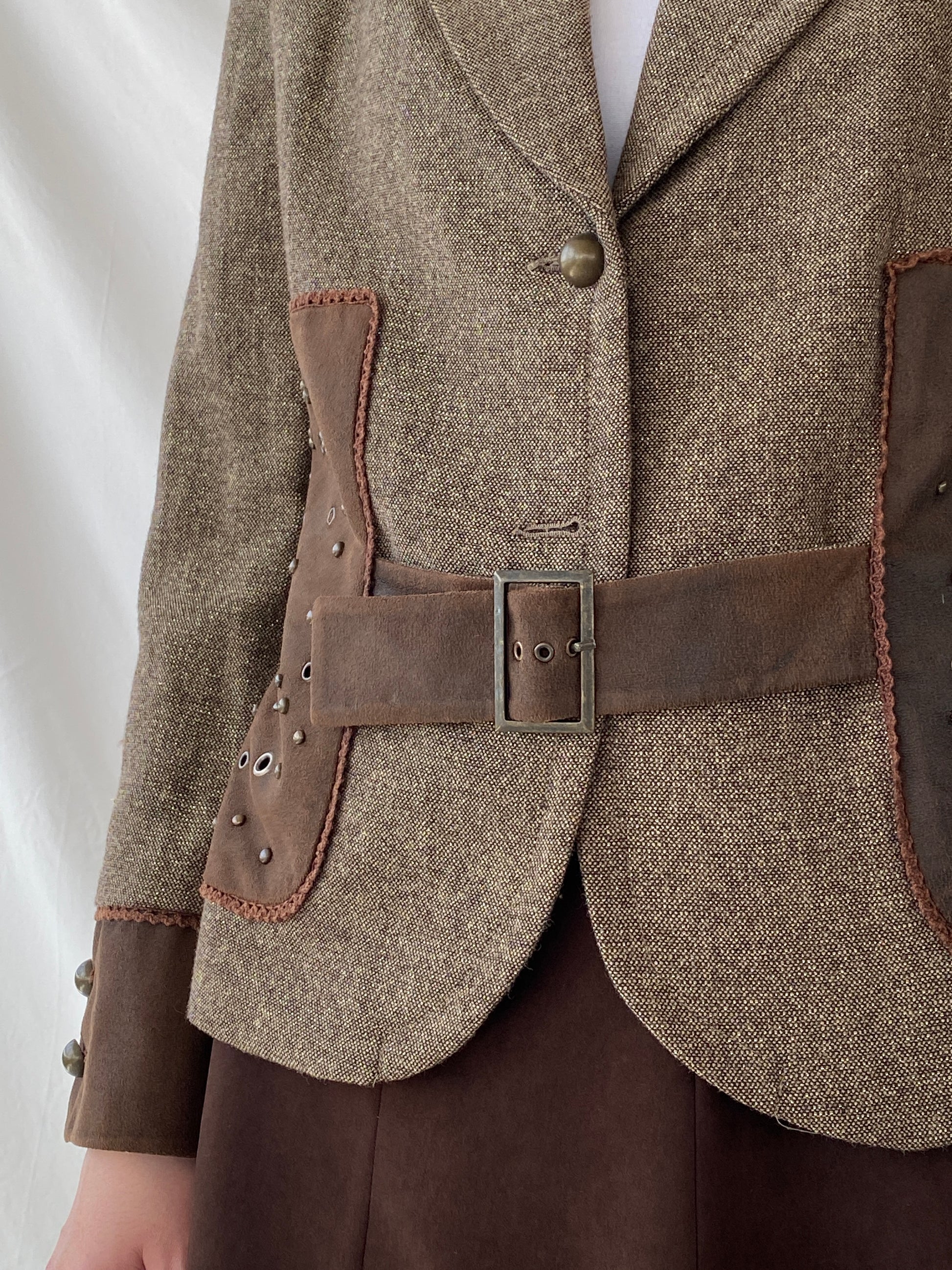 حسّني إطلالة بليزركِ مع بليزر "ستيتمنت غورلر غييم" النسائي ذو الرقع الشبيهة بالجلد المدبوغ، البني. يتميز هذا البليزر الفريد برقع مرصعة على الجانبين والأكمام، بالإضافة إلى حزام أمامي لإطلالة أنيقة وعصرية. عززي من أناقة أي إطلالة مع هذه القطعة العملية والأنيقة.