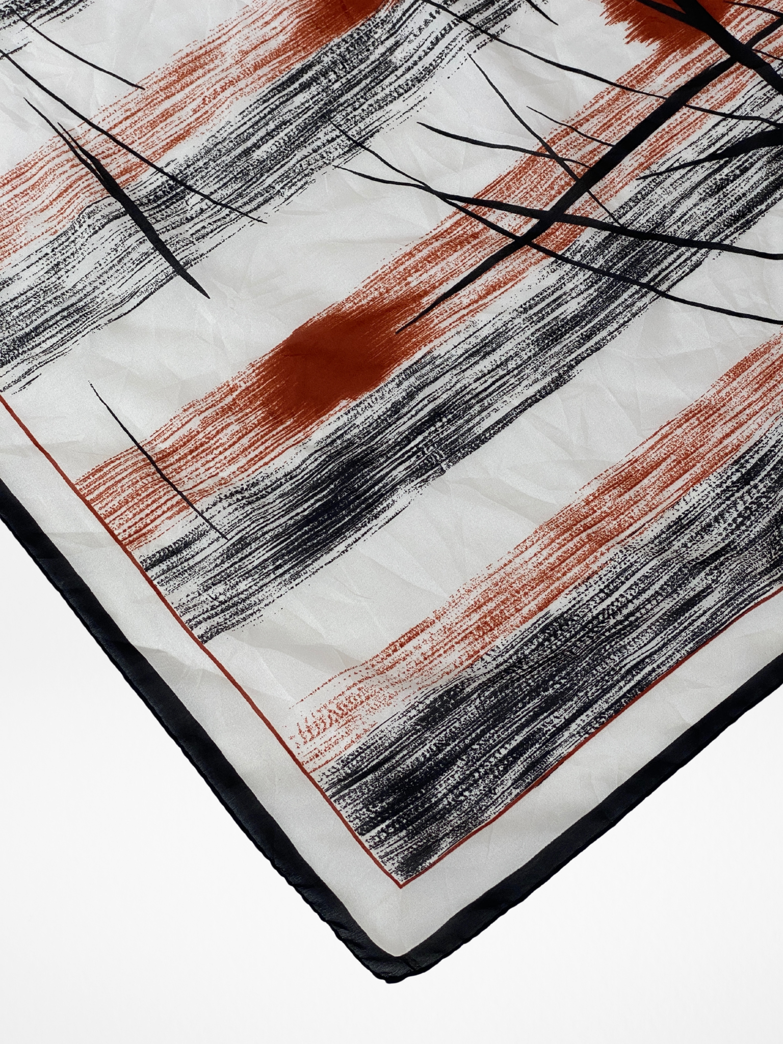 أضف لمسة أنيقة إلى أي إطلالة مع وشاحنا المربع بتصميم تجريدي من جيهاو دي فابريغ باريس. يتميز بتصميم تجريدي فريد من نوعه بخطوط أفقية، تتخللها خطوط عمودية وأشكال تجريدية بألوان الأسود والأبيض والبني المحمر. مع حافة رفيعة من الأسود والبني المحمر، هذا الوشاح خفيف الوزن مثالي لأي مناسبة.