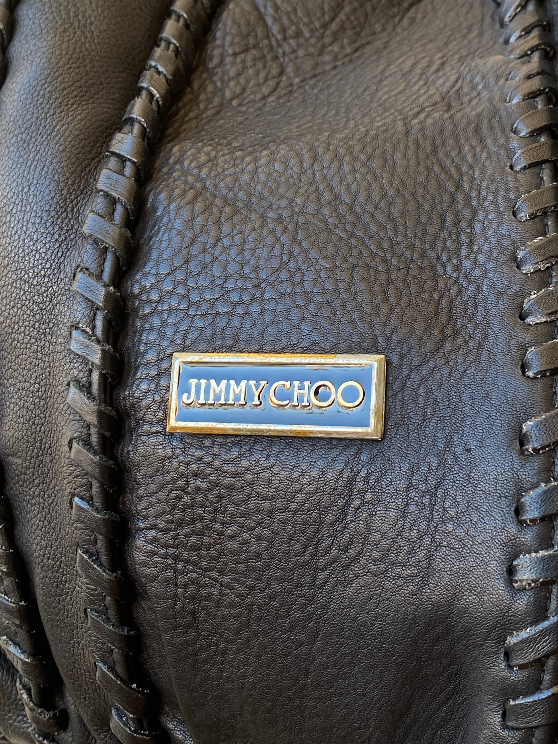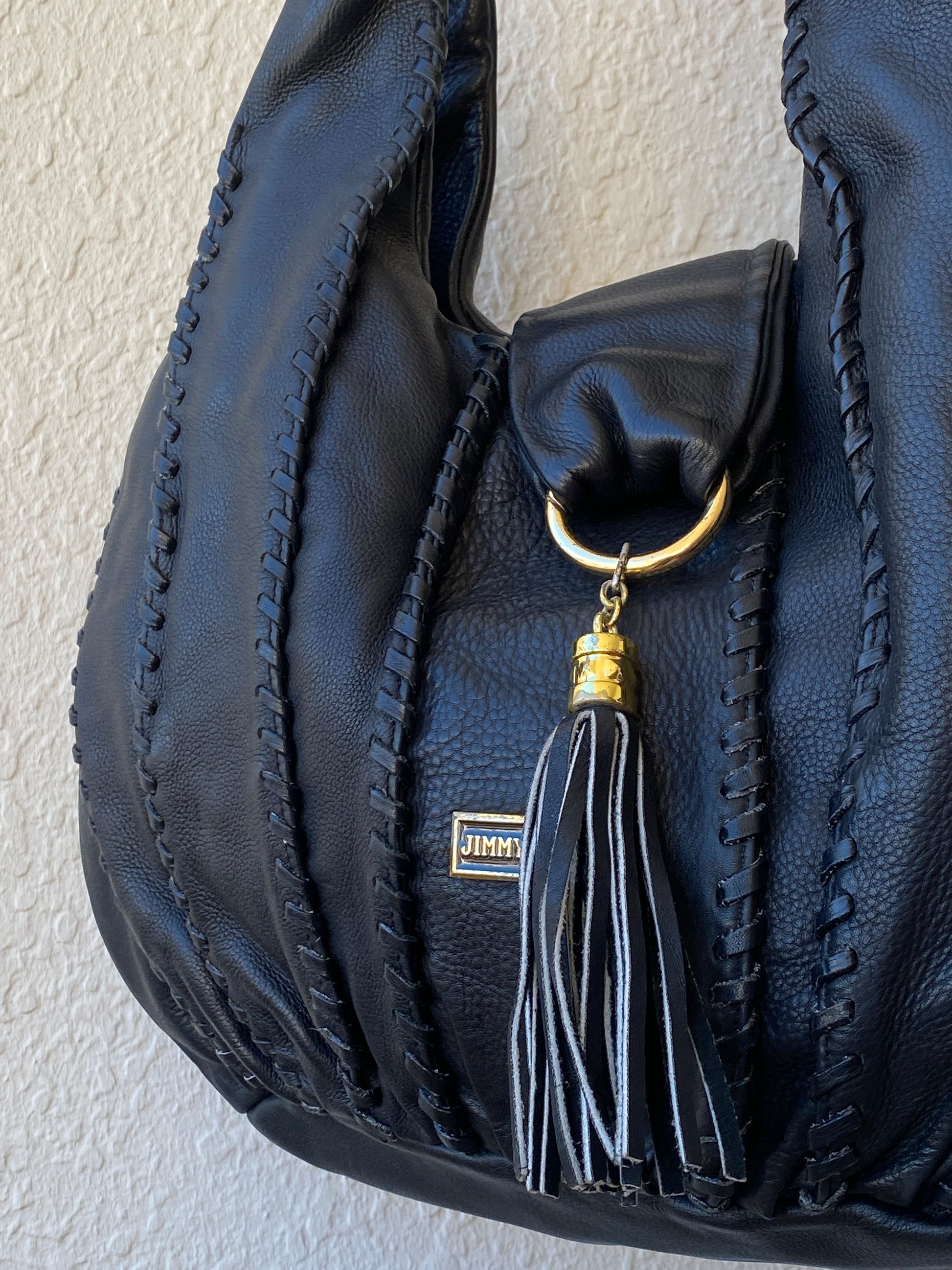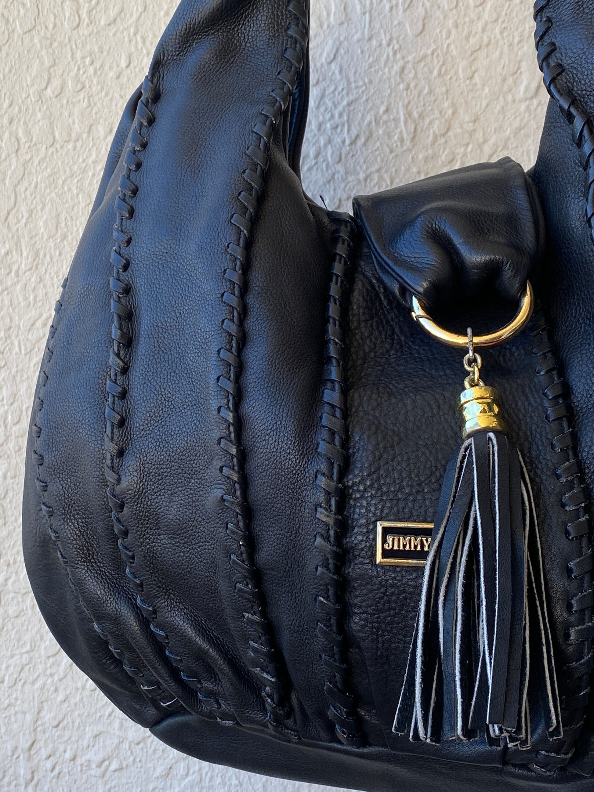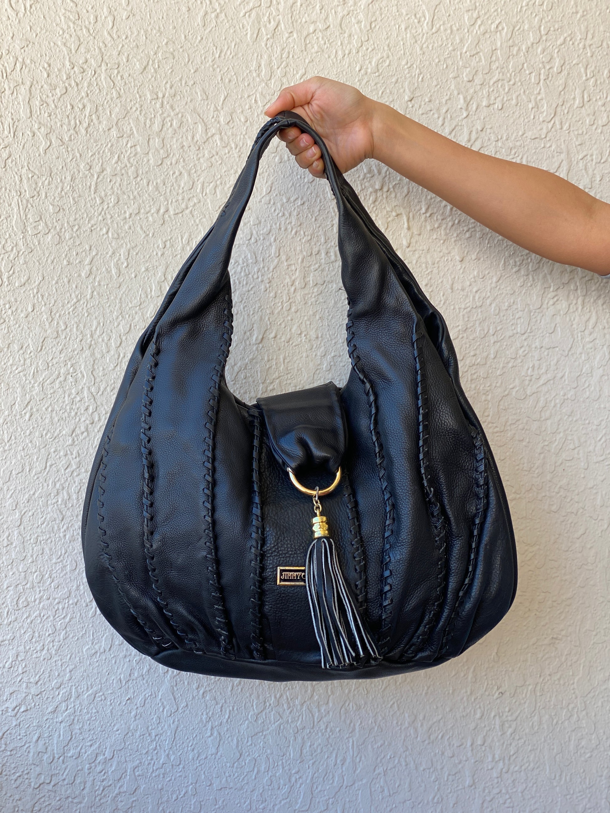 حقيبة كتف جيمي تشو هوبو كبيرة من الجلد المزخرف باللون الأسود