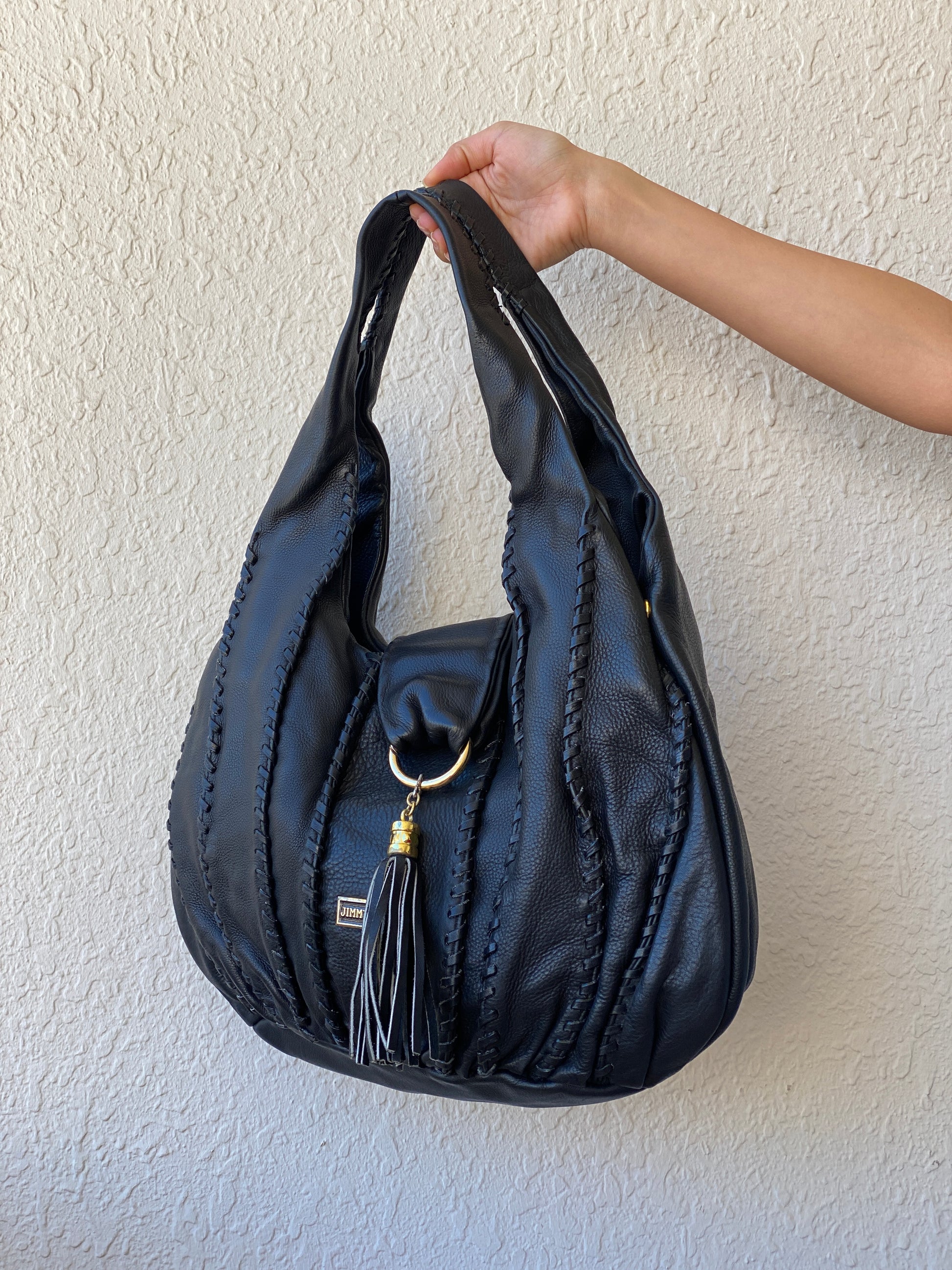 عززي أناقة إطلالتكِ مع حقيبة جيمي تشو هوبو السوداء الكبيرة المصنوعة من الجلد المزخرف. هذه الحقيبة الفسيحة والأنيقة تتسع لجميع أغراضكِ الأساسية، مما يجعلها الإكسسوار المثالي لأي مناسبة. مصنوعة من جلد عالي الجودة، تضفي لمسة من الرقي والفخامة على خزانة ملابسكِ.