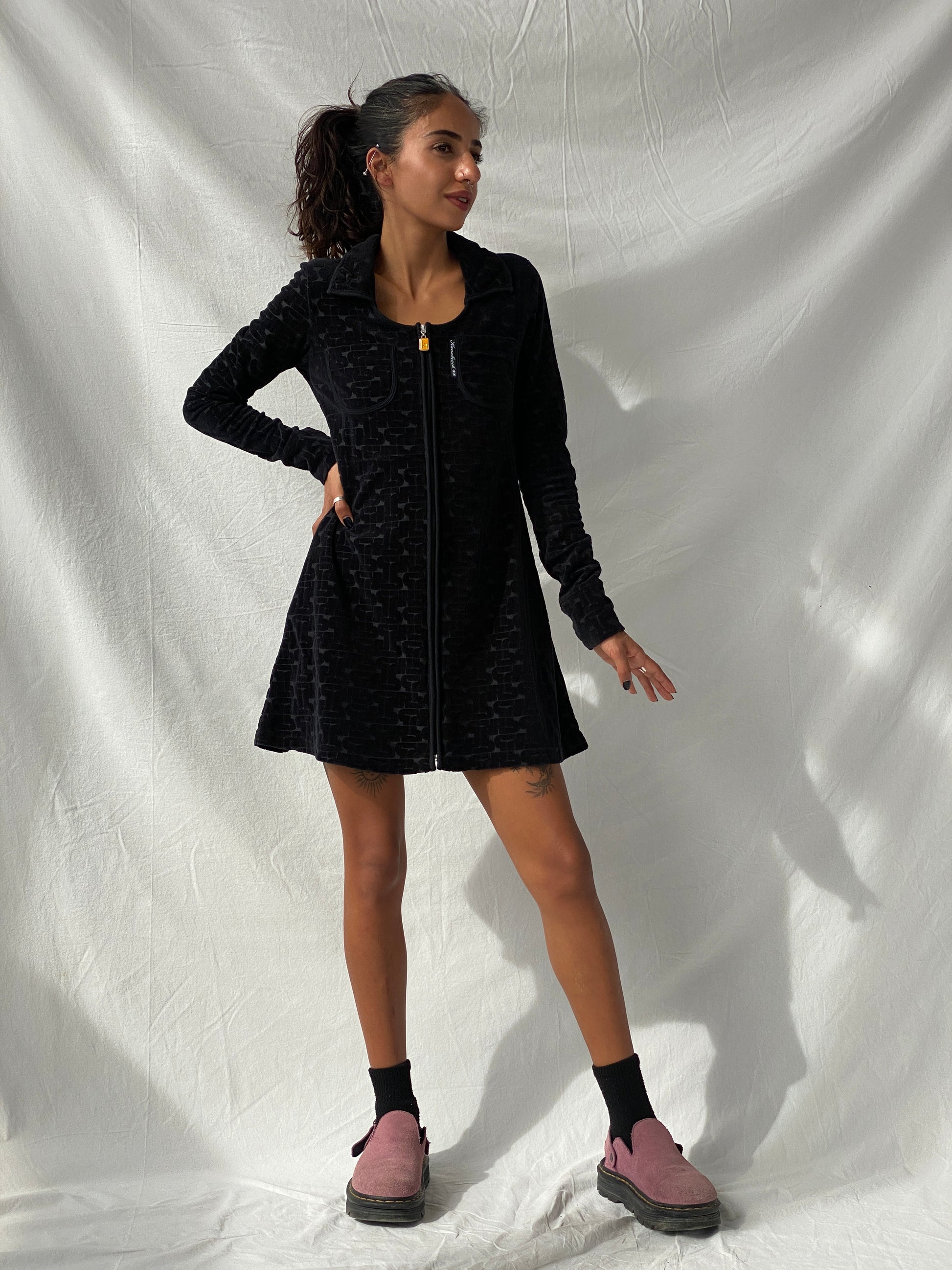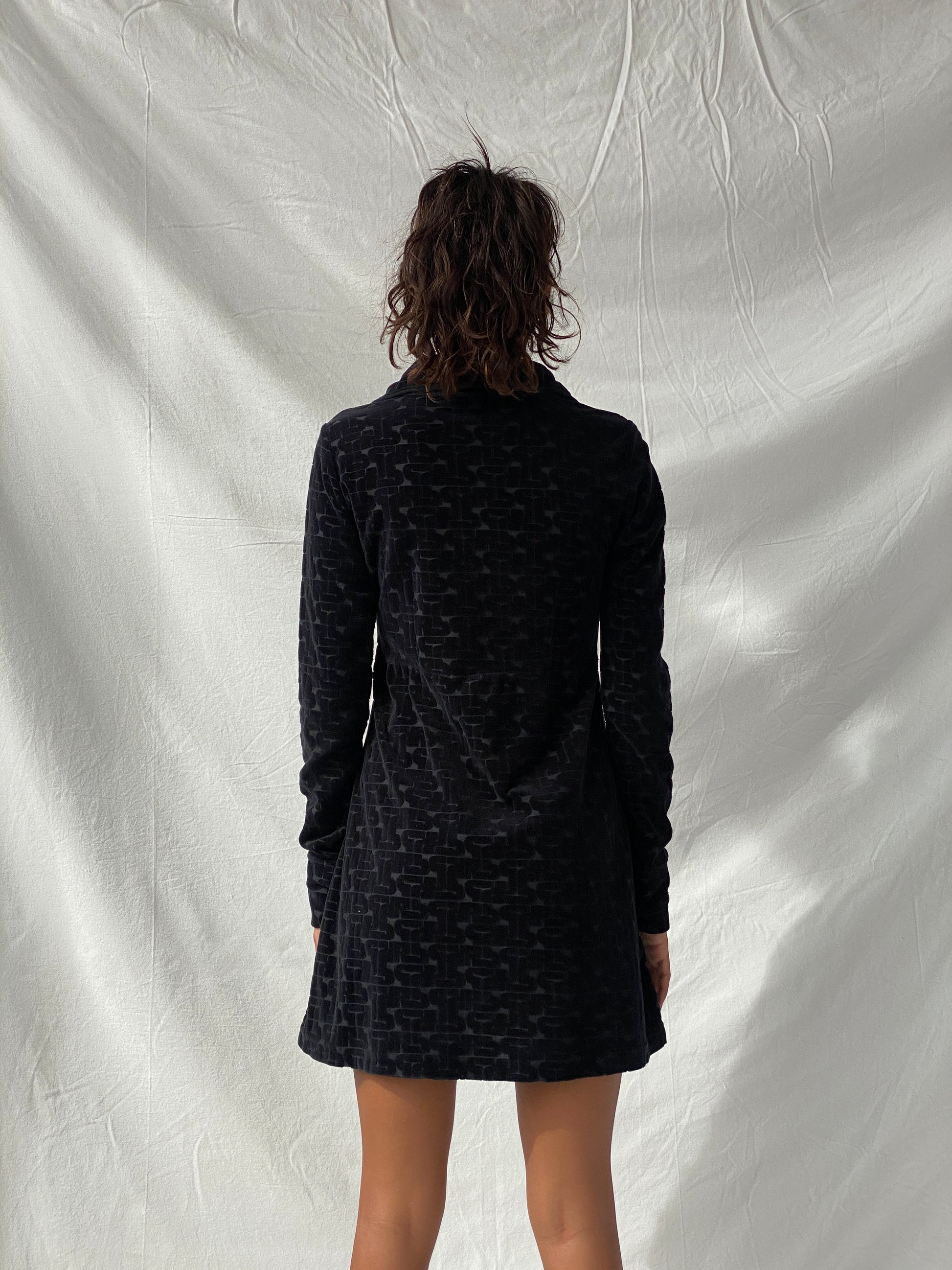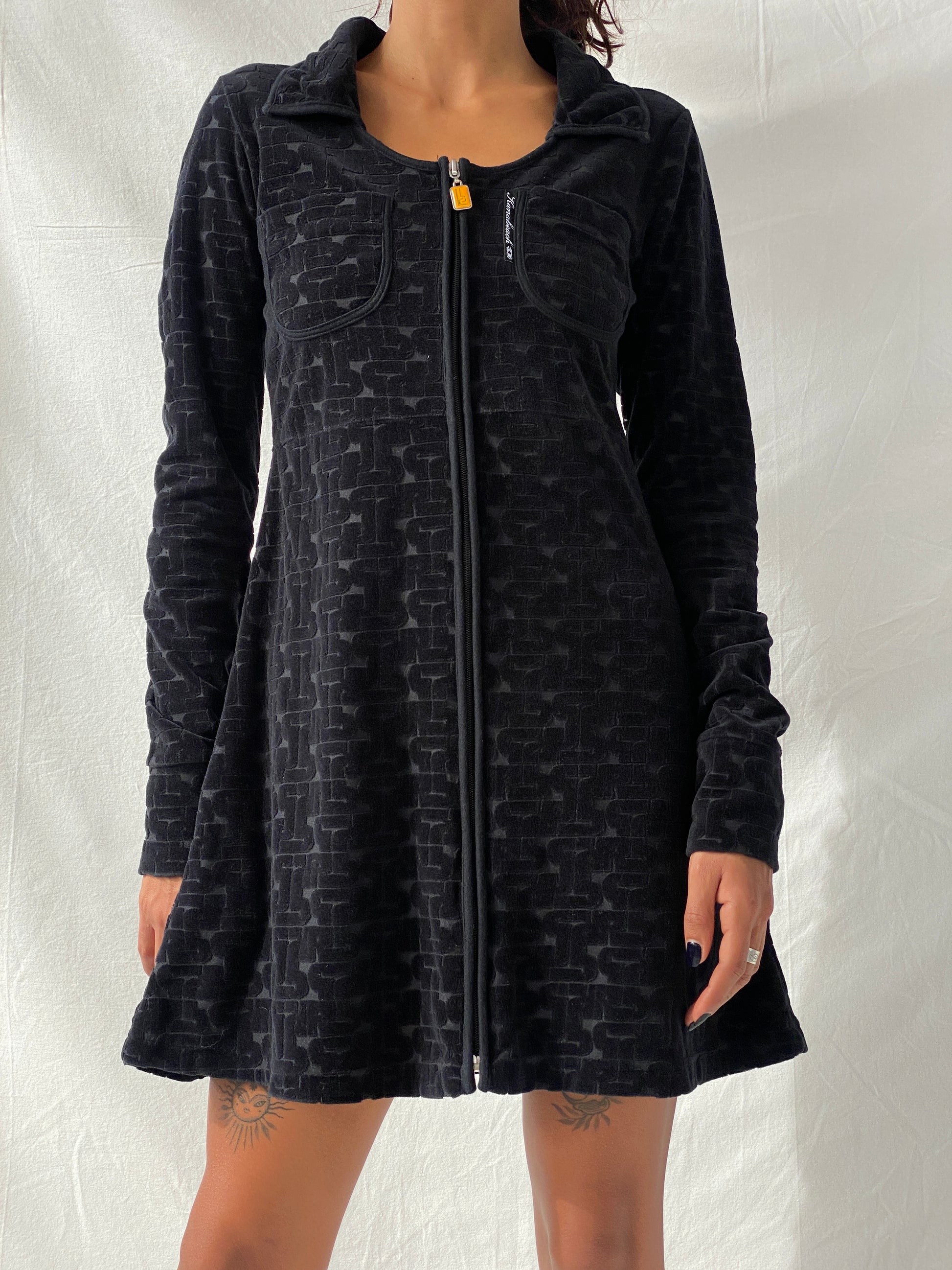 فستان كانا بيتش مونا أسود قصير من القطن بأكمام طويلة وسحاب - مقاس صغير