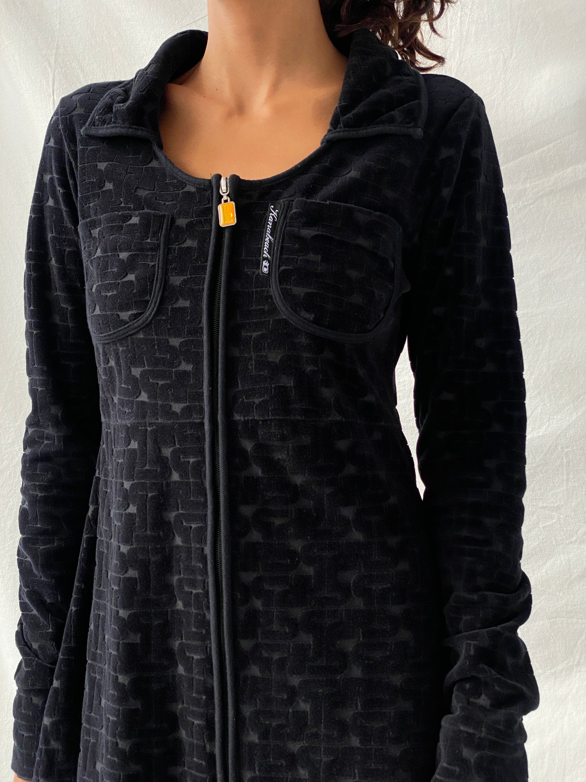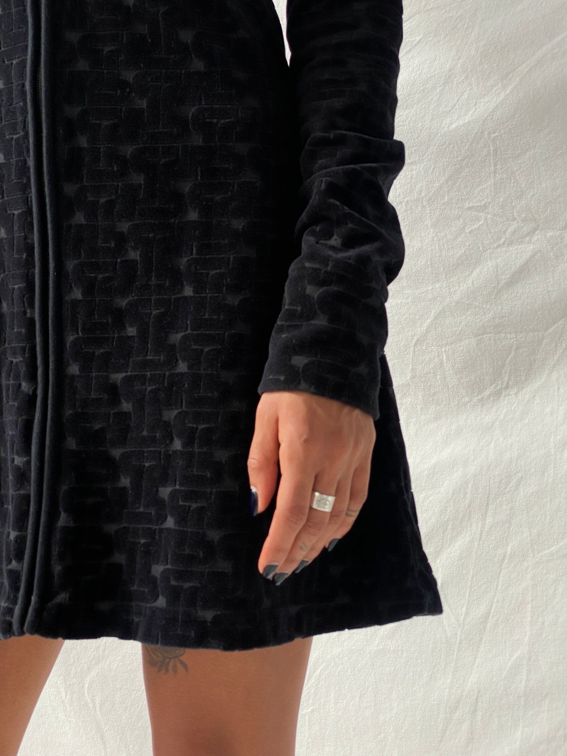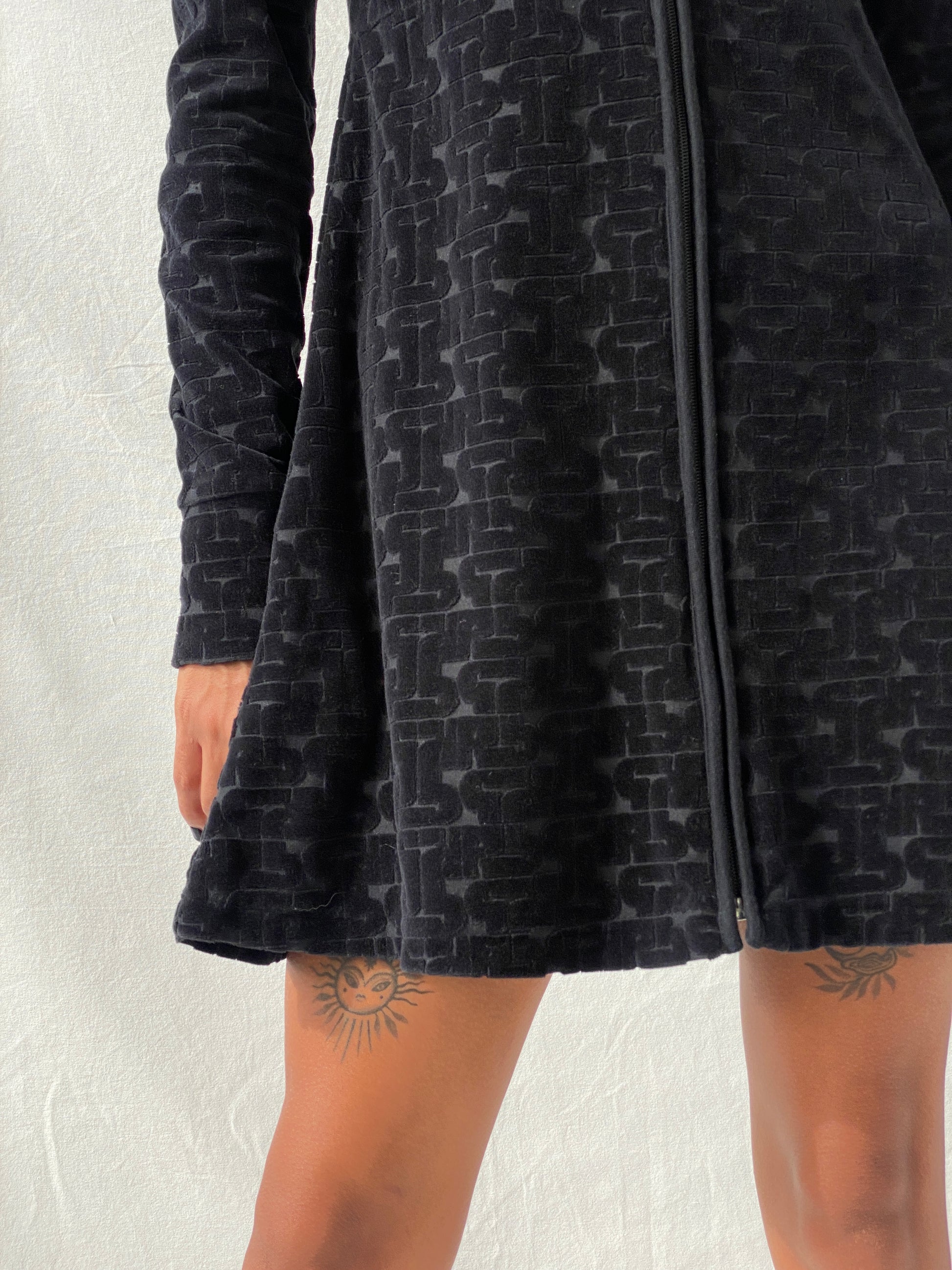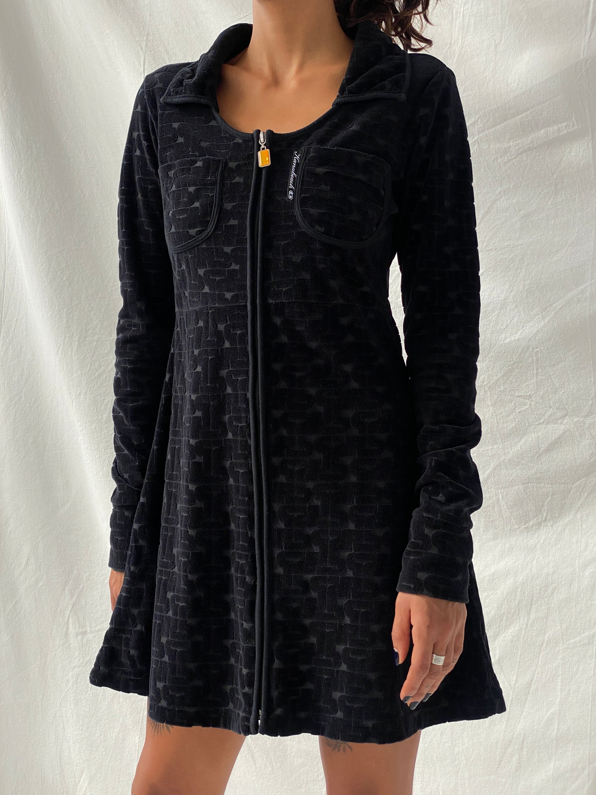 فستان كانا بيتش مونا أسود قصير من القطن بأكمام طويلة وسحاب - مقاس صغير