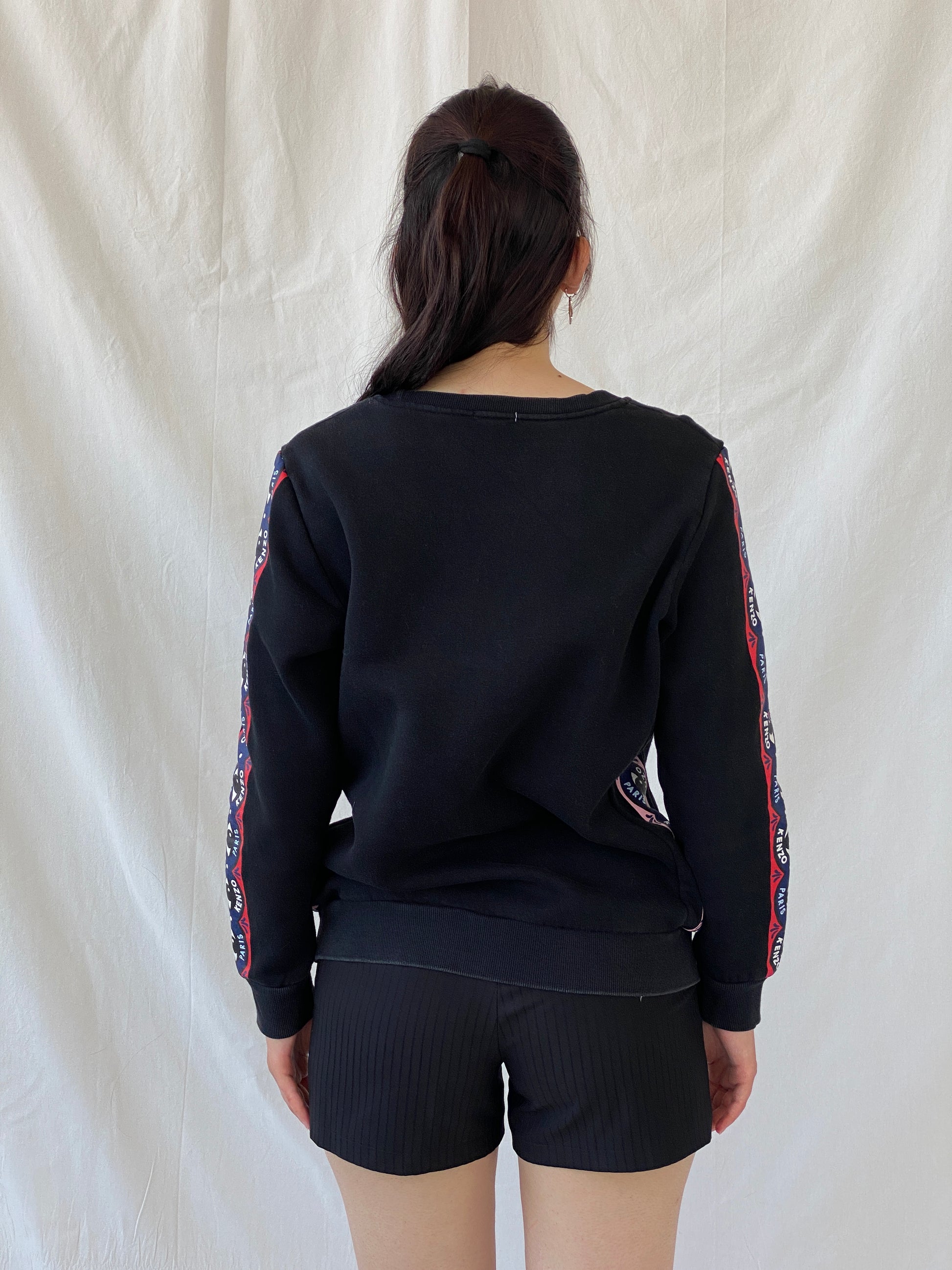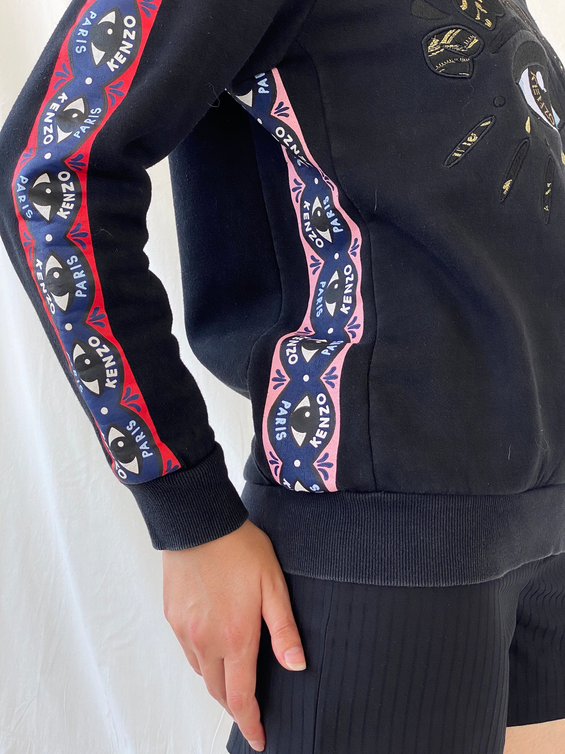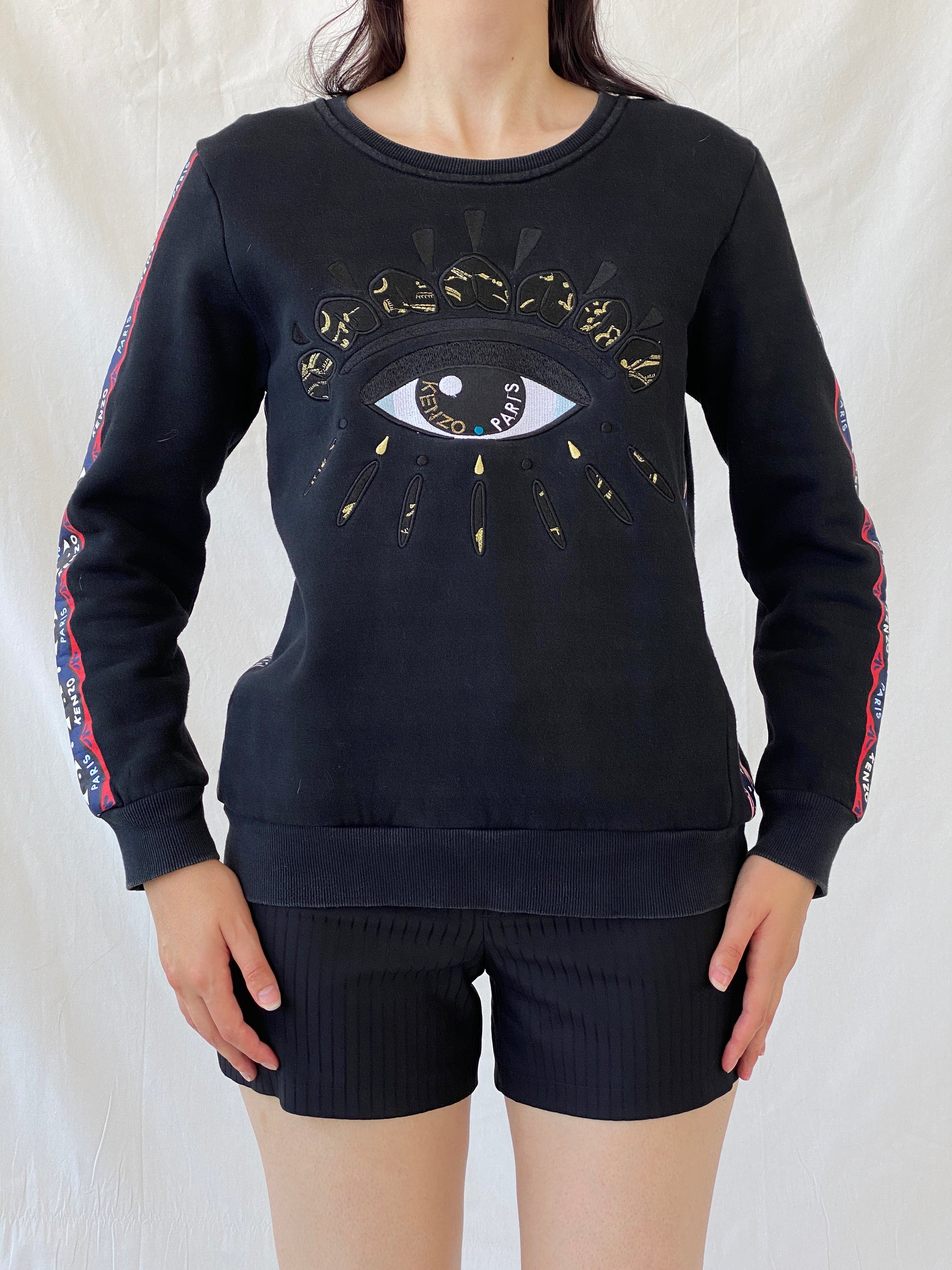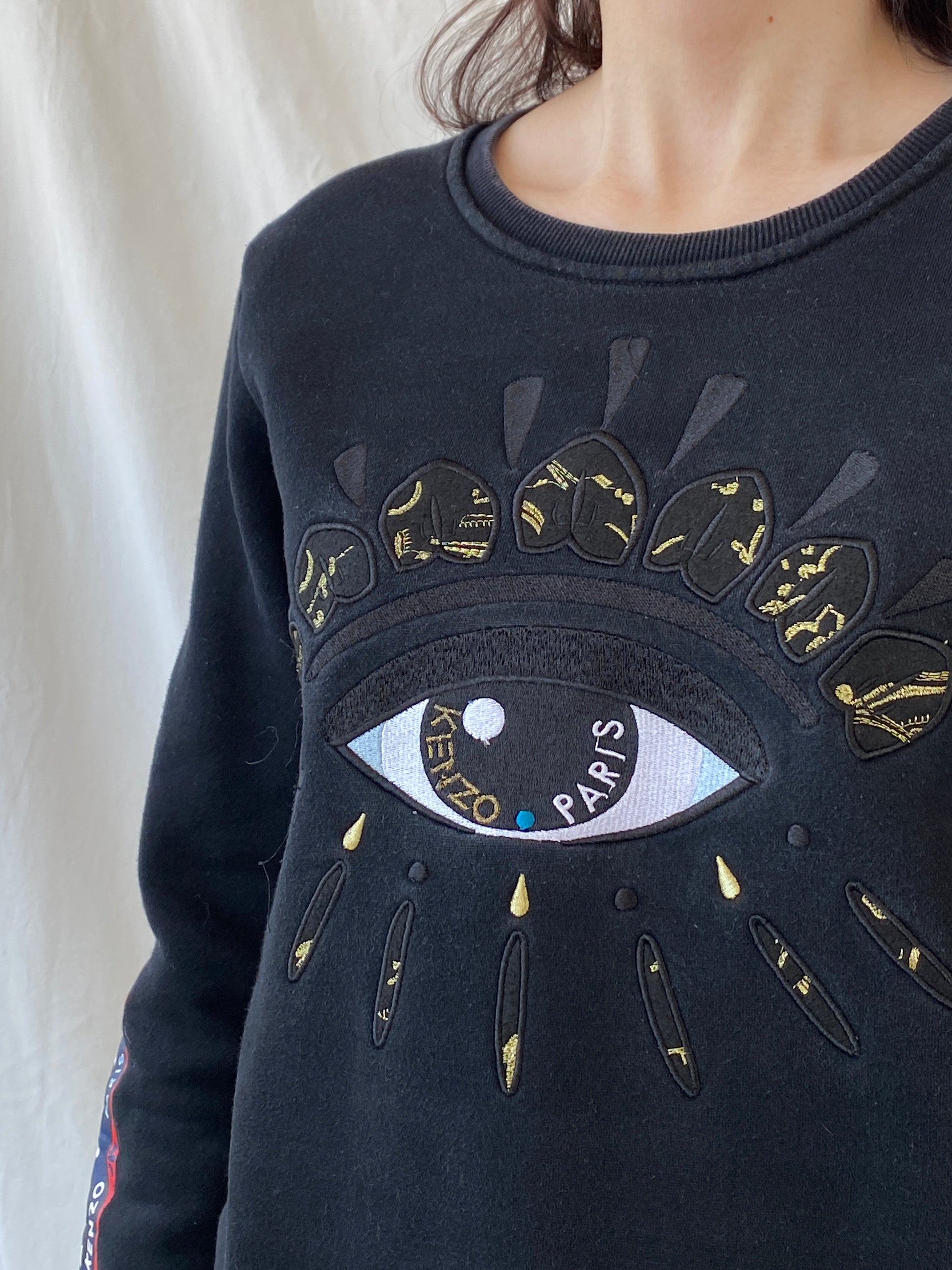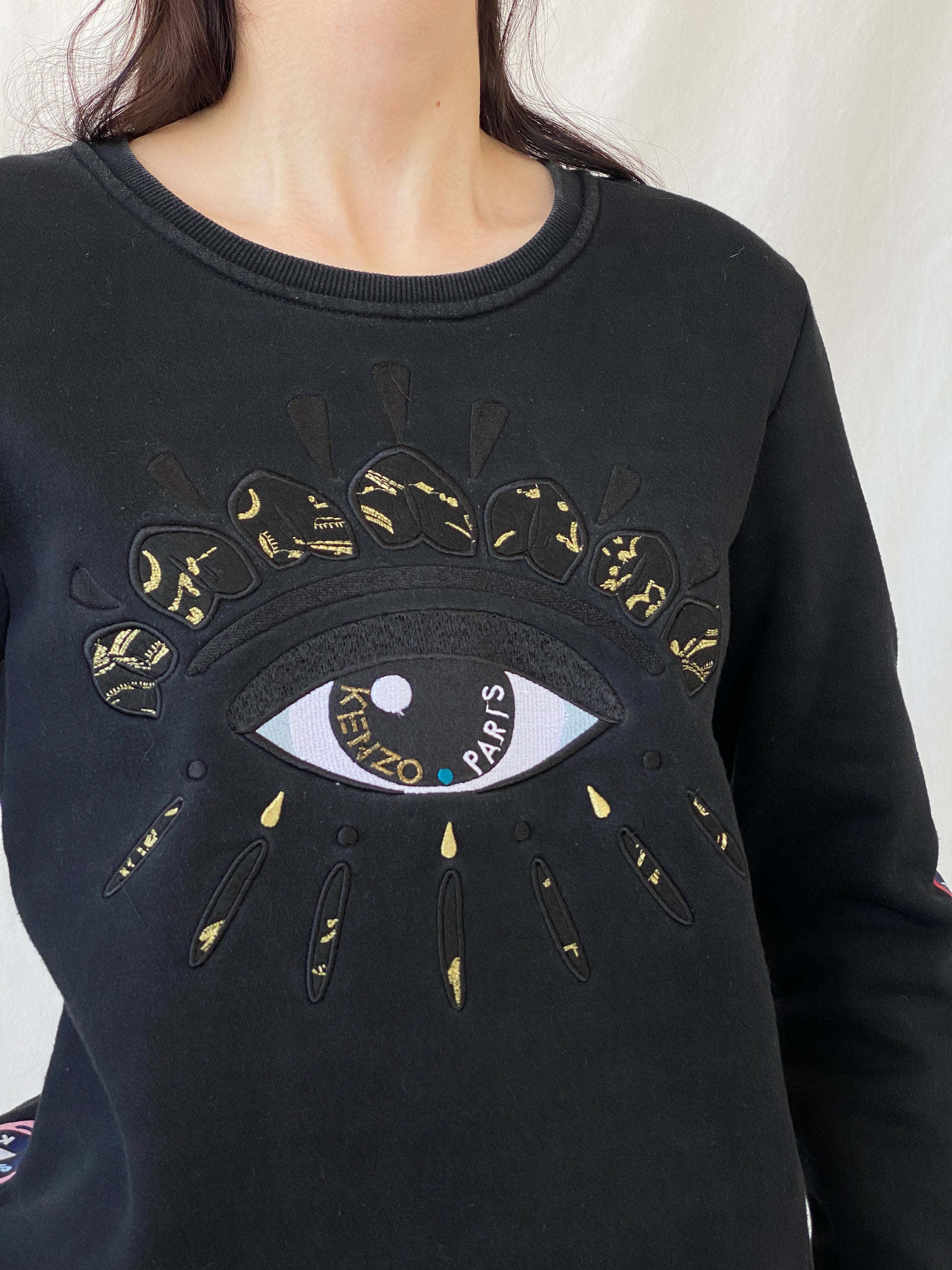 سويت شيرت كينزو أسود من الصوف بطبعة عين ورقبة دائرية من القطن - مقاس كبير