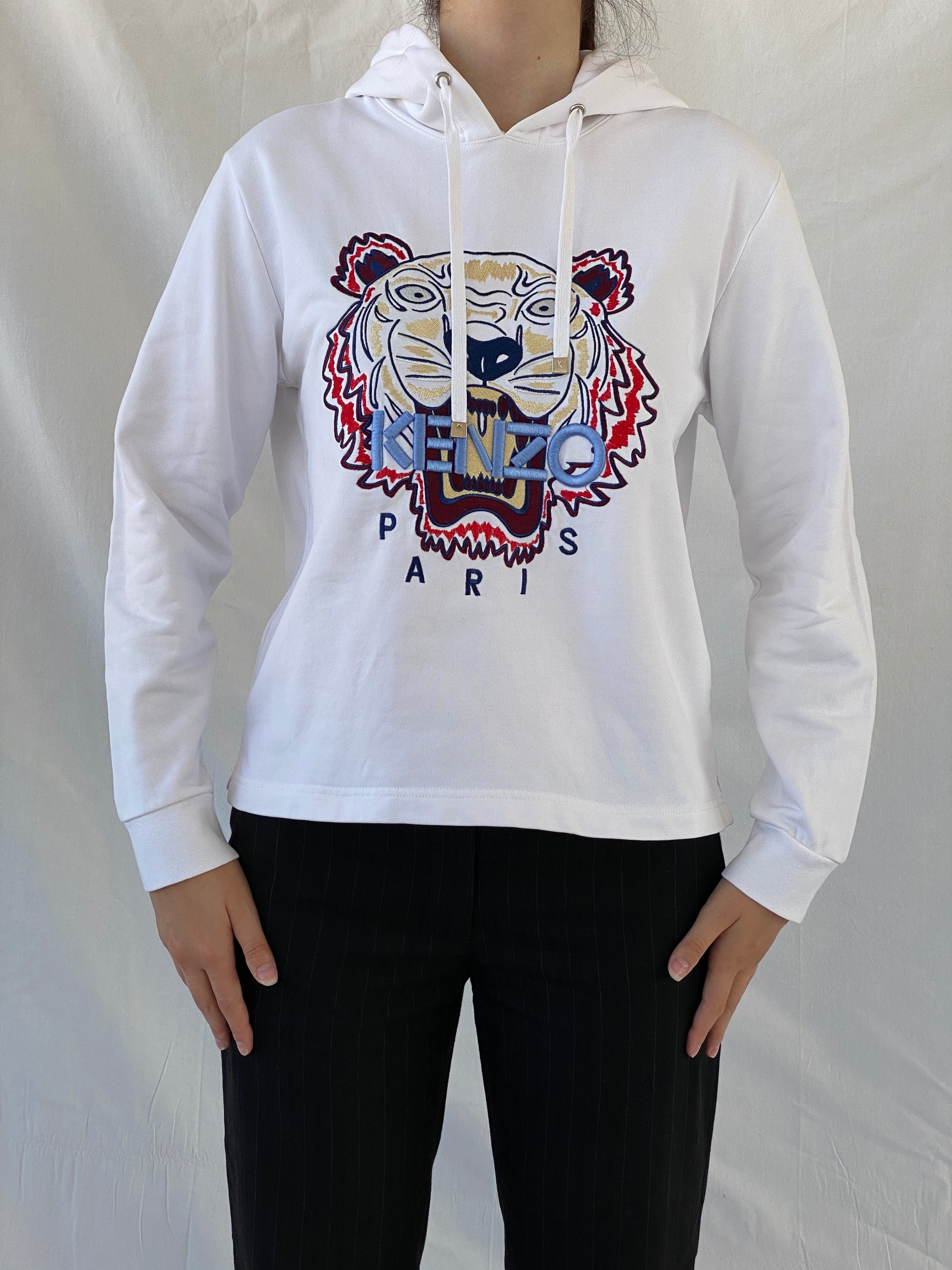 سويت شيرت بغطاء رأس نمر أبيض مطرز من كينزو باريس - مقاس صغير